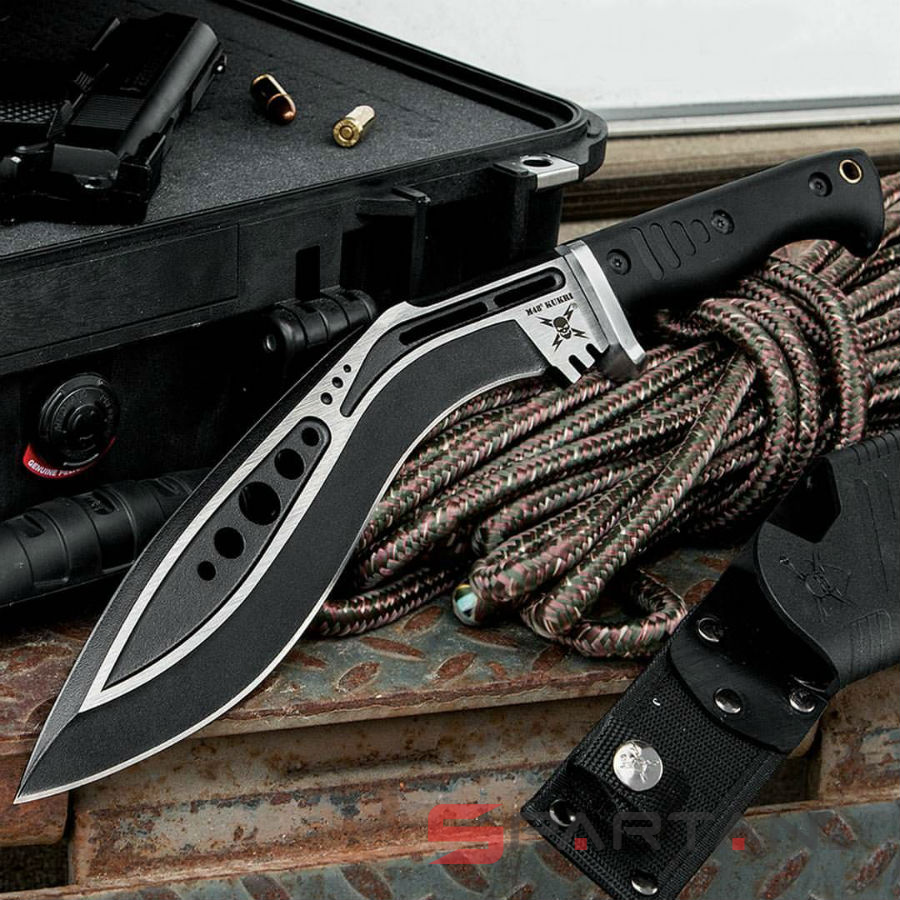 Этот злой тактический кукри, одним своим внешним видом внушает ужас противнику. Благодаря относительно невысокой стоимости, United Cutlery M48 Tactical KUKRI смело можно рекомендовать как походный заменитель тесака и топора. Им запросто можно нарубить веток для костра, прорубиться сквозь заросли, заострить колышки для навеса/палатки, ну и разумеется отбиться от врагов ;). Собственно именно так производитель его и позиционирует: Perfect in Combat or Camping. На рукоятке имеется ярковыраженная гарда, так что во время разящих ударов, можно быть спокойным за собственные пальцы.