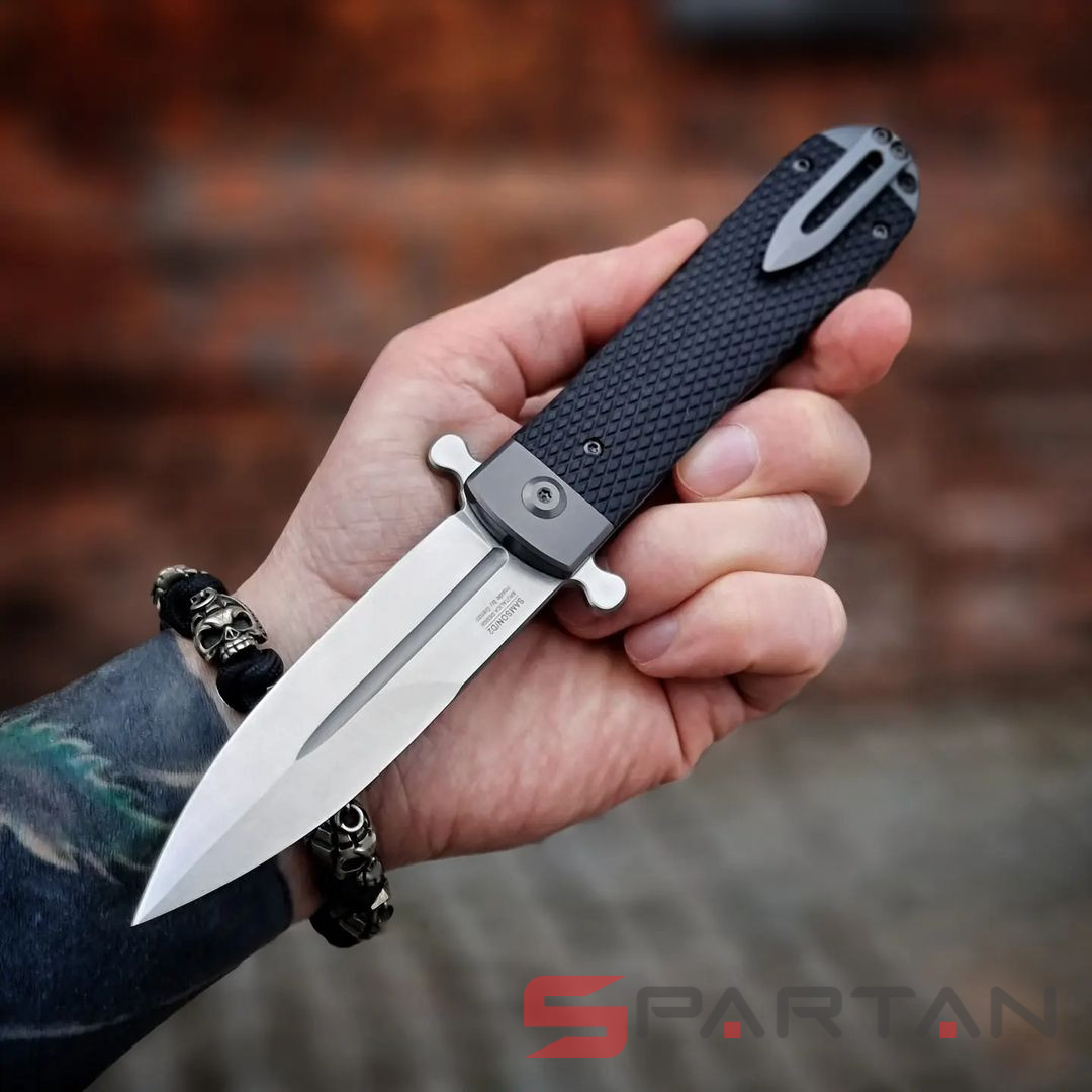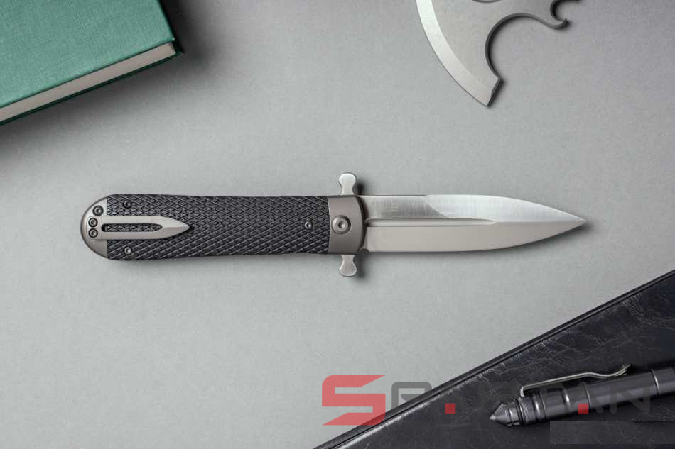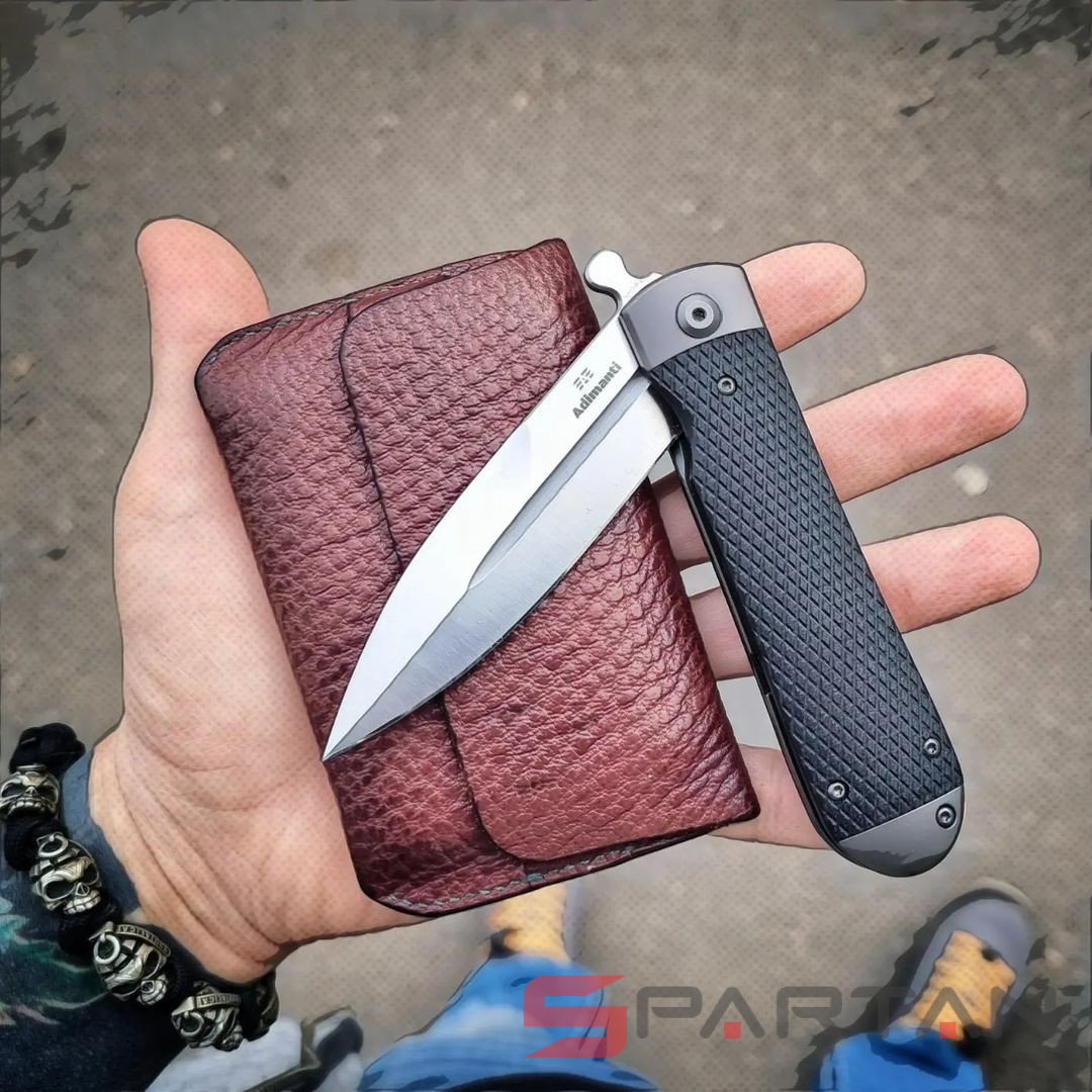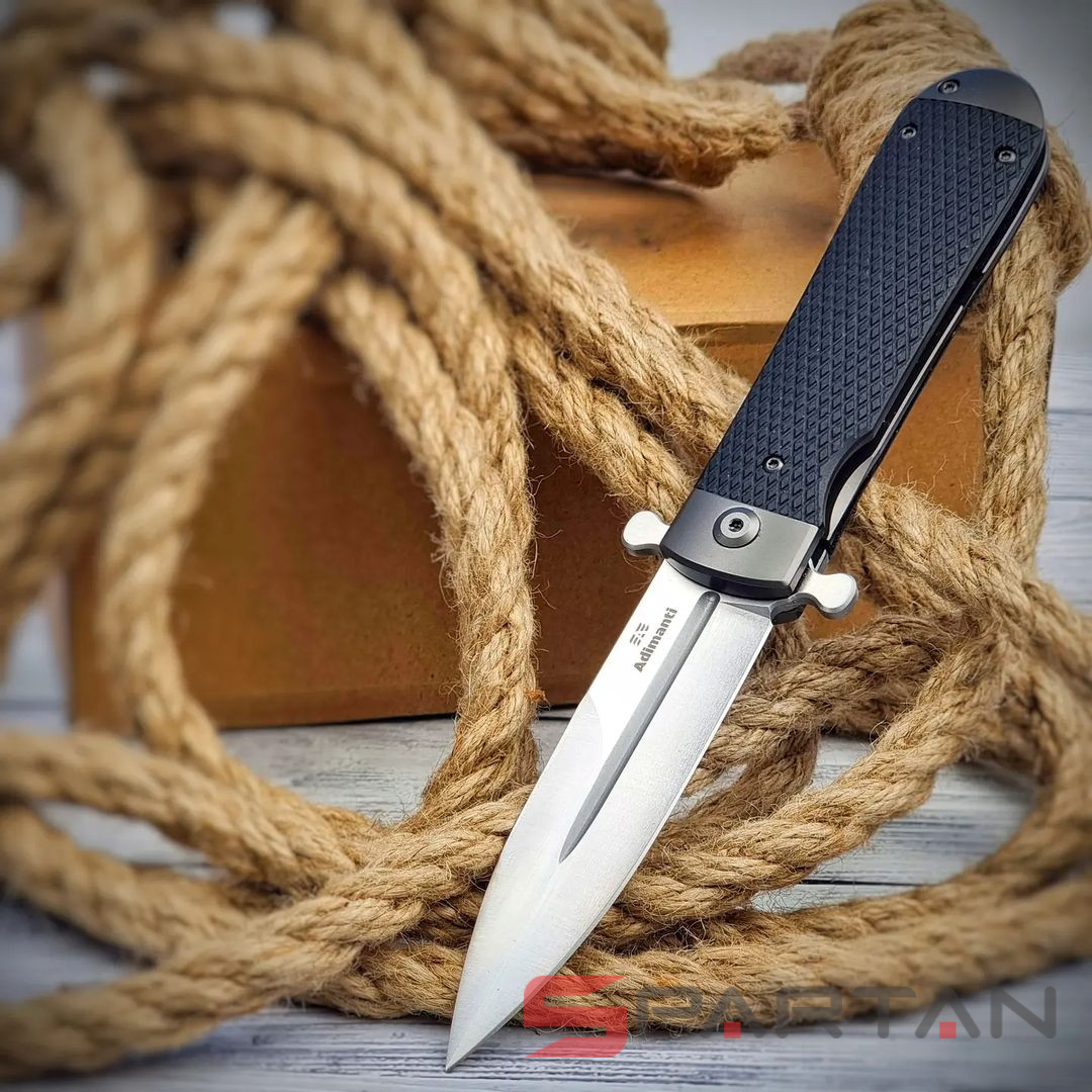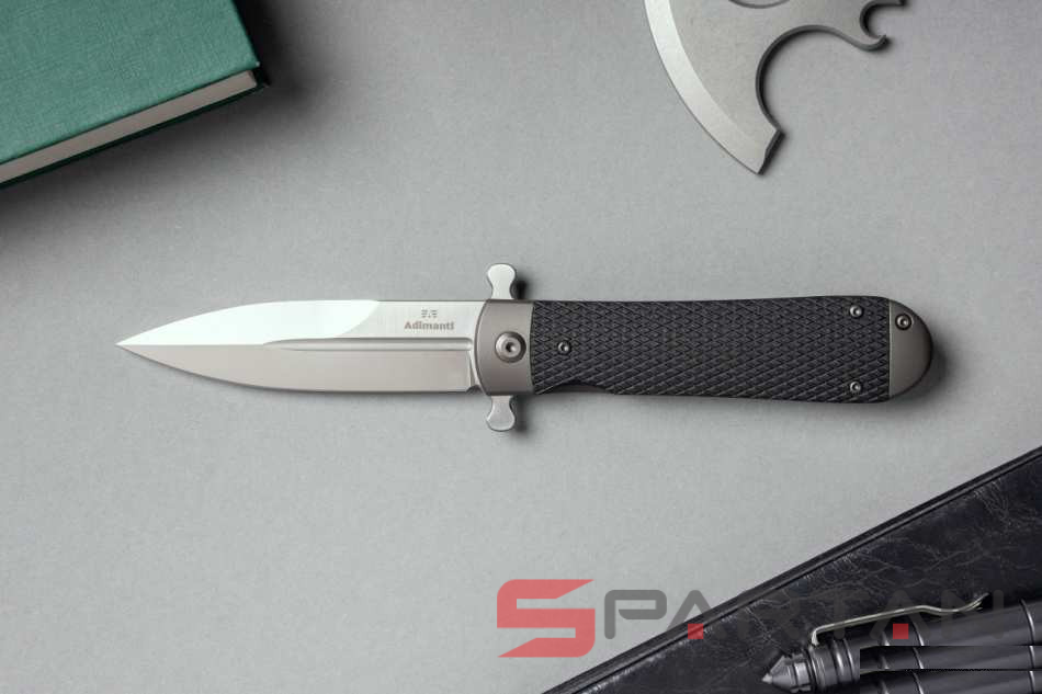 Стильный, брутальный и очень харизматичный складной нож с клинком выполненным в форме кинжала. Пара "плавников" не только выполняет роль надёжной гарды для безопасности ваших пальцев при силовом резе, но и также является одновременно флиппером и вейвером. То есть нож можно мгновенно открыть буквально одним нажатием указательного пальца на один плавник. Либо доставая из кармана также мгновенно и резко открыть клинок зацепом второго плавника за карман штанов. Благодаря наличию подшипников Adimanti Samson открывается очень быстро, с сочным щелчком. Массивная рукоять из стальной рамы прикрыта плашками из G10 с имитацией классической оружейной насечки. В навершии рукояти спрятан потайной штифт для темляка. Нож выполнен как посвящение легендарным охотничьим ножам Егора Самсонова (тульский мастер в 70-х годах XIX века, поставщик ножей Императорского общества охоты).