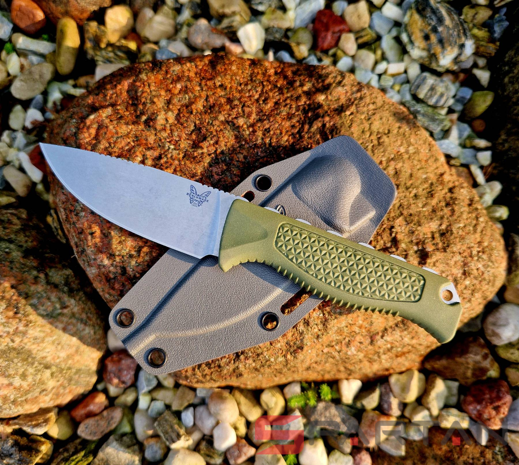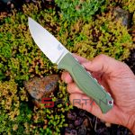 Компактный и безумно лёгкий охотничий нож "с прицелом" на разделку дичи и сьём шкуры. С ним вы получаете надежный контроль аккуратности реза и отличный результат. Впрочем как походный универсал для точного реза, в том числе по продуктам он также отлично подойдёт. Нож имеет цельнометаллическую конструкцию full tang, клинок выполнен из серьёзной порошковой стали S30V, рукоять из полимерного материала Santoprene с цепкой "насечкой". На обухе клинка имеются рифленные площадки для упора пальцами во время разделочных работ. Нож отлично удерживается даже во влажной руке, эргономика просто выше всяких похвал - ножом сразу хочется работать. В комплект входят ножы из Boltaron (аналог кайдекса) серо-оранжевого цвета, так что если вдруг выроните в лесу, найти будет значительно проще. Отличный вариант для походов, рыбалки, охоты и просто вылазок на природу.