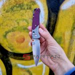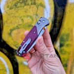 Дополнительные стильные штрихи: шпенёк для открытия анодирован в оранжевый цвет и такой же оранжевый цвет у бэкспейсера (проставка между плашками со стороны спинки рукояти). В результате получилось очень стильное и породистое сочетание серого, темно-красного и оранжевого.