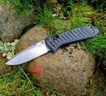 Извлекается клинок при помощи двусторонних шпеньков, практически, не "съедающих" появившиеся дополнительные миллиметры длины, а шикарный ход клинка, демонстрирующий возможность инерционного выброса и складывания, обеспечивают крупные шайбы из фосфористой бронзы на осевом узле. Клинок имеет характерный для моделей этого года финиш - тонкий сатин на плоскостных участках и крупный сатин, "припорошенный" стоунвошем - на спусках и фальшлезвии.