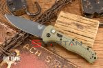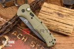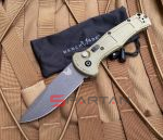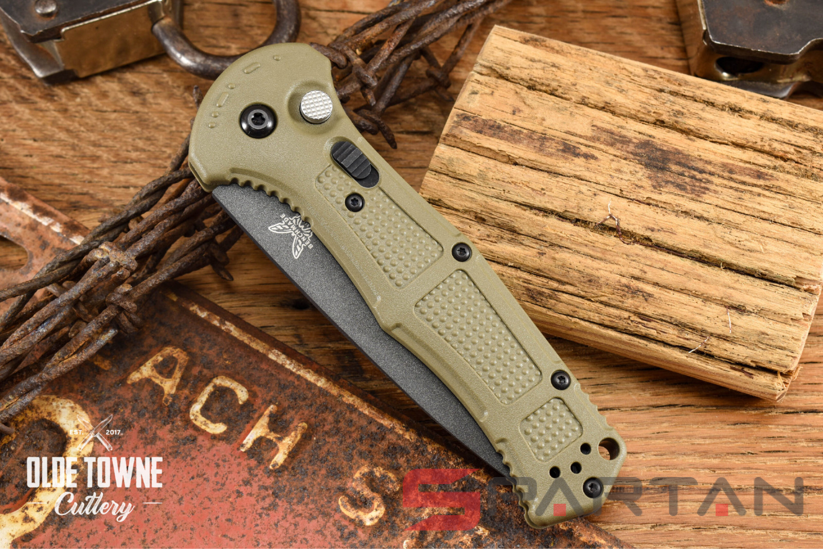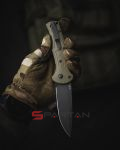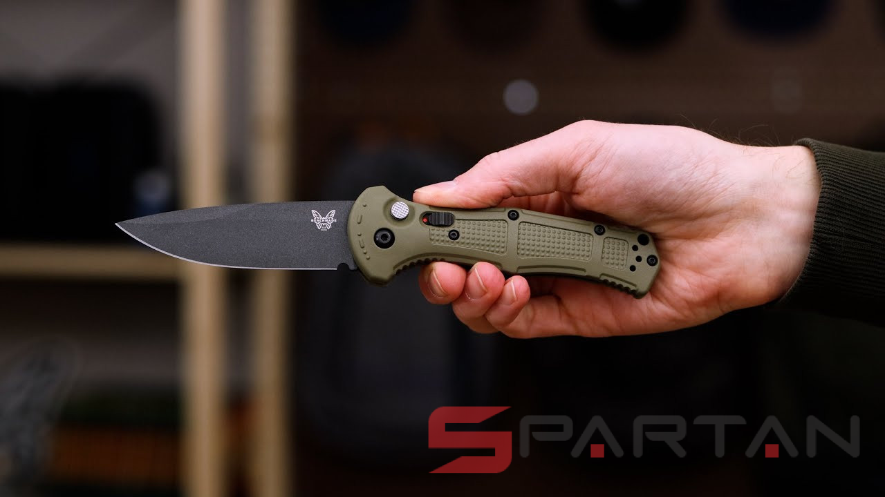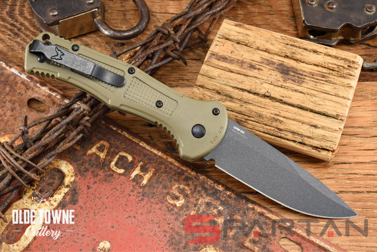 Могучий тактический "автомат" из чёрной серии Benchmade. Нож посвящён американской противопехотной мине направленного действия - Claymore. Это отражёно не только в названии, но и расцветке корпуса и внешнем оформлении. Так на рукояти со стороны клинка нанесена в виде "морзянки" типичная для мин аббревиатура F.T.E. (Front Toward Enemy) - "Лицом к противнику". Изначально Benchmade Claymore задумывался в качестве предмета экипировки военнослужащих армейских подразделений и флота, а также агентов спецслужб, но в результате был "отпущен" в гражданскую продажу. Ухватистая рукоять из пластика Grivory, переставляемая клипса глубокой посадки, рифленый предохранитель, здоровенный клинок из стали CPM-D2 с защитным серым покрытием Cobalt Black Cerakote и конечно просто взрывная "механика" автомата.