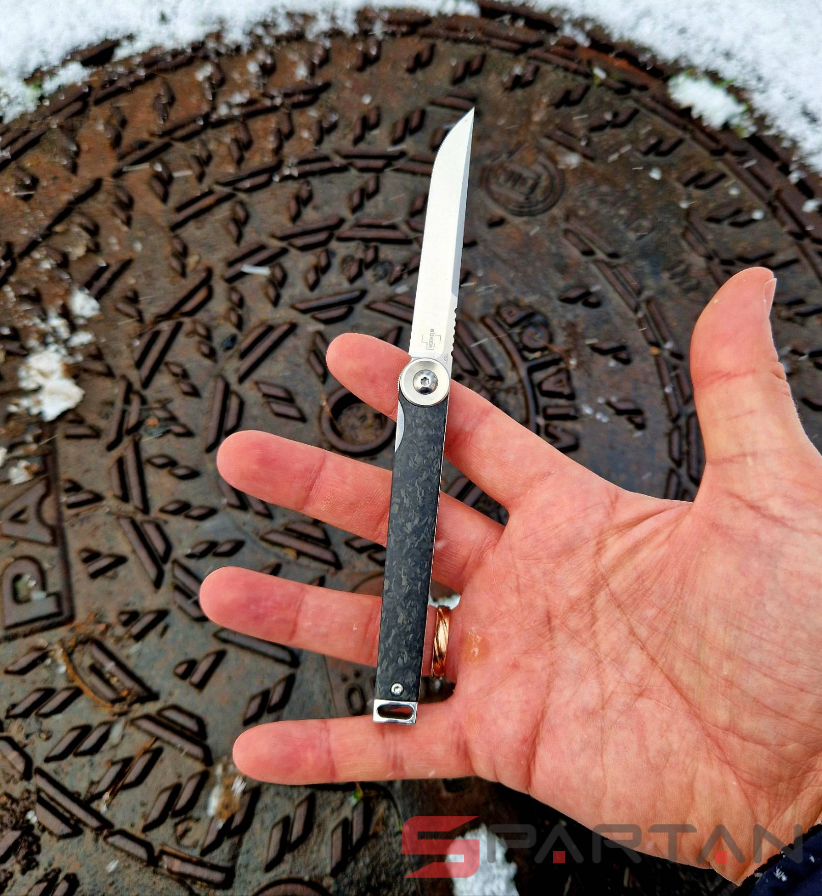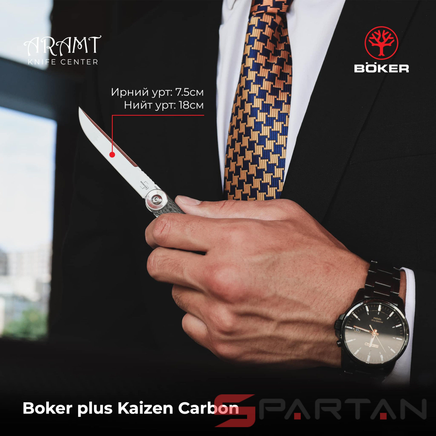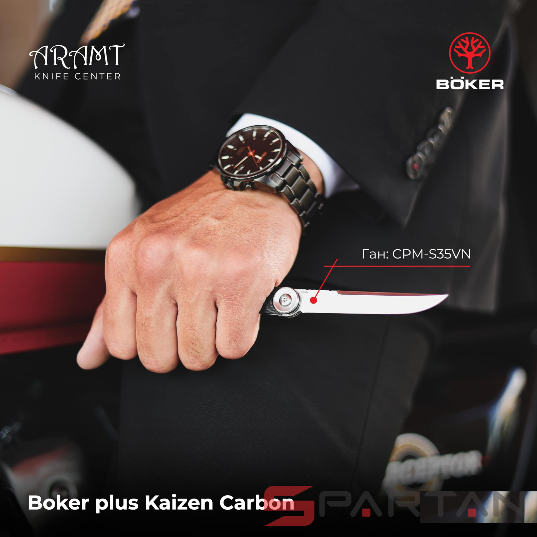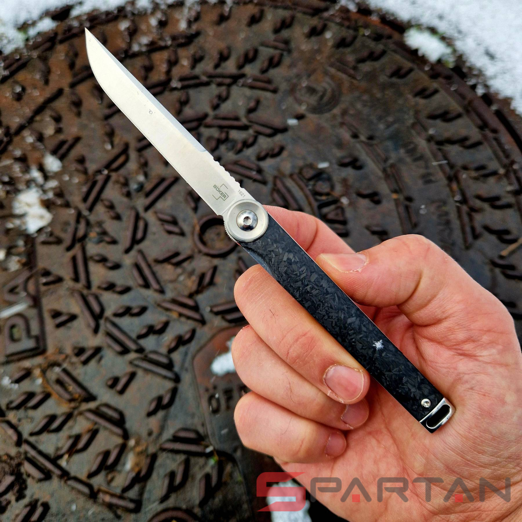 Ищите недорогой харизматичный джентльменский нож который выглядит максимально неагрессивно? Определённо Boker Kaizen очень достойный вариант. Лёгкий (45 грамм), тонкий (сравним с шариковой ручкой), изящный складной ножичек с клинком из отличной американской стали S35VN, рукояткой из мраморного карбона, аккуратным еле заметным плавником флиппера и крутецкой механикой (в основе подшипники). Несмотря на свои игрушечные габариты Boker Kaizen очень неплохо сидит в мужской руке. Длинный узкий клинок с высоченными спусками радует "вкусным" резом. Клипса однопозиционная непереставляемая, зато глубокой посадки. На рукояти предусмотрено широкое отверстие для темляка или кожаного ремешка. В переводе с японского "Kaizen" означает "улучшение" или "изменение к лучшему".