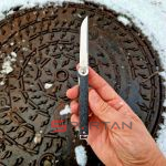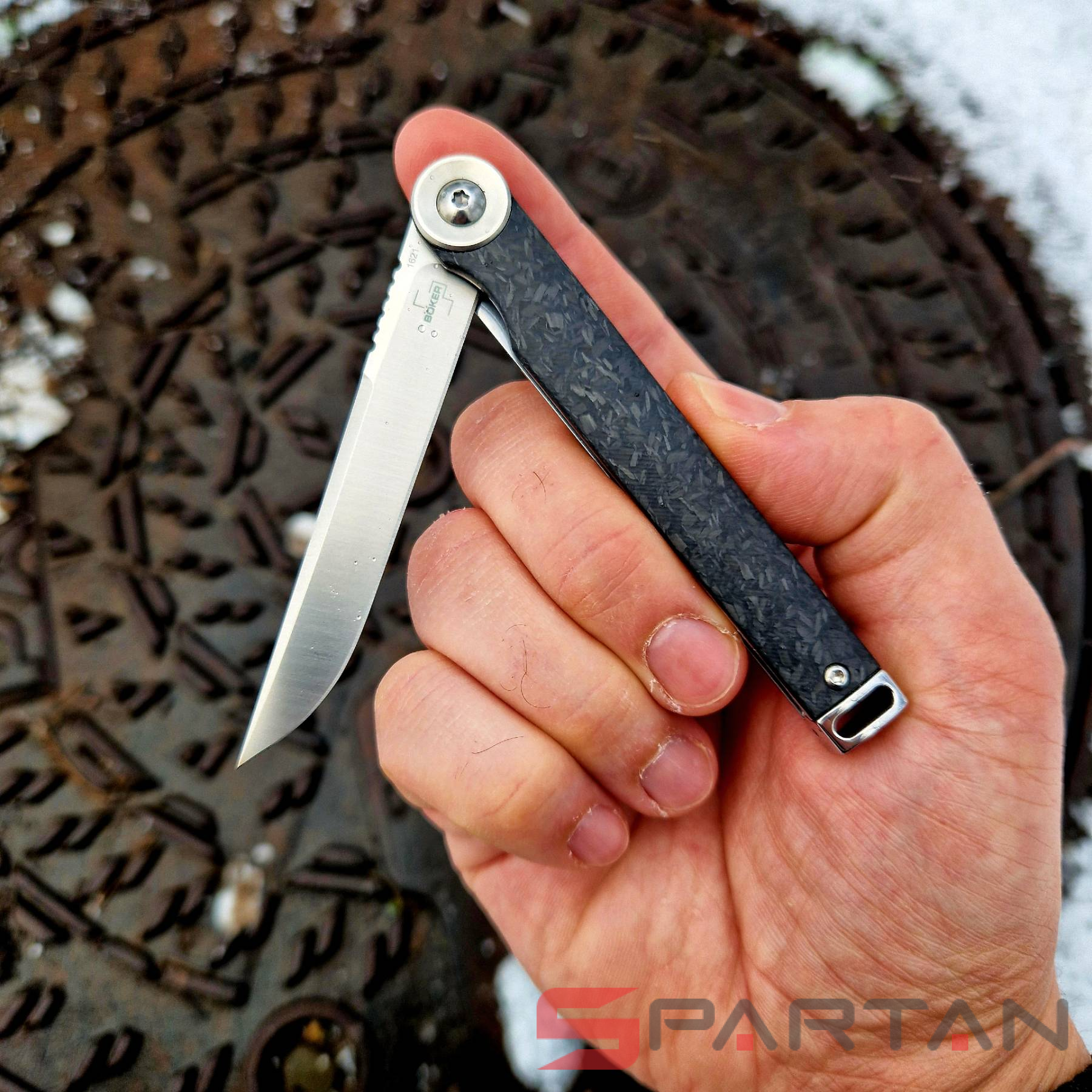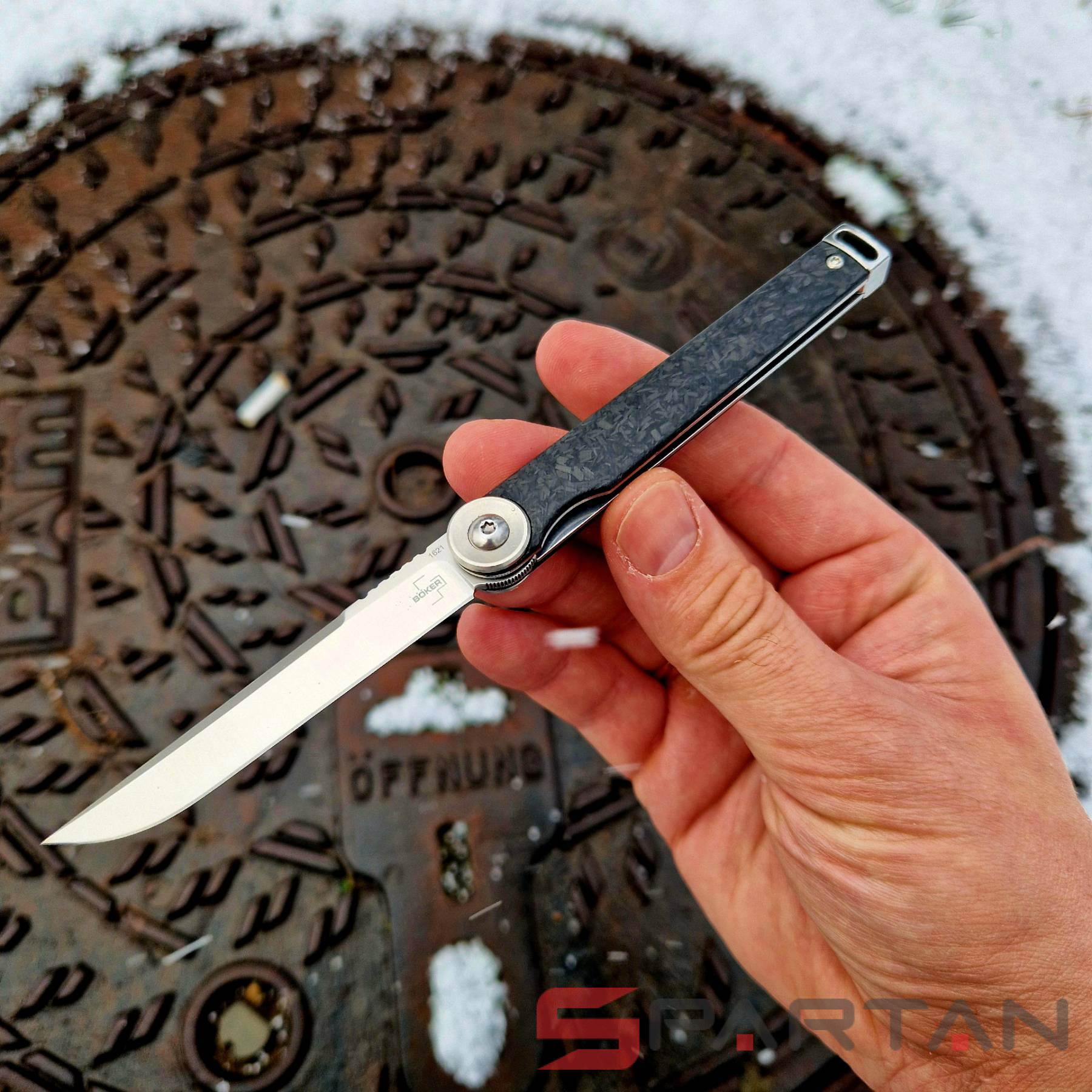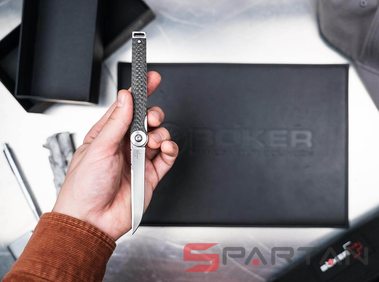Ищите недорогой харизматичный джентльменский нож который выглядит максимально неагрессивно? Определённо Boker Kaizen очень достойный вариант. Лёгкий (45 грамм), тонкий (сравним с шариковой ручкой), изящный складной ножичек с клинком из отличной американской стали S35VN, рукояткой из мраморного карбона, аккуратным еле заметным плавником флиппера и крутецкой механикой (в основе подшипники). Несмотря на свои игрушечные габариты Boker Kaizen очень неплохо сидит в мужской руке. Длинный узкий клинок с высоченными спусками радует "вкусным" резом. Клипса однопозиционная непереставляемая, зато глубокой посадки. На рукояти предусмотрено широкое отверстие для темляка или кожаного ремешка. В переводе с японского "Kaizen" означает "улучшение" или "изменение к лучшему".