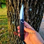 Автоматическая версия популярной модели Boker Kwaiken, которую ножеманы давно окрестили "японской легендой". Дело в том что Kwaiken в древней Японии - это самурайский кинжал, предназначенный для самообороны в небольших помещениях, где с катаной или вакидзаси просто не развернуться. Данный "автомат" Boker разрабатывала с таким американским грандом как Pro-Tech, за дизайн отвечал Lucas Burnley. Клинок в японском стиле выполнен из стали D2, рукоять целиком алюминиевая, клипса однопозиционная имеет глубокую посадку на карман. Предохранитель отсутствует, для безопасности кнопка "автомата" утоплена в корпусе и для срабатывания её нужно акцентированно и сильно нажать. В целом нож хоть и недорогой, но выглядит и ощущается стильно и интересно: настоящий хищник, красивый, стремительный и верный только своему хозяину.