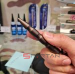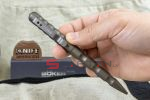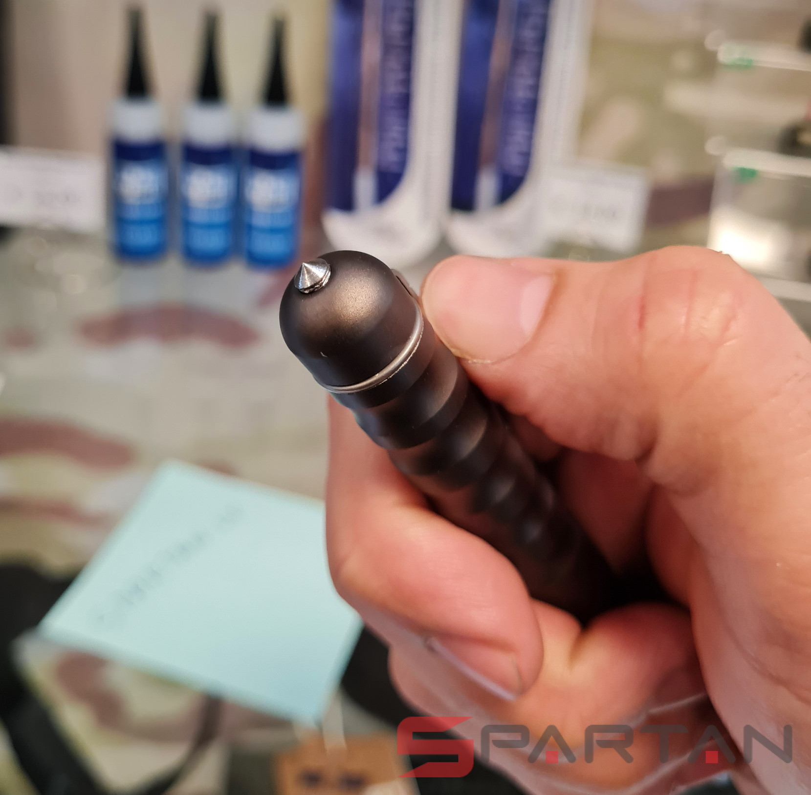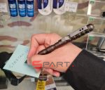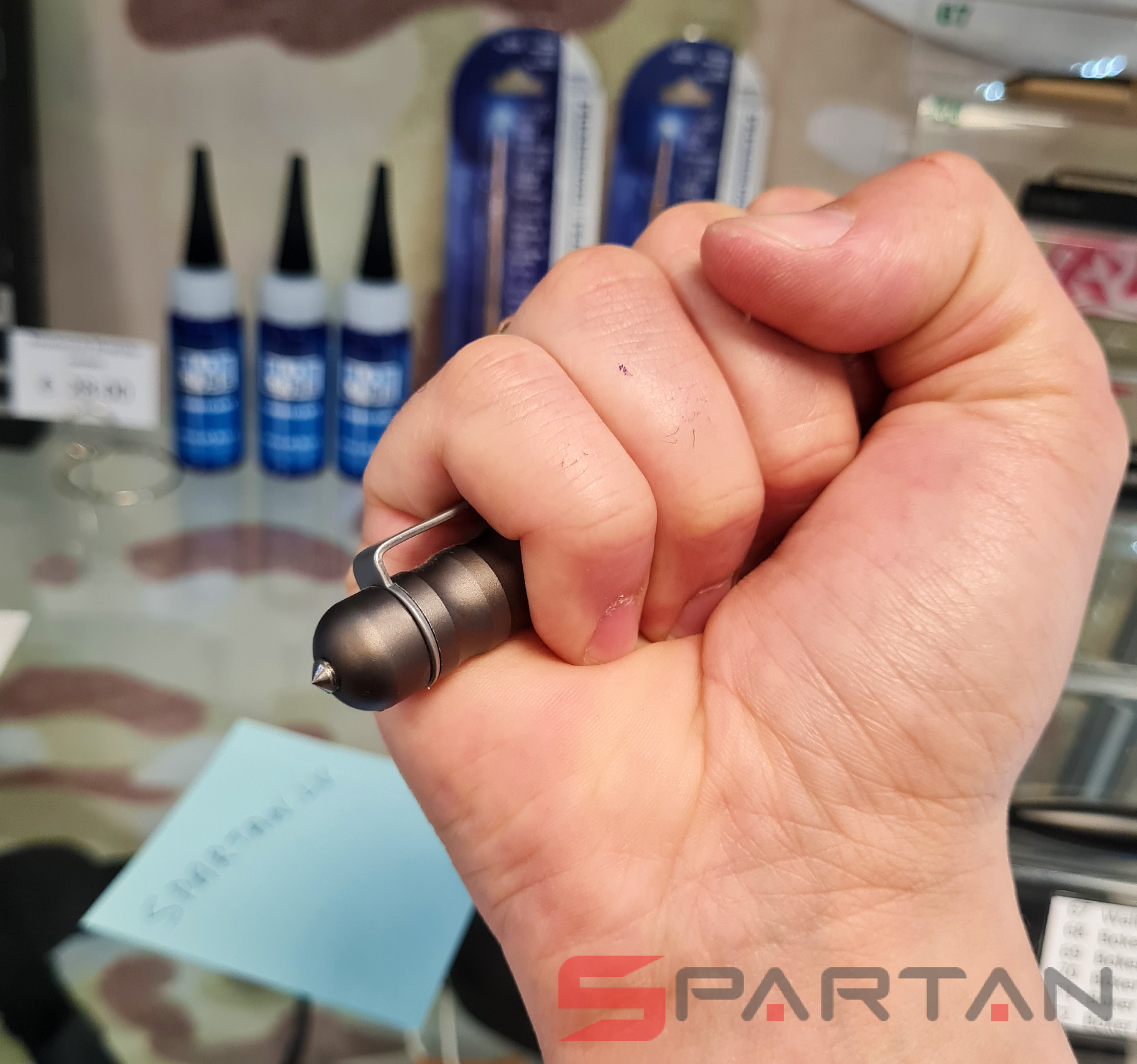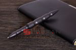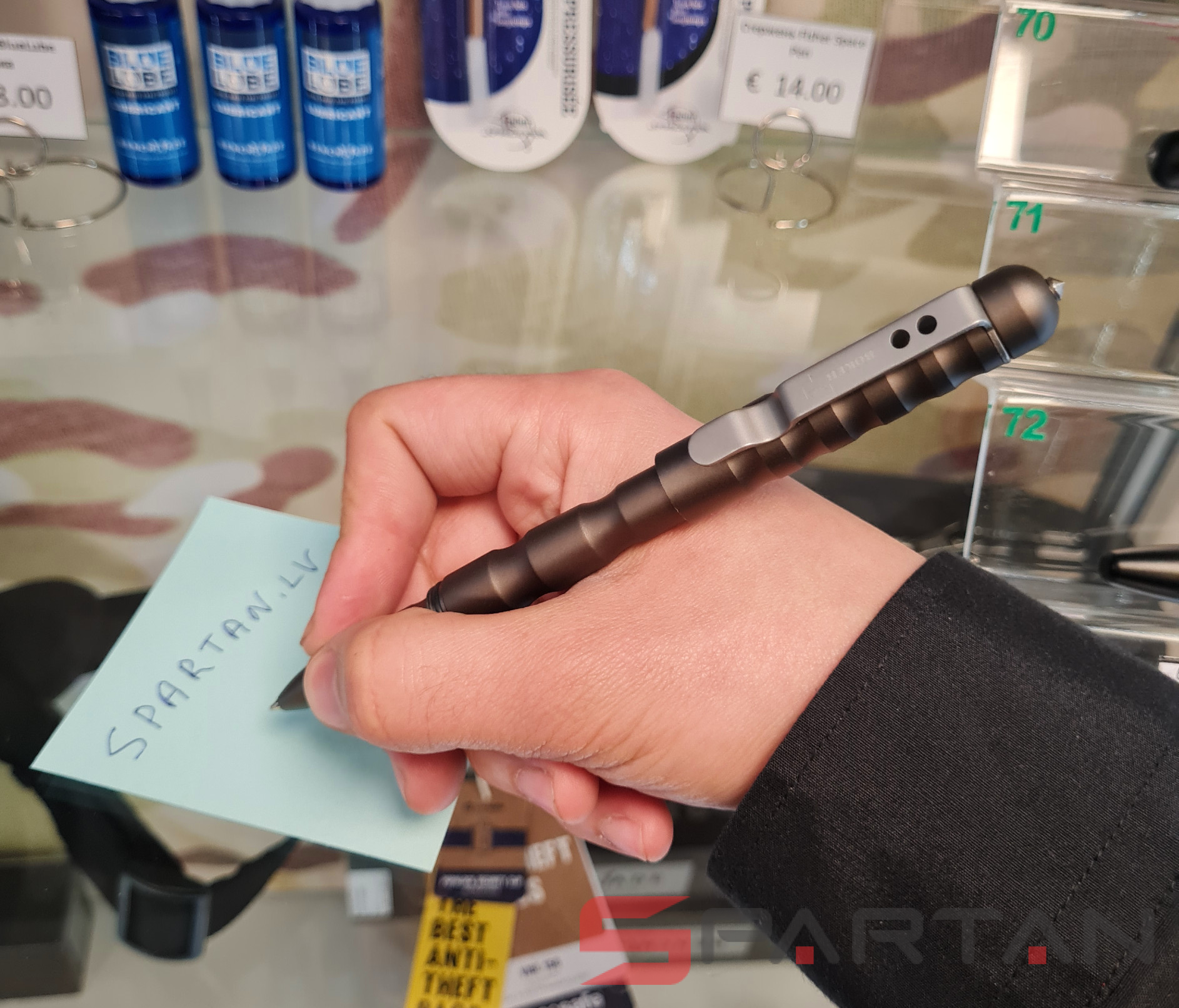 Мощная немецкая тактическая ручка с интересным дизайном корпуса напоминающим стебель бамбука. Корпус целиком выполнен из алюминия, имеет характерное ударное навершие и стальной стеклобой с другой стороны. Вообще по форме эта тактическая ручка максимально близка к японской яваре (куботану) и вполне способна выполнять точно такие же задачи: нанесение болезненных тычковых ударов. Благодаря выемкам в виде колец ручка очень надёжно удерживается даже влажными руками. Колпачёк закрывающий пишущую часть традиционно на резьбе, при письме его можно надеть сзади на корпус ручки. Из дополнительных удобств отметим наличие клипсы для ношения на кармане. Комплектный стержень при желании можно заменить на "космический" Fisher Space Pen.