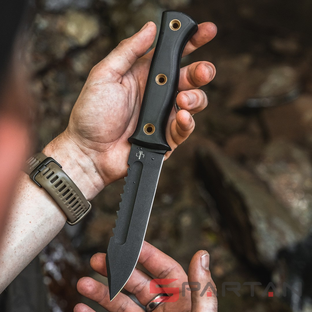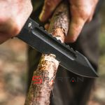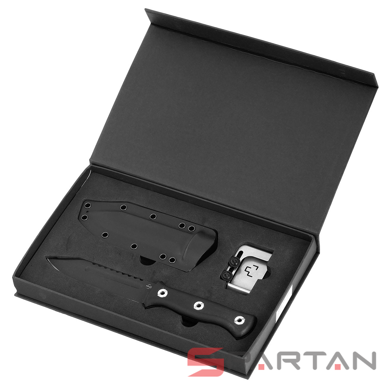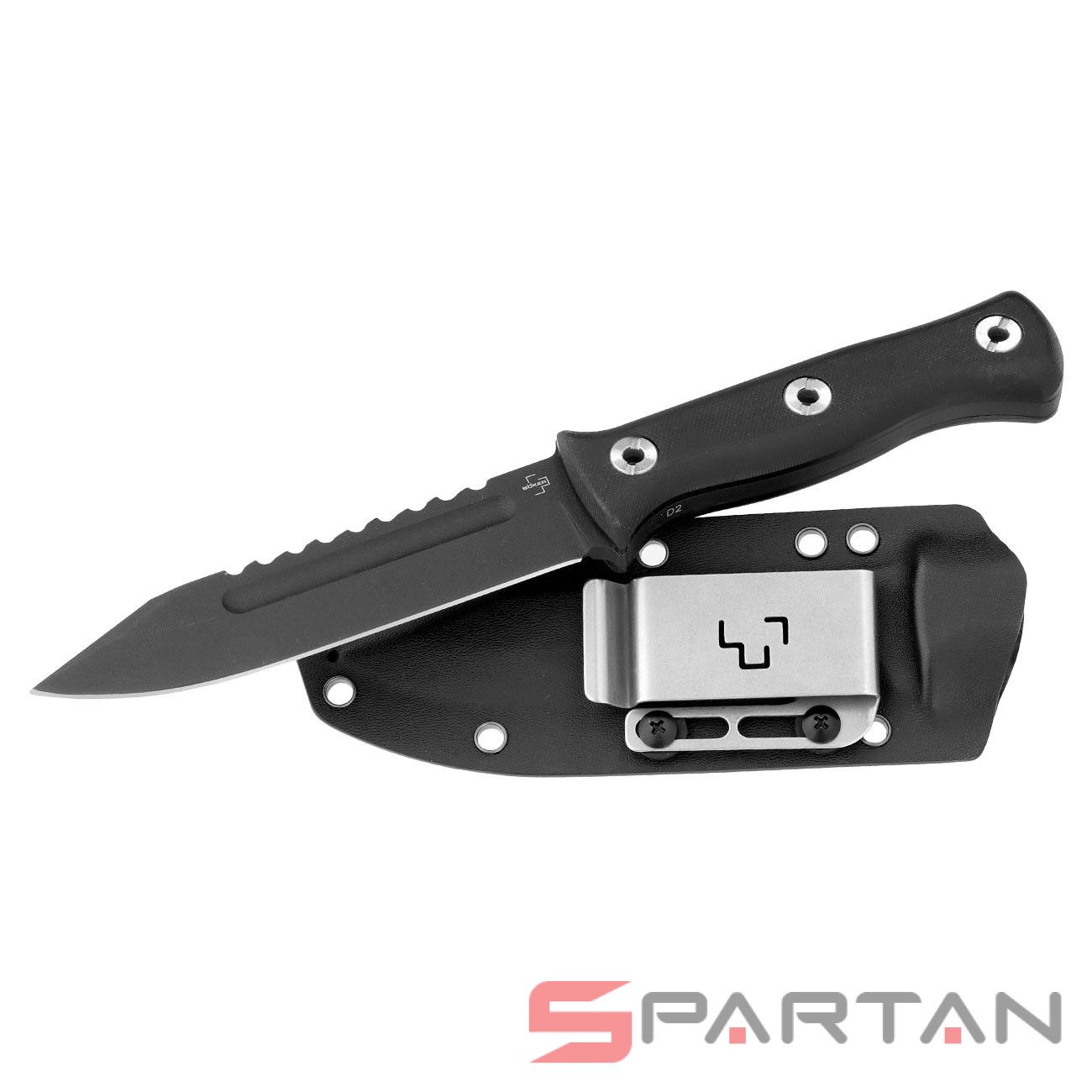 Суровый тактический нож предназначенный для выживания в условиях дикой природы, проще говоря отличный инструмент для путешественников, охотников, рыбаков, военных, бушкрафта и т.п. Разработкой Pilot 2.0 для немецких ножеделов занимался американский ножевой мастер Dave Wenger. Массивный клинок выполнен из американской стали D2, конструкция цельнометаллическая (full tang), на поверхность нанесено защитное чёрное матовое порошковое покрытие, которое предохраняет клинок от коррозии и бликов. Округлую ухватистую рукоять образуют плашки из пластика G10. Полноценная гарда отсутствует, но благодаря выраженным подпальцевым впадинам, риск соскальзывания пальцев на режущую кромку минимален. Нож уверенно фиксируется в ножнах из кайдекса, никакие дополнительные ремешки для фиксации не требуются. В комплект включена клипса, которую вы можете самостоятельно закрепить на ножны под свои задачи.