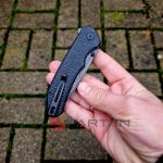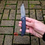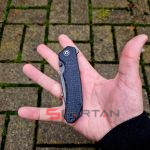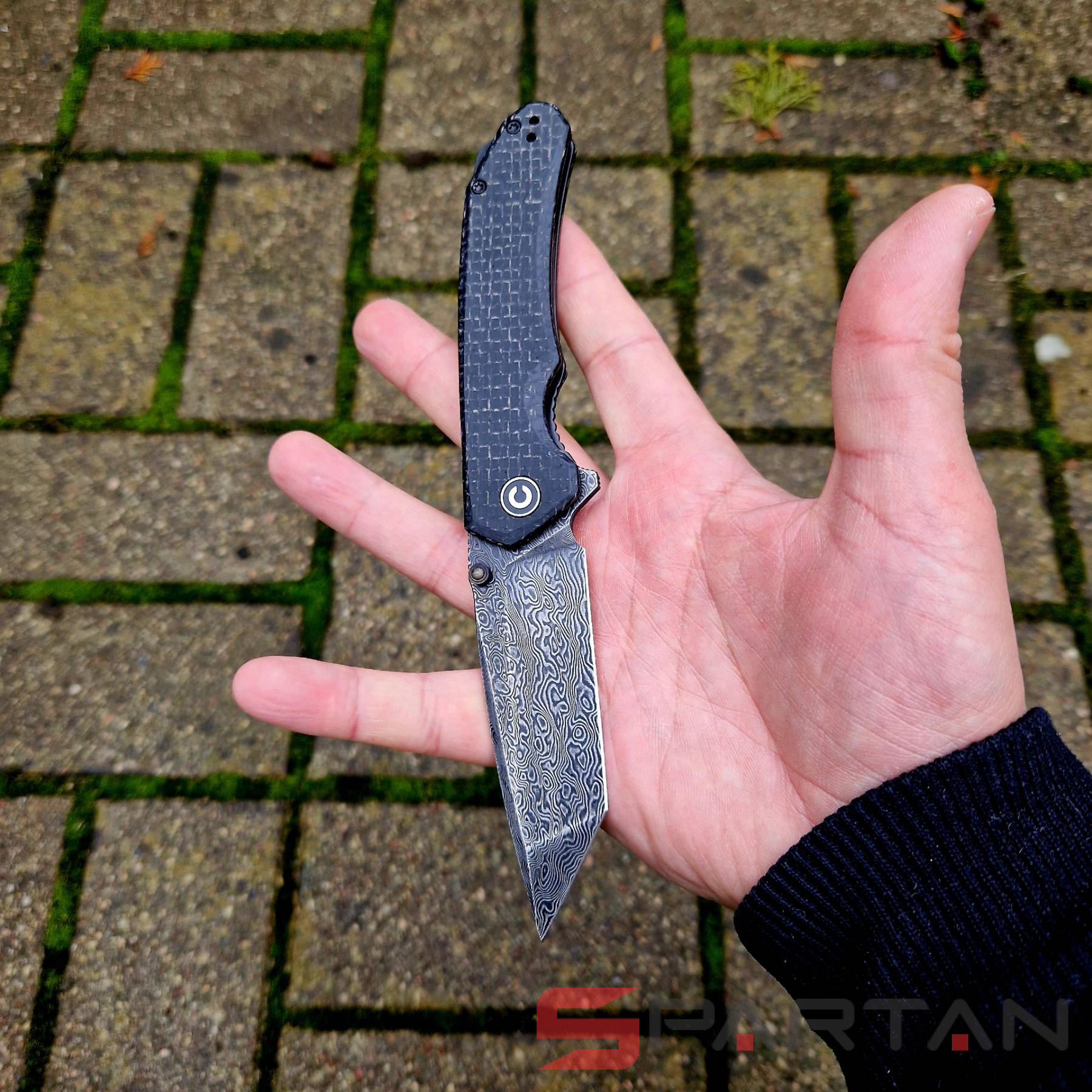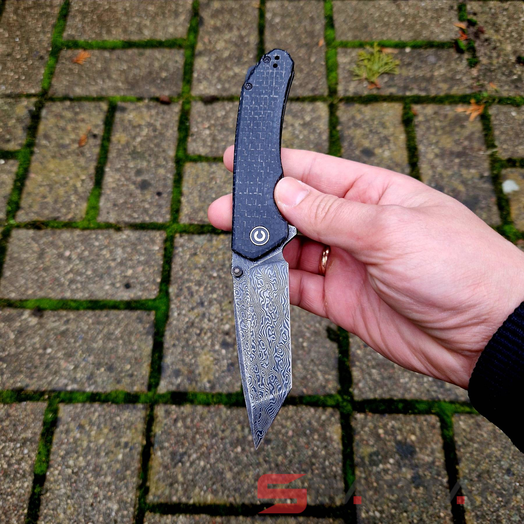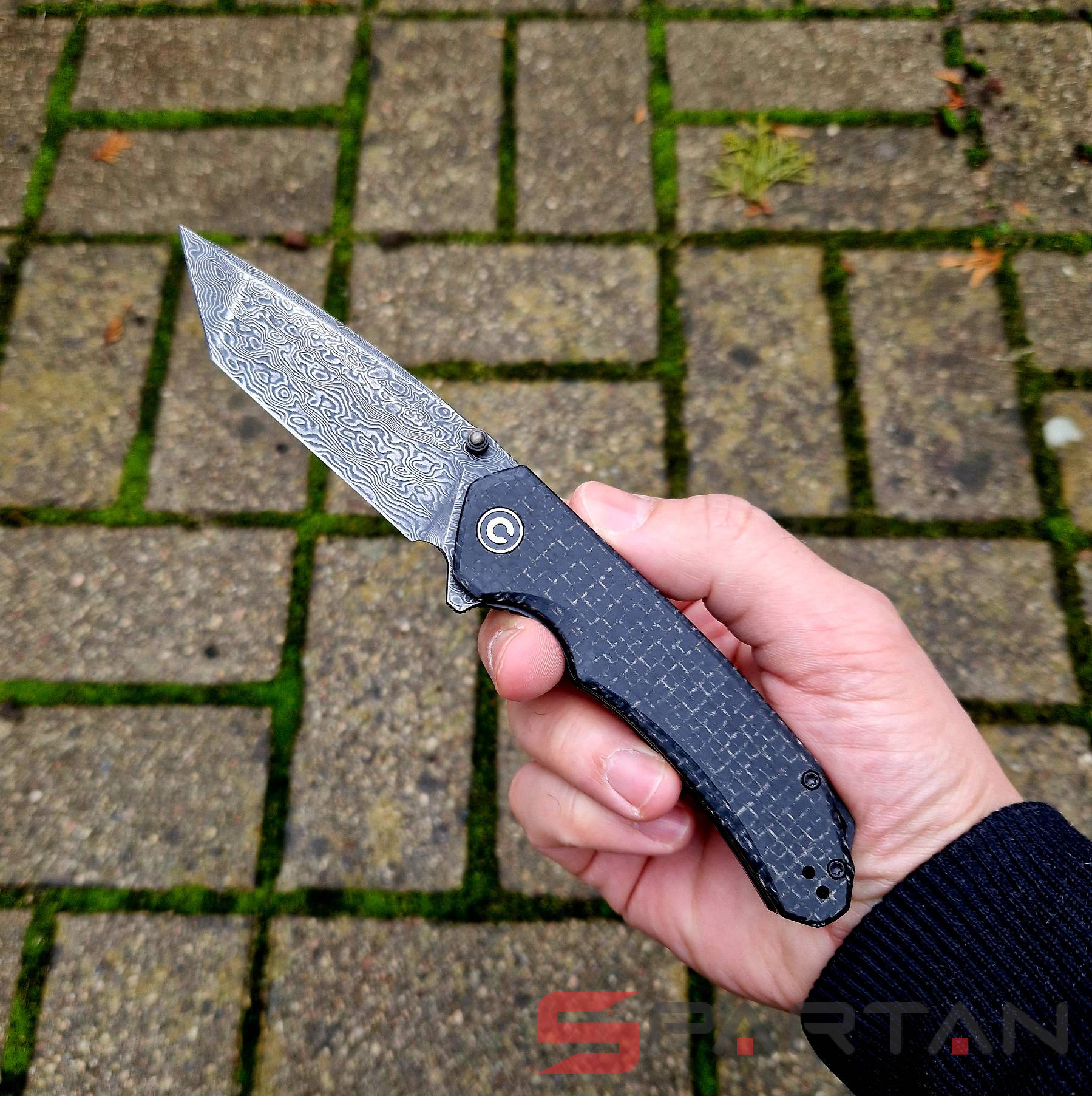 Очень нарядный городской "тантоид" для ежедневного ношения. Нож не слишком крупный и соответственно не слишком тяжёлый, но при этом это полноразмерный нож с очень резучим клинком и пушечной механикой (керамические подшипники). На клинке здесь используется чёрный дамаск, рукоять чёрная микарта с необычной фактурой белой сетки. Благодаря такому броскому сочетанию Brazen выглядит очень дорого, можно сказать даже премиально, при этом приятно удивляет своей сравнительно скромной ценой. Вариантов открытия два: классический плавник флиппера или более традиционный шпенёк на клинке. Удобная клипса глубокой посадки хорошо садится на карман, при необходимости она может быть переставлена на другую сторону рукояти. По итогу имеем удобный и несомненно харизматичный нож с цепкой рукоятью и пробивным клинком.
