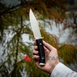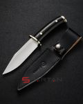 Cовременная интерпретация классического американского охотничьего ножа в исполнении азиатских мастеров из CIVIVI. Форма массивного клинка разумеется старый-добрый боуи, в качестве материала американская сталь D2, высоченные спуски обеспечивают "вкуснейший" рез. Объёмная рукоять выполнена из ЦЕЛЬНОГО куска отполированного пластика G10, но оформлен он так что складывается впечатление что это дерево или рог. Гарда и навершие рукояти выполнены из нейзильбера, он удачно контрастирует с чёрной рукоятью, добавляя ножу классического шарма. В комплект входят ножны из толстой чёрной кожи с подвесом на ремень. Своё название нож получил в честь знаменитого горного хребта в Вайоминге (США). Качество исполнения, подгонка всех элементов, заточка - всё на высоте, нож станет отличным подарком для охотника или просто ножемана.