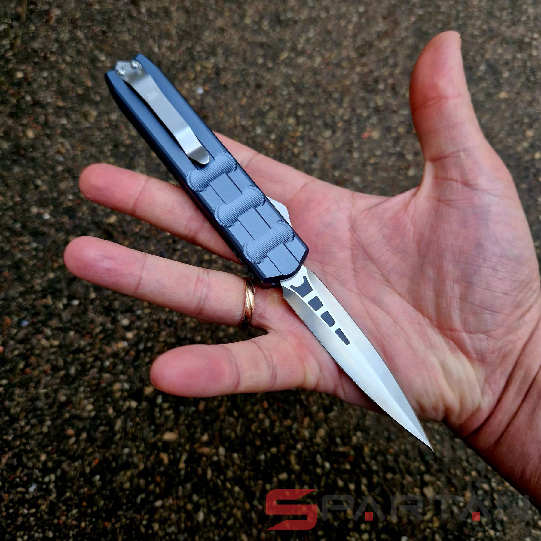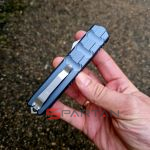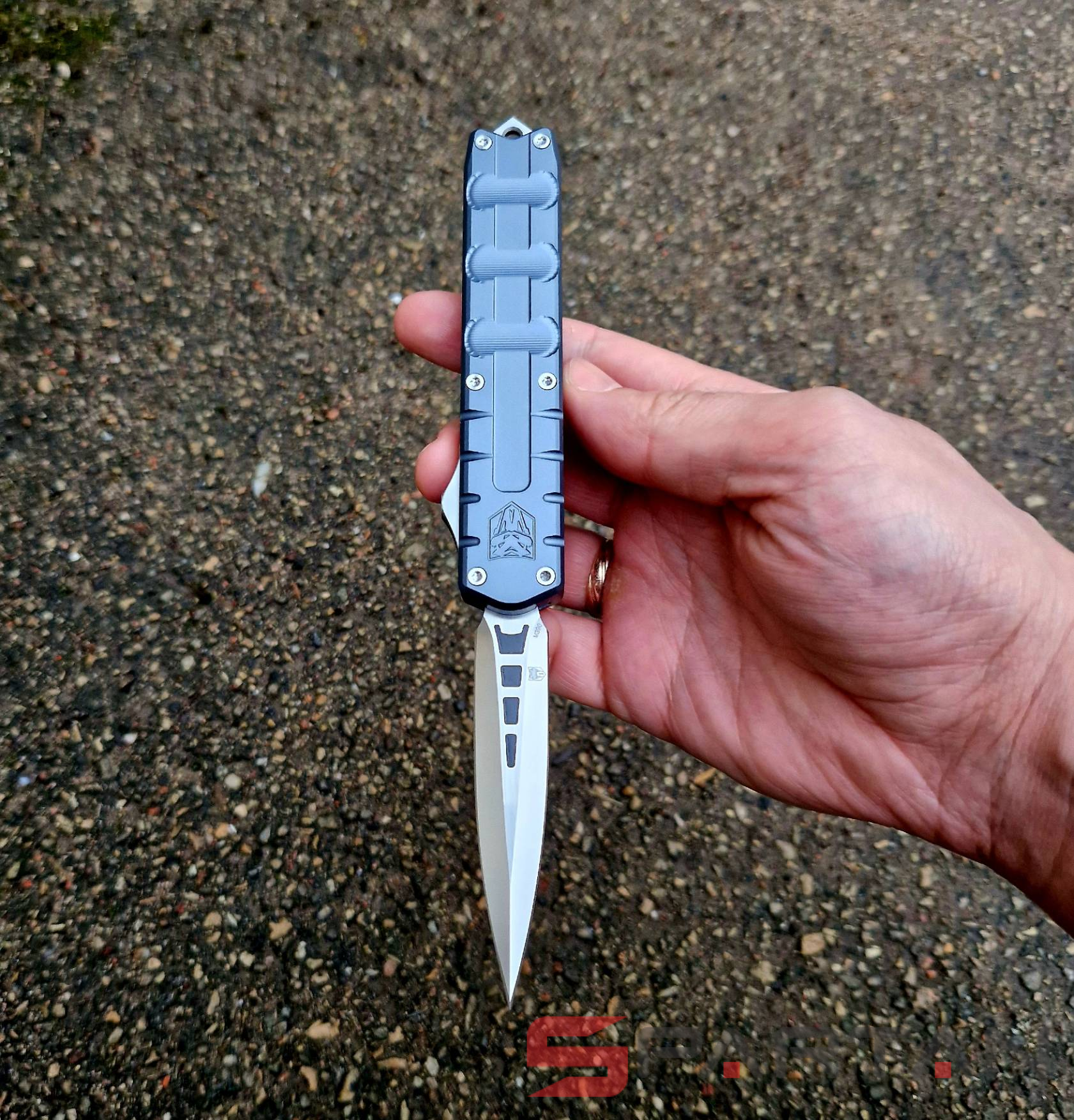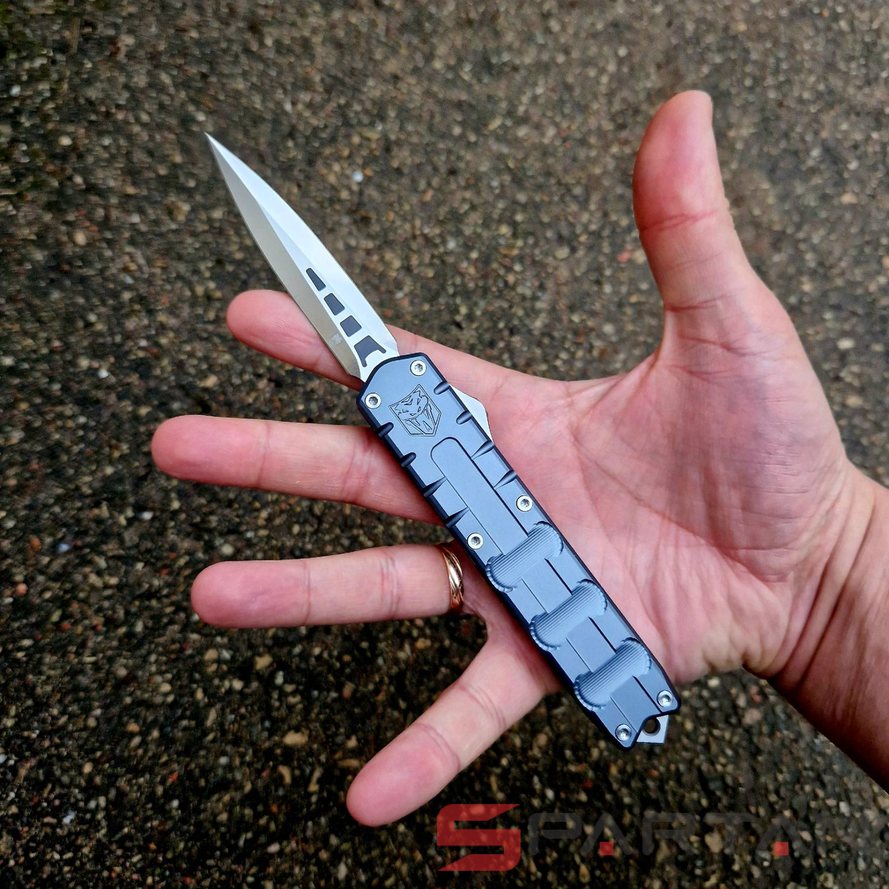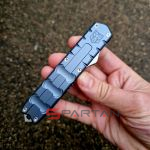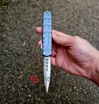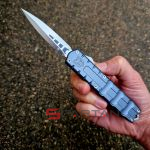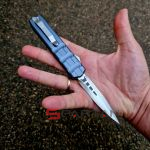 Чёткая американская фронталка в плоском алюминиевом корпусе, со злючим кинжальным клинком из премиальной австрийской стали M390. Несмотря на полноразмерные габариты нож неожиданно лёгкий (100 граммов), плюс стильный дизайн корпуса, так что его запросто можно расценивать как джентельменский "автомат". Впрочем мощный стеклобой в основании рукояти как бы намекает что "Исполнитель" (Enforcer) готов и на выполнение более серьёзных задач. По отзывам независимых ножевых специалистов в своих премиальных моделях CobraTec максимально приблизился к качеству исполнения Microtech. Пружина на спускной кнопке традиционно для американских фронталок достаточно тугая, так что опасаться случайного срабатывания в кармане точно не стоит. Во многих странах "фронталки" запрещены, так что будьте внимательны при выезде с CobraTec OTF Enforcer за границу.