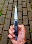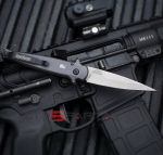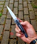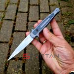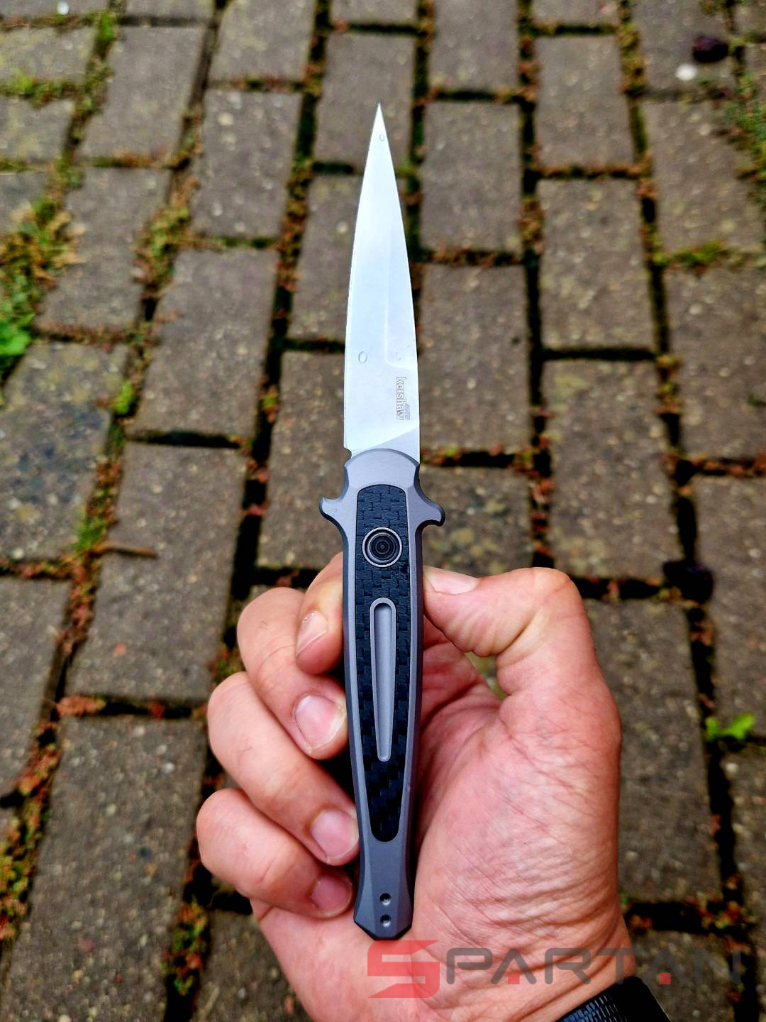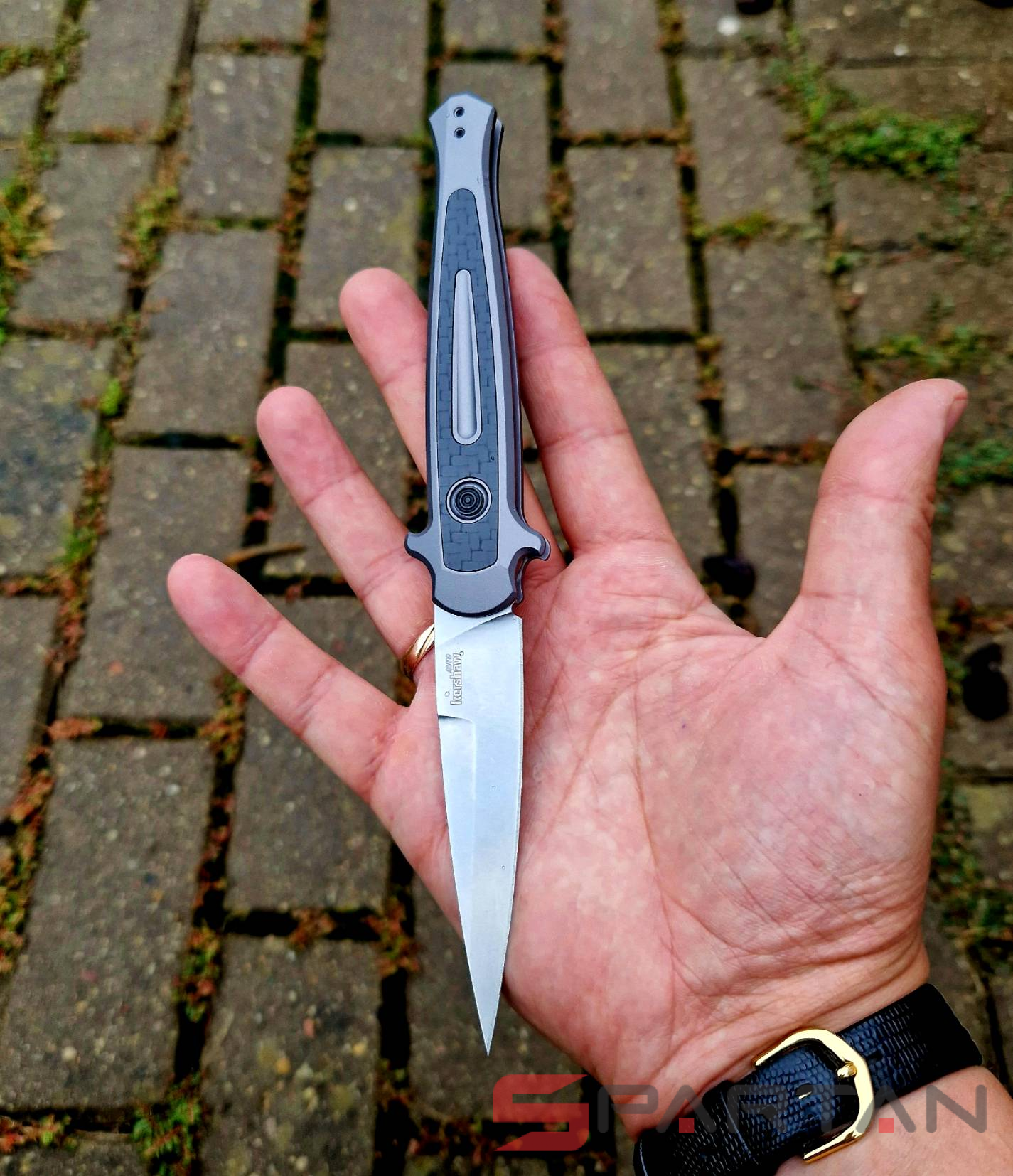 Этот автоматический нож стилизован под итальянские стилеты, о чём говорит форма клинка и рукояти, а также изящная двусторонняя гарда. Несмотря на то что это полноразмерный нож, его вес всего лишь 69 граммов! Так что Kershaw Launch 8 смело можно расценивать как костюмный джентельменский "автомат". На клинке сталь CPM 154 - хорошо держит остроту режущей кромки, без труда точится и обладает хорошей коррозийной стойкостью. Рукоять выполнена из алюминиевого сплава 6061-Т6 и снабжена накладками из карбона. Пружина очень "дерзкая" и после нажатия на клавишу резко выбрасывает клинок с сочным стальным щелчком. Kershaw Launch 8 - нож который притягивает взгляды окружающих, даже если они ничего не смыслят в ножах...