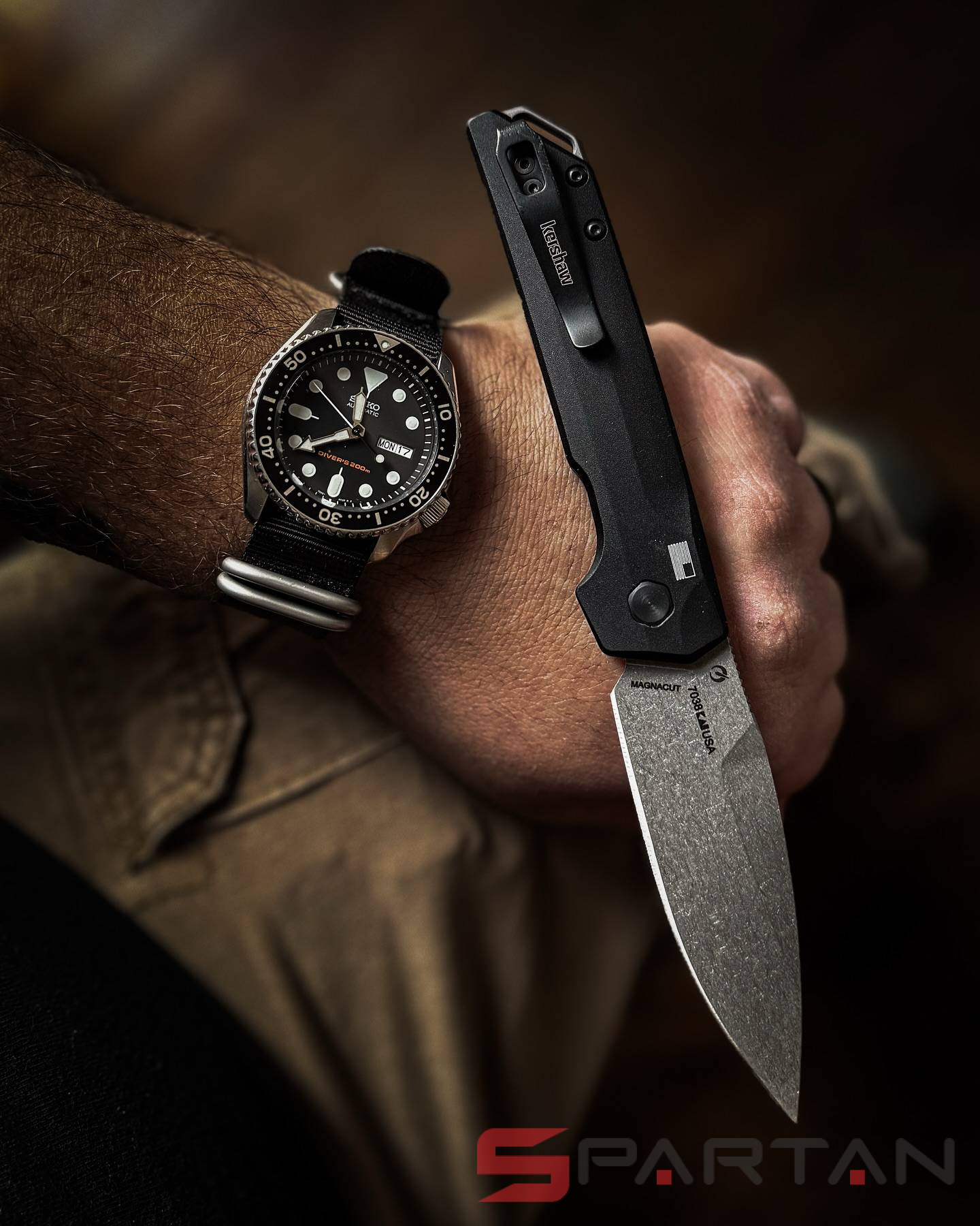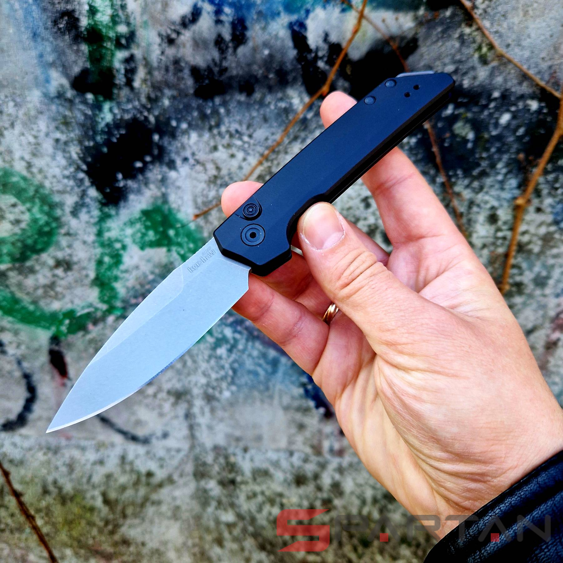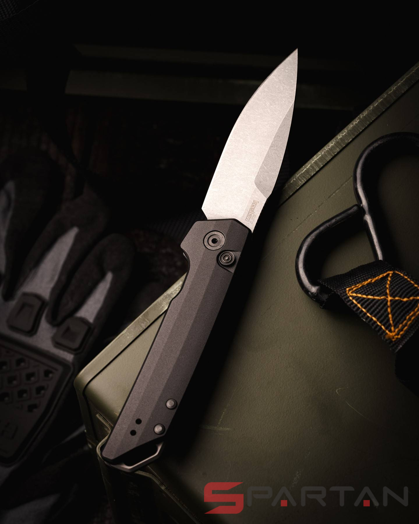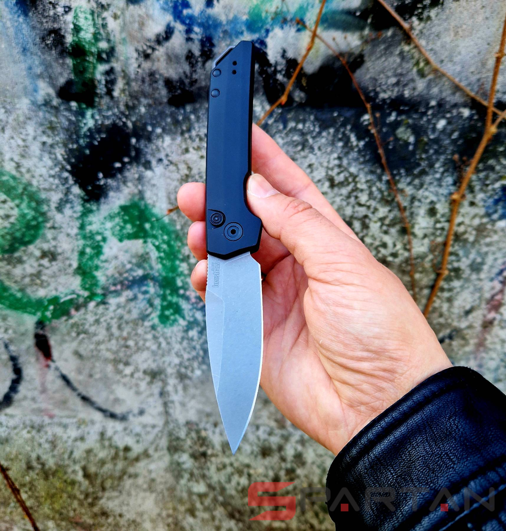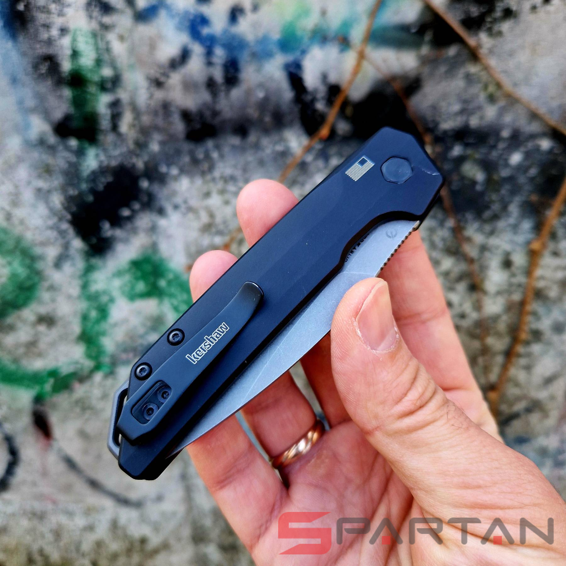 Клинок Kershaw Iridium выполнен из стали MagnaCut, а профиль Spear-Point - напоминает обоюдоострый кинжал. Только у лезвия с профилем Spear-Point заточенная режущая кромка находится с одной стороны, с другой стороны обух имеет вид фальшлезвия. Ножи с клинками такого типа хороши для колющего использования, так как острие у них находится на векторе приложения усилия. На клинок нанесено матовое покрытие StoneWash, так что нож не бликует, да и лезвие не приходится постоянно протирать от отпечатков пальцев.