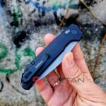 Беспокоиться за скольжение ножа в руке не стоит, глубокие подпальцевые выемки обеспечивают надёжный хват. Переставляемая клипса на правую или левую сторону, имеет глубокую посадку. И без того компактный и лёгкий нож, в кармане становится и вовсе "невидимым".