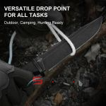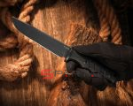 Длинное фальшлезвие на обухе образует ребра жесткости, увеличивающие прочность клинка и, особенно, кончика, позволяя использовать его для пробивания плотных материалов. Собственно очевидно что этот "монстрик" может безболезненно переносить серьезные боковые нагрузки. В качестве материала здесь используется сталь AEB-L производимая шведско-австрийским концерном Bohler-Uddeholm. Хорошо сбалансированная сталь, в которой сочетается неплохая износостойкость, хорошая вязкость и пластичность, простота в заточке, и высокая коррозионная стойкость. Хороший выбор для рабочего ножа, который будет использоваться каждый день.