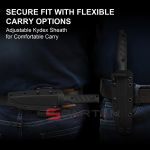 Ножны изготовлены из термопластика Kydex. Они очень плотно удерживают нож даже без страховочного ремешка. Радует что производитель не забыл про отверстие для слива воды. Термопластиковые ножны очень легкие и удобные в использовании. Термопластик очень долговечен, не рассыхается, не трескается, влагоустойчив, ударопрочен, без проблем переносит жару и мороз, а также различные агрессивные среды (моющие средства, щелочи, масла и т. п.).