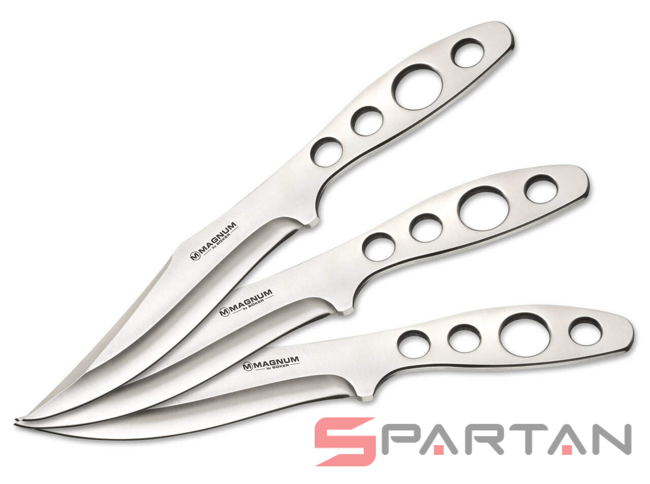 Ножи выполнены из монолитного куска нержавеющей стали 420J2. Это довольно мягкая сталь, но зато неподверженная сколам, что особенно важно для метательных ножей. Каждый нож весит порядка 175 грамм, и имеет длину почти 27 сантиметров. В рукояти имеются отверстия для снижения массы и смещения уровня тяжести к клинку.