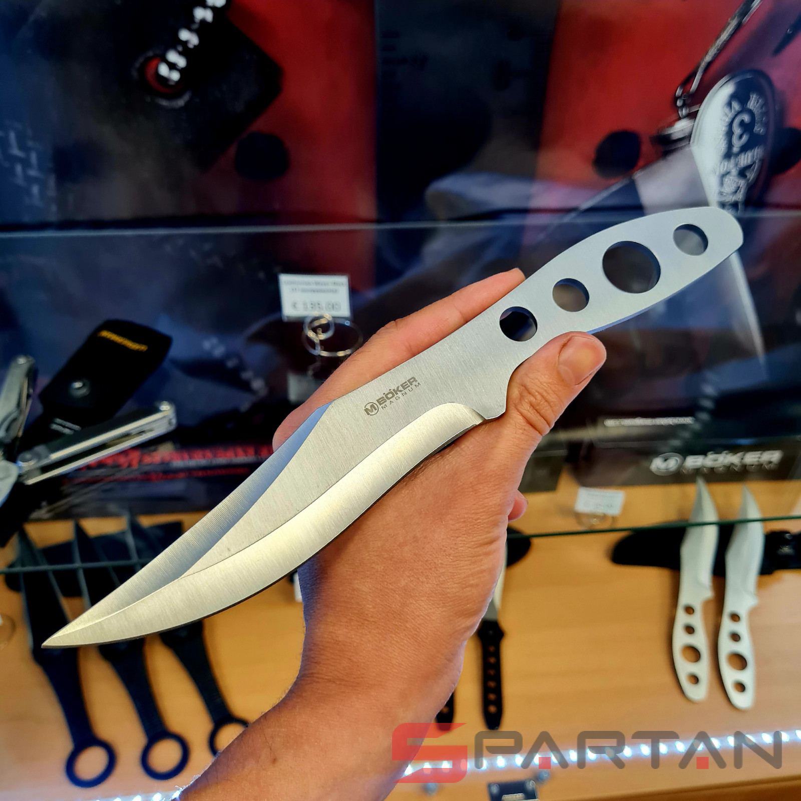 Набор цельнометаллических метательных ножей, созданных немецкой компанией Boker. Каждый нож изготовлен из куска 420J2 стали, форма клинка Bowie. Ножи отлично сбалансированы, хорошо удерживаются при замахе и не слишком тяжёлые, так что могут подойти для тренировок не только взрослым мужчинам, но и представительницам слабого пола или даже подросткам. Сразу стоит определиться - это не игрушка, а настоящие метательные ножи, с заточенным клинком. В набор входит 3 ножа и кожанные ножны с подвесом на поясной ремень. Метание ножей развивает силу воли, концентрацию, хладнокровие, вселяет уверенность в собственных силах. В процессе тренировок метатель приобретает повышенную остроту зрительных восприятий, тонкую мышечную и тактильную чувствительность, быстроту и точность двигательных реакций.