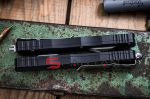 Мощная премиальная фронталка с несомненным вау-эффектом. Dirac Delta (также как Dirac) - это пока единственная линейка "автоматов" у Microtech с расположением кнопки-ползунка не с торца, а на фронтальной части рукояти. Из-за этой особенности и крупного обоюдоострого кинжального клинка Dirac Delta сразу окрестили "убийцей" культового Benchmade Infidel. Ножи действительно похожи, но из-за почтенного возраста, Infidel сильно уступает по стали, справедливости ради и стоит он существенно дешевле. Dirac Delta - это увеличенная версия модели Dirac. Разработанный с эргономичным корпусом и изогнутыми линиями похожими на H.A.L.O., Dirac Delta имеет другое ощущение по сравнению с традиционными OTF-ножами Microtech. По материалам как обычно "тяжелый люкс": супер-сталь M390, рукоять анодированный алюминий 6061-T6, мощная пружина, здоровенный стеклобой, широкая клипса глубокой посадки, минимальные люфты и вагон харизмы в придачу. Во многих странах "фронталки" запрещены, так что будьте внимательны при выезде с Dirac Delta за границу.