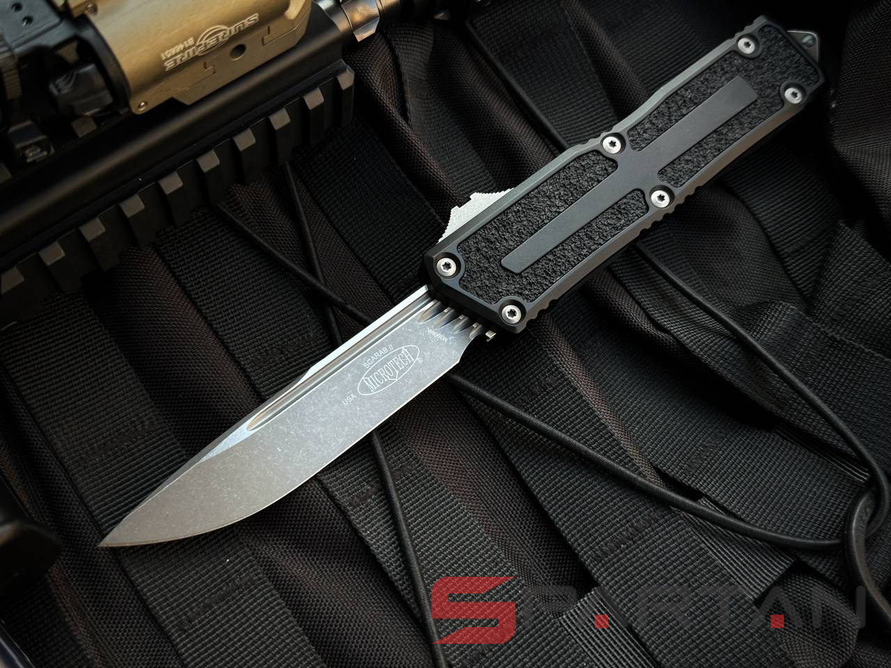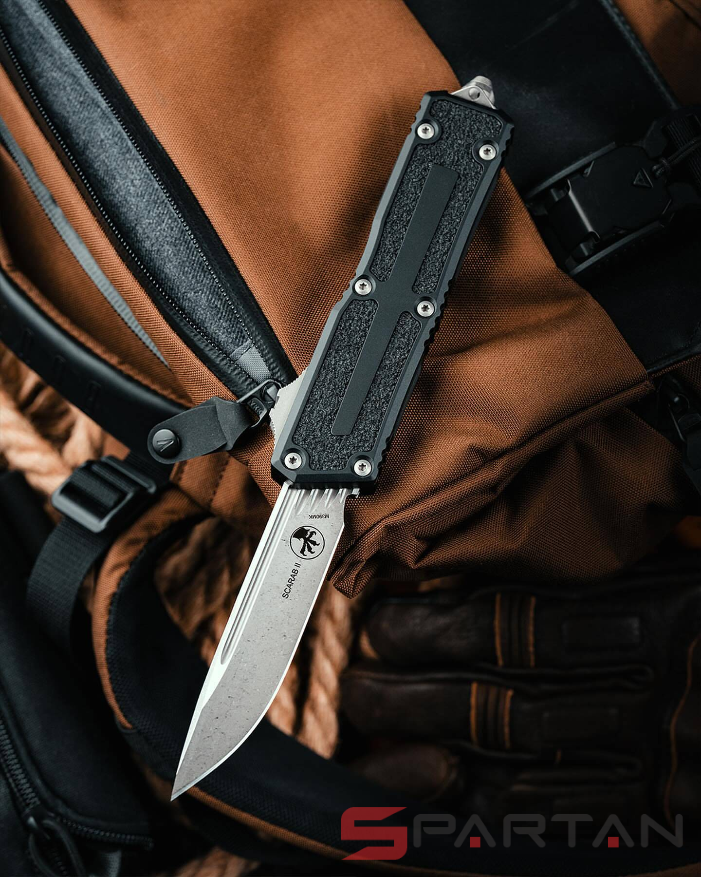 На сегодняшний день Scarab II Gen III является крупнейшей фронталкой в актуальном ассортименте Microtech. Этот здоровенный тактик с грозным внешним видом, мощным 10 сантиметровым клинком и огромным стеклобоем назван в честь древнего жука Скарабея. В древности они считались символом защиты, силы и движения. Название выбрано не случайно: оно символизирует прочность, надежность и "бронированный" характер ножа. Кстати изображение Скарабея выгравировано на клипсе Scarab II. Нож создан для профессионального использования в самых жёстких условиях. Третье поколение легендарного Scarab получило обновленный механизм, усиленную конструкцию, улучшенную эргономику и премиальные материалы. По материалам как обычно "тяжелый люкс": супер-сталь M390MK, рукоять анодированный алюминий 6061-T6 с текстурированными вставками для лучшего удержания, мощная пружина, здоровенный стеклобой, широкая клипса глубокой посадки, минимальные люфты и вагон харизмы в придачу. Во многих странах "фронталки" запрещены, так что будьте внимательны при выезде с Scarab II Gen III за границу.