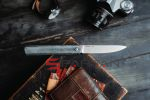 Клинок Esquire выполнен из стали D2, известной своей прочностью и способностью долго сохранять остроту режущей кромки. Тем не менее не стоит забывать и о "слабости" этой стали по отношению к коррозии, так что после влажных работ обязательно вытираем насухо. Форма клинка Drop Point с сатиновой обработкой не только придает ножу элегантный вид, но и обеспечивает высокую функциональность и универсальность в использовании.