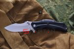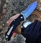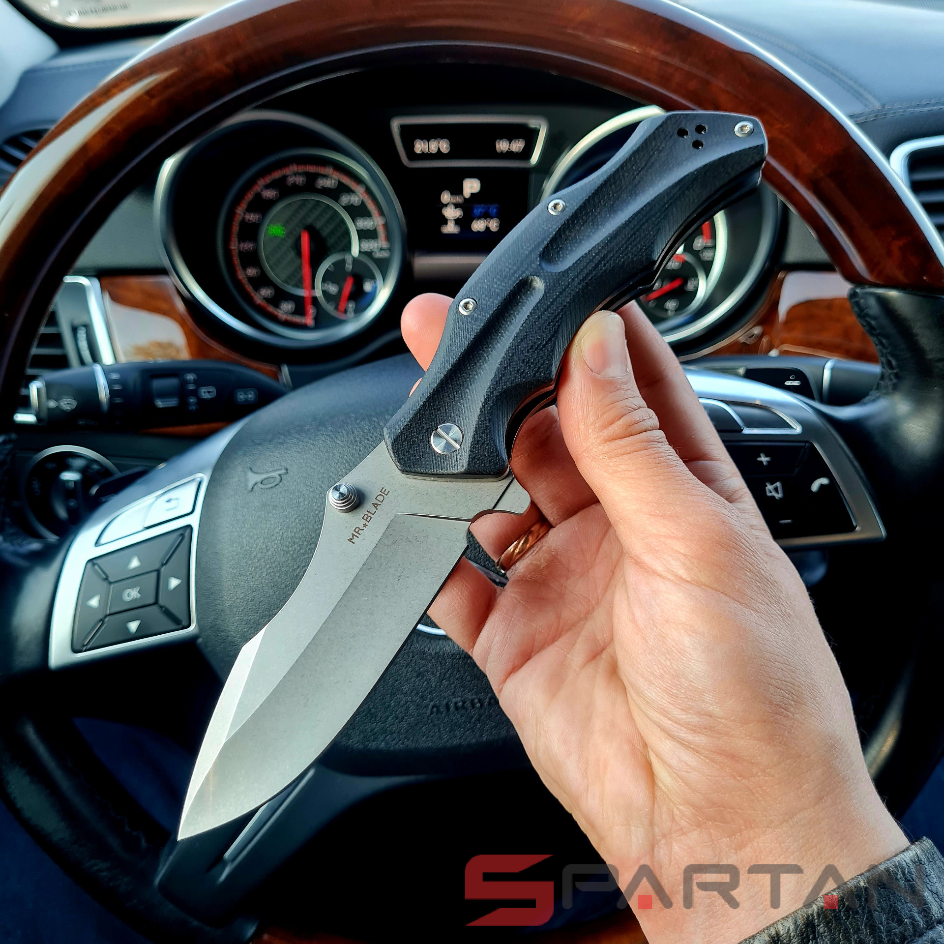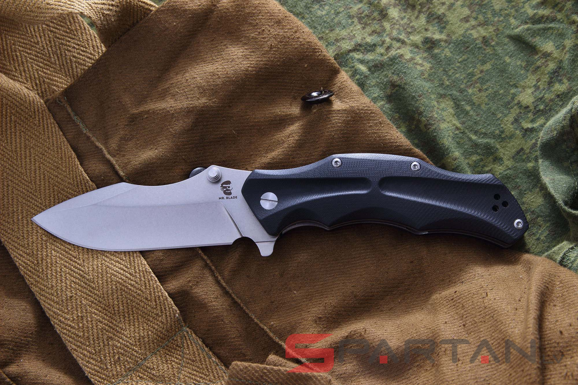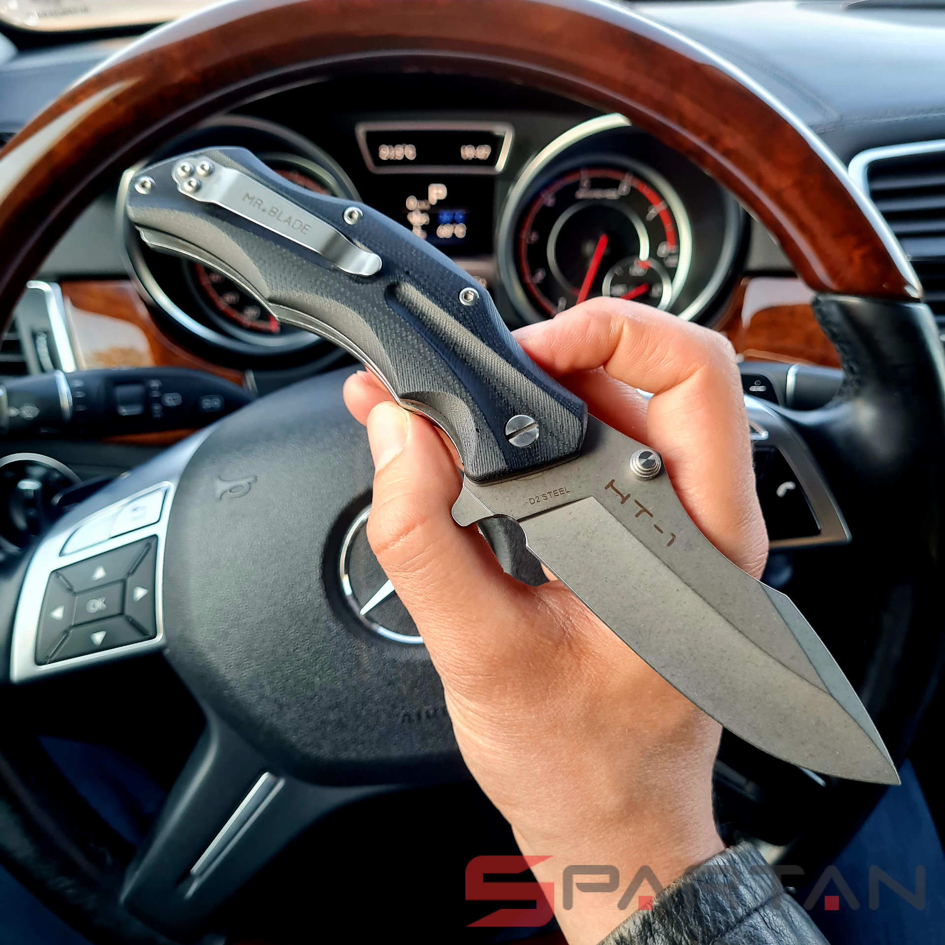 Мощный брутальный складень, с толстенным клинком из классной американской стали D2, ухватистой рукояткой из пластика G10 и хищными формами. Нож идеально ложится в среднюю мужскую руку, им удобно работать как прямым, так и обратным хватом. Mr.Blade HT-1 достаточно тяжёлый, так что сжав его в руке даже в сложенном виде, можно неплохо отбиться от злодеев. Нож можно открыть как минимум тремя способами: подтолкнув плавник-флиппер указательным пальцем; толкнув шпенёк на клинке большим пальцем; просто резким взмахом руки (чисто инерционно). В любом случае нож открывается с сочным оружейным щелчком. Плавность хода клинка безумно крутая - оно и понятно, ведь здесь использованы не шайбы, а подшипники. Если вам нужен могучий складной нож, а денег на Benchmade Adamas не хватает, то Mr.Blade HT-1 отличная альтернатива!
