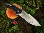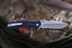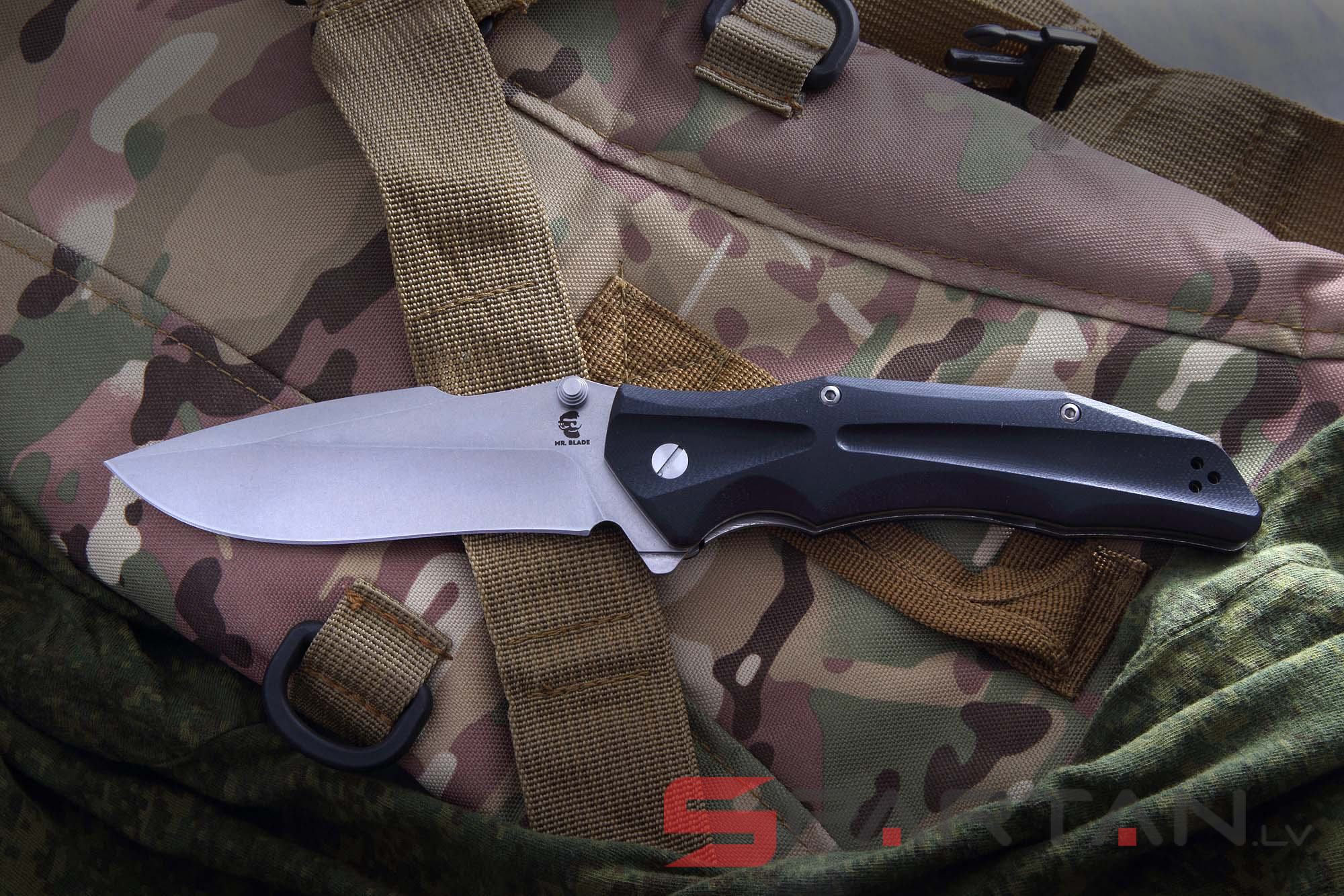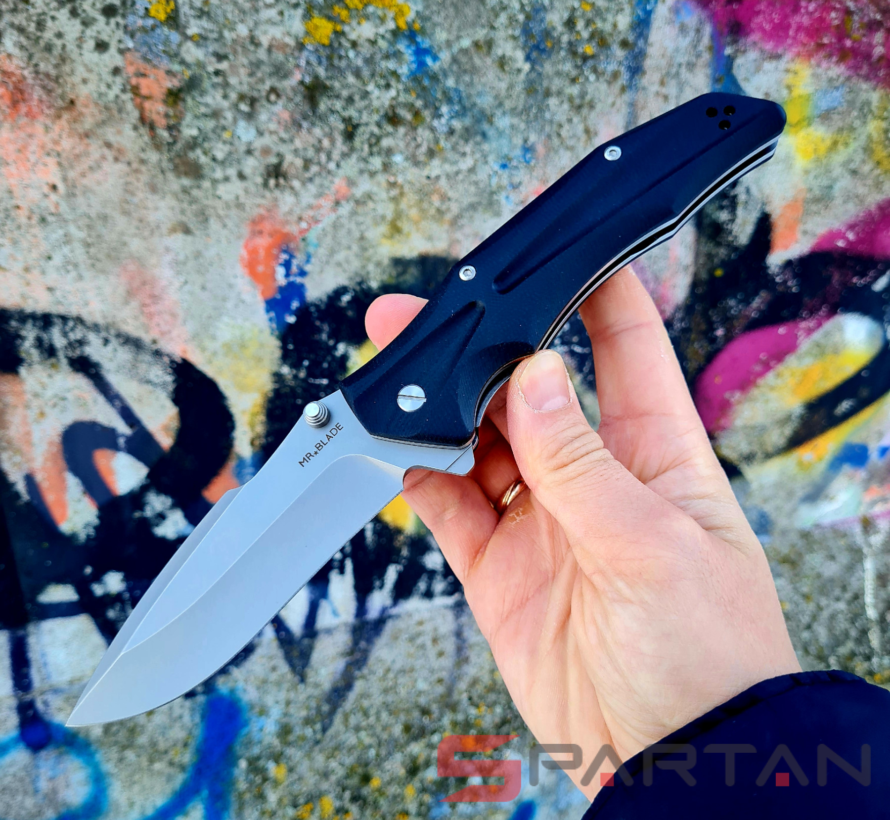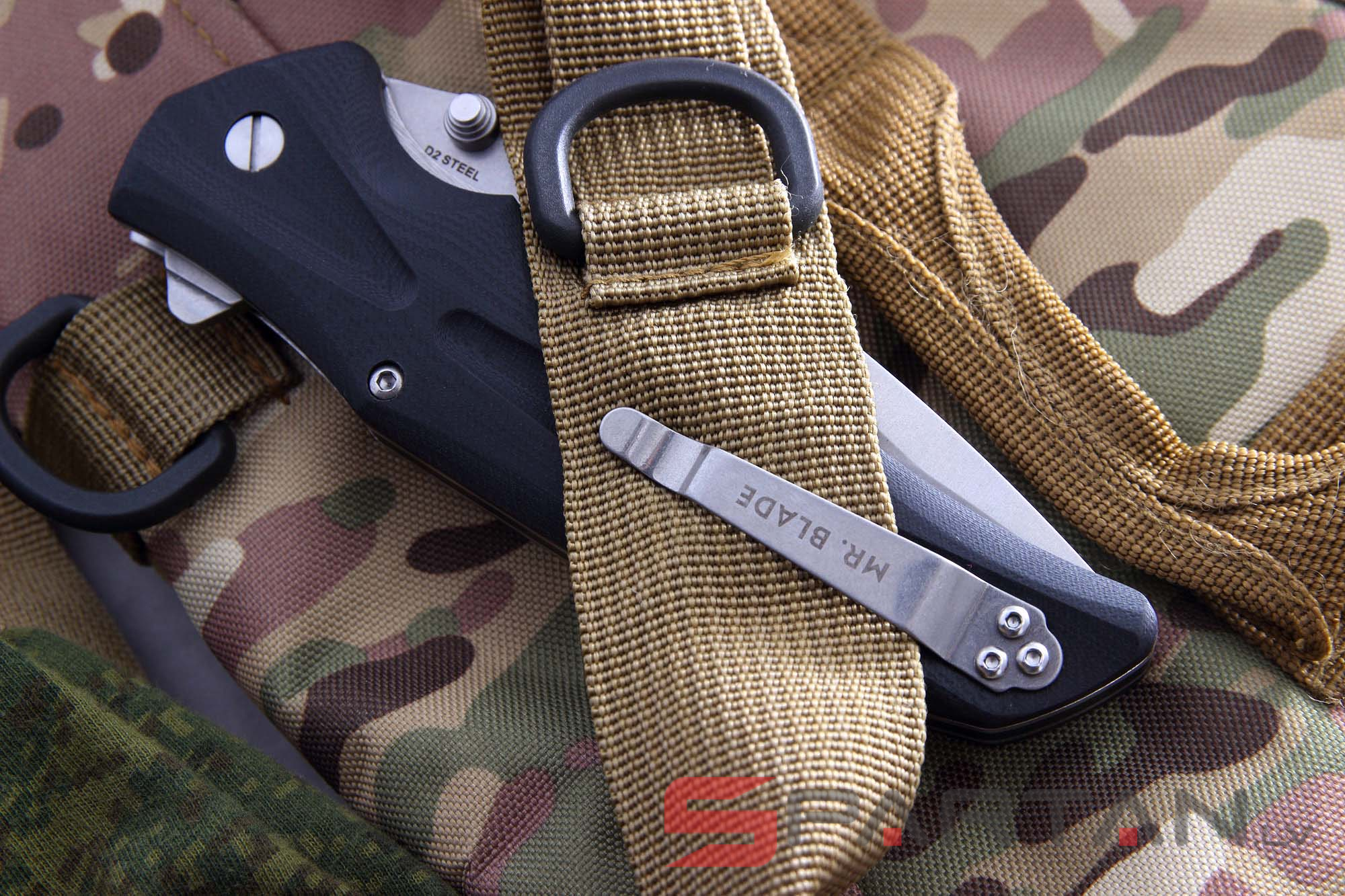 Mr.Blade HT-2 - большой, тяжёлый, надёжный! Нож ладно скроен и крепко сбит. Никаких люфтов, неровностей, и лишних зазоров. Клинок выполнен из американской стали D2, рукоятка из пластика G10. Нож идеально ложится в мужскую руку, им удобно работать как прямым, так и обратным хватом. Открывается тремя способами: подтолкнув плавник-флиппер указательным пальцем; толкнув шпенёк на клинке большим пальцем; просто резким взмахом руки (чисто инерционно). В любом случае нож открывается с сочным оружейным щелчком. Плавность хода клинка безумно крутая - оно и понятно, ведь здесь использованы не шайбы, а подшипники.