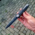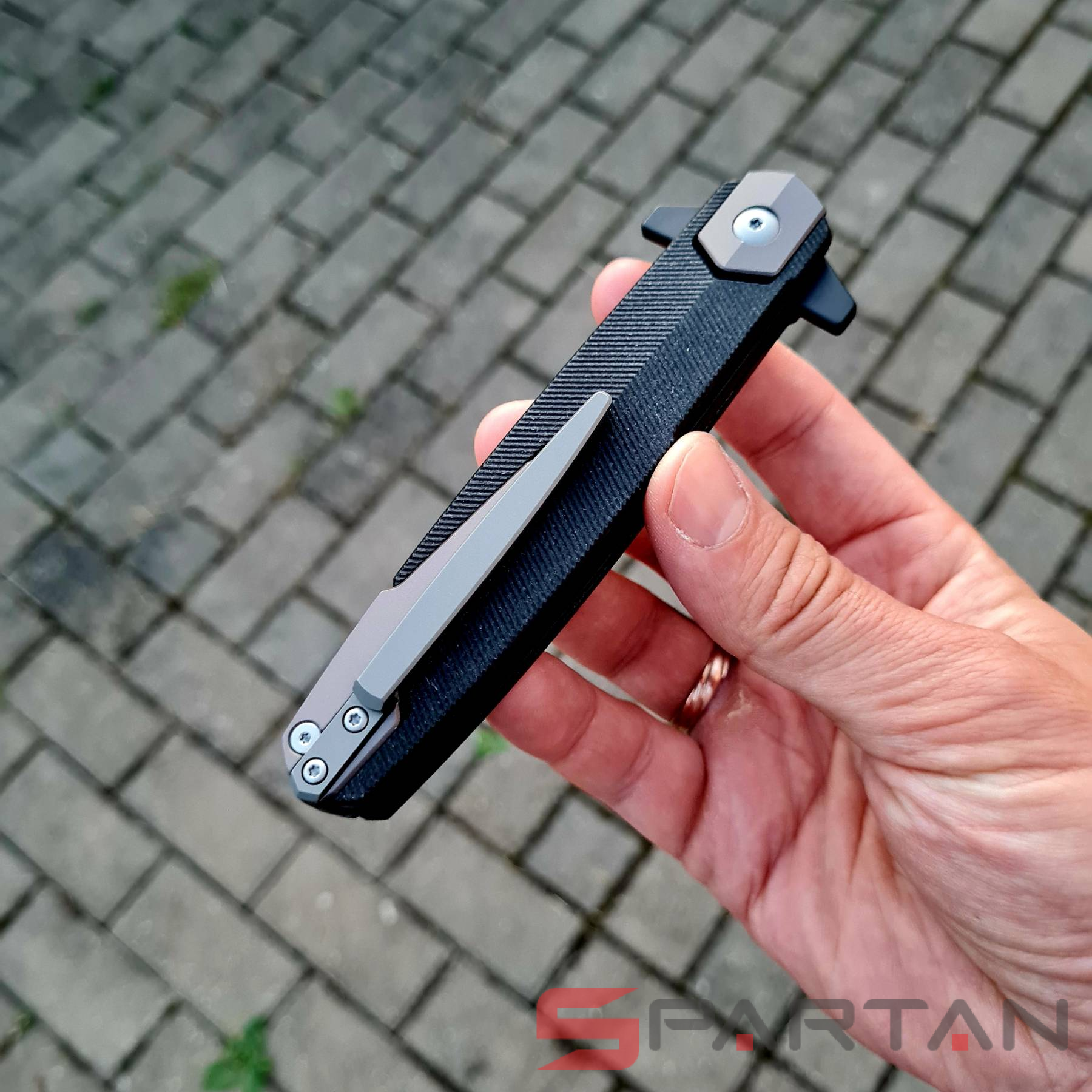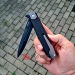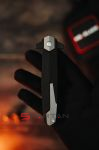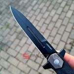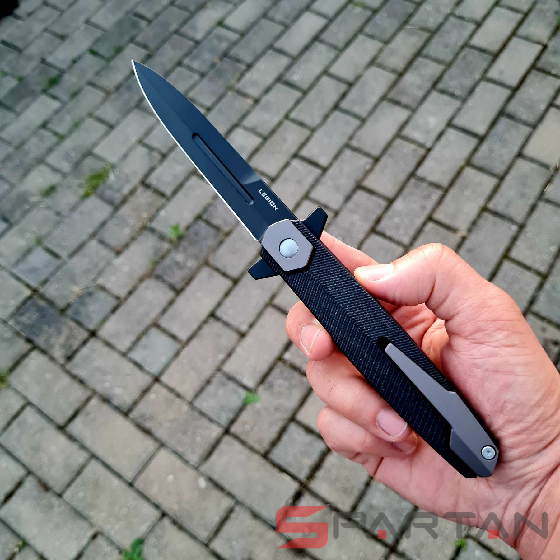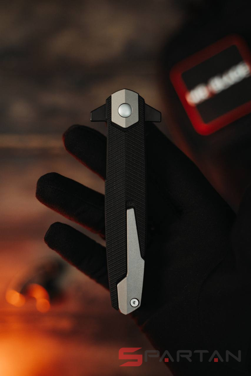 Имя ему - Legion, нож производит впечатление с первого взгляда. Крупный с кинжальным клинком и объемной хорошо лежащей в руке рукоятью, он вызывает ассоциации одновременно с древними мечами и формами космических кораблей из классической фантастики. Клинок выполнен из американской стали D2, накладки на рукояти из рельефной G10, длинная узкая клипса фрезерована из титана. В осевом узле установлены керамические подшипники обеспечивающие мягкий ход клинка и его стремительный выброс даже при легком нажатии на развитый флиппер-гарду. К слову Legion также бодро открывается зацепом об карман, при доставании оттуда ножа. Кинжальная форма клинка делает этот нож идеальным для проникающих действий, хотя с другим задачами он также вполне справится. В очередной раз Mr.Blade смогли создать нож в котором функциональность плотно сплетена со стилем и наделили его бешеной харизмой!
