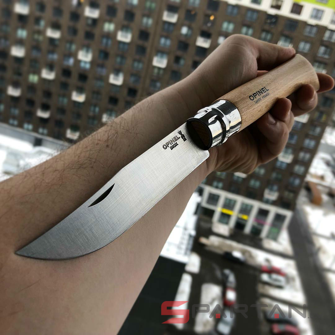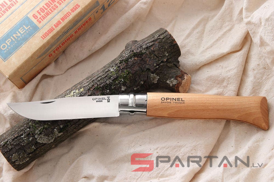 Редкий гигантский Opinel! Несмотря на кажущиеся избыточными габариты, очень любим многими охотниками, рыболовами и путешественниками. Цифра в названии означает длину клинка в сантиметрах. Этот 12 сантиметровый гигант больше похож даже на тесак. Модель Opinel 12 INOX имеет клинок из нержавеющей стали Sandvik 12C27, и рукоятку из цельного куска дерева (светлый бук).