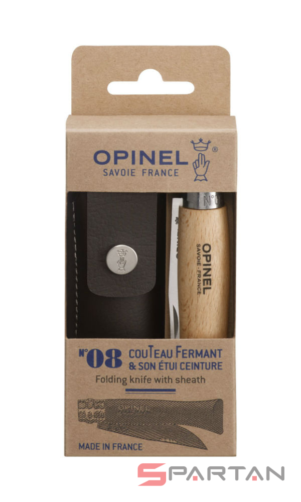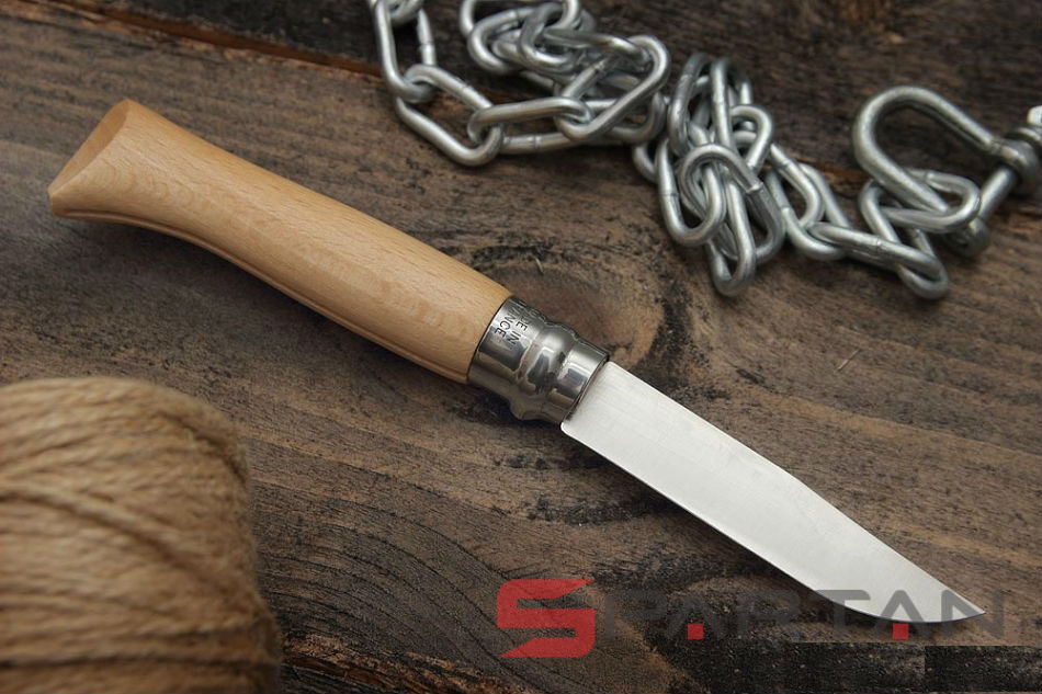 Простой, надёжный, недорогой - основные плюсы всех ножей Opinel. Ножи отлично подходят как для грибников-рыболовов, так и просто для путешественников. Цифра в названии означает длину клинка в сантиметрах. Модель Opinel 8 INOX имеет клинок из нержавеющей стали Sandvik 12C27 и рукоятку из цельного куска дерева (светлый бук). В комплект входит коричневый кожаный чехол с кнопкой. Его можно подвесить на поясной ремень или закрепить при помощи шнурка. Чехол выполнен из натуральной кожи, которая покрыта особым составом. Такая особенность защищает чехол от влаги и делает его окраску более устойчивой. В процессе носки чехол постепенно принимает форму ножа, что обеспечивает мягкую фиксацию и комфорт при постоянном использовании. Отличный бюджетный подарок...