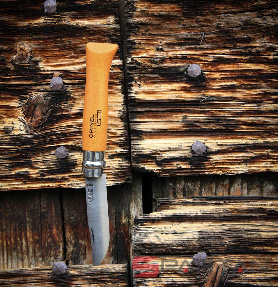 Простой, надёжный, недорогой - основные плюсы всех ножей Opinel. Ножи отлично подходят как для грибников-рыболовов, так и просто для путешественников. Цифра в названии означает длину клинка в сантиметрах. Наиболее популярными размерами как раз и являются Opinel 9 и 10. Модель Opinel 9 Carbone имеет клинок из высокоуглеродистой стали, очень агрессивно режет и отлично держит заточку. Но к сожалению как и всякая углеродистая сталь - ржавеет. После использования тщательно и насухо вытирайте свой Opinel. При желании можно приобрести фирменный кожаный чехол OPINEL Outdoor L.
