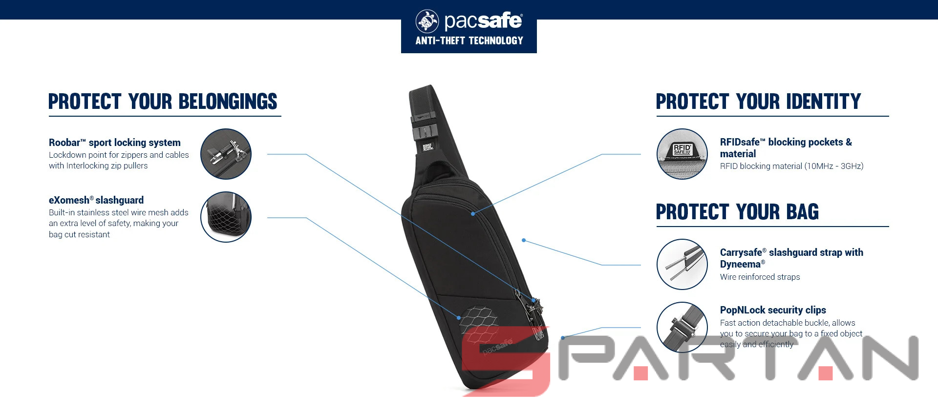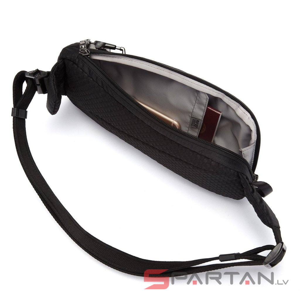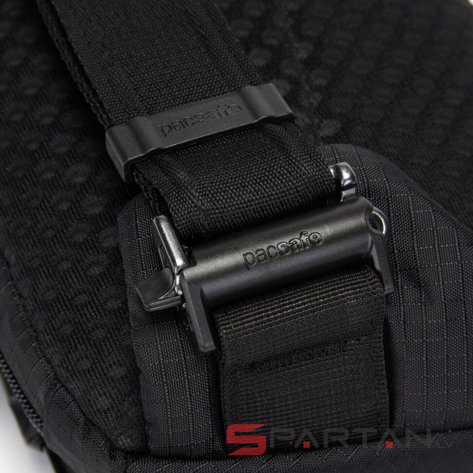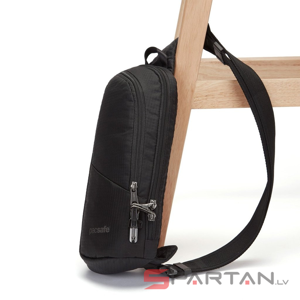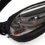 Сумка-слинг Pacsafe Vibe 150 занимает промежуточную позицию между полноценным рюкзаком и поясными сумками. Этакий компромисс, когда нужно взять больше вещей чем помещается в карманах, но недостаточно много, чтобы брать с собой объемный рюкзак. Vibe 150 весит всего 370 грамм. Объем — 2.5 литра, в карман в основном и единственном отделении помещается планшет iPad mini, а в большой передний карман поместится смартфон. Сумка хорошо сидит на плече и носится на спине. Чтобы достать нужную вещь, достаточно перетянуть Vibe 150 со спины на живот. Удобный и надёжный карабин позволяет быстро и удобно снимать и надевать сумку. Весь стандартный набор "брони", типичный для сумок Pacsafe здесь в полной мере присутствует. Если вам требуется бронированная сумка-слинг побольше, то стоит присмотреться к Pacsafe X Urban.