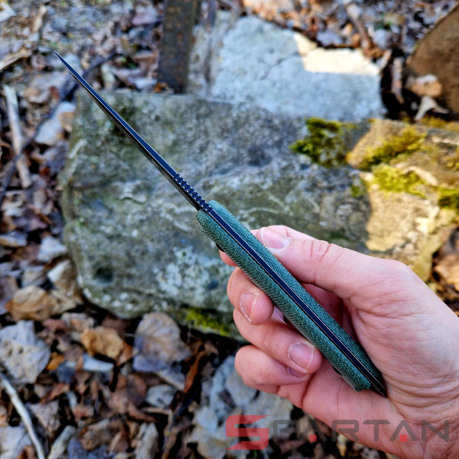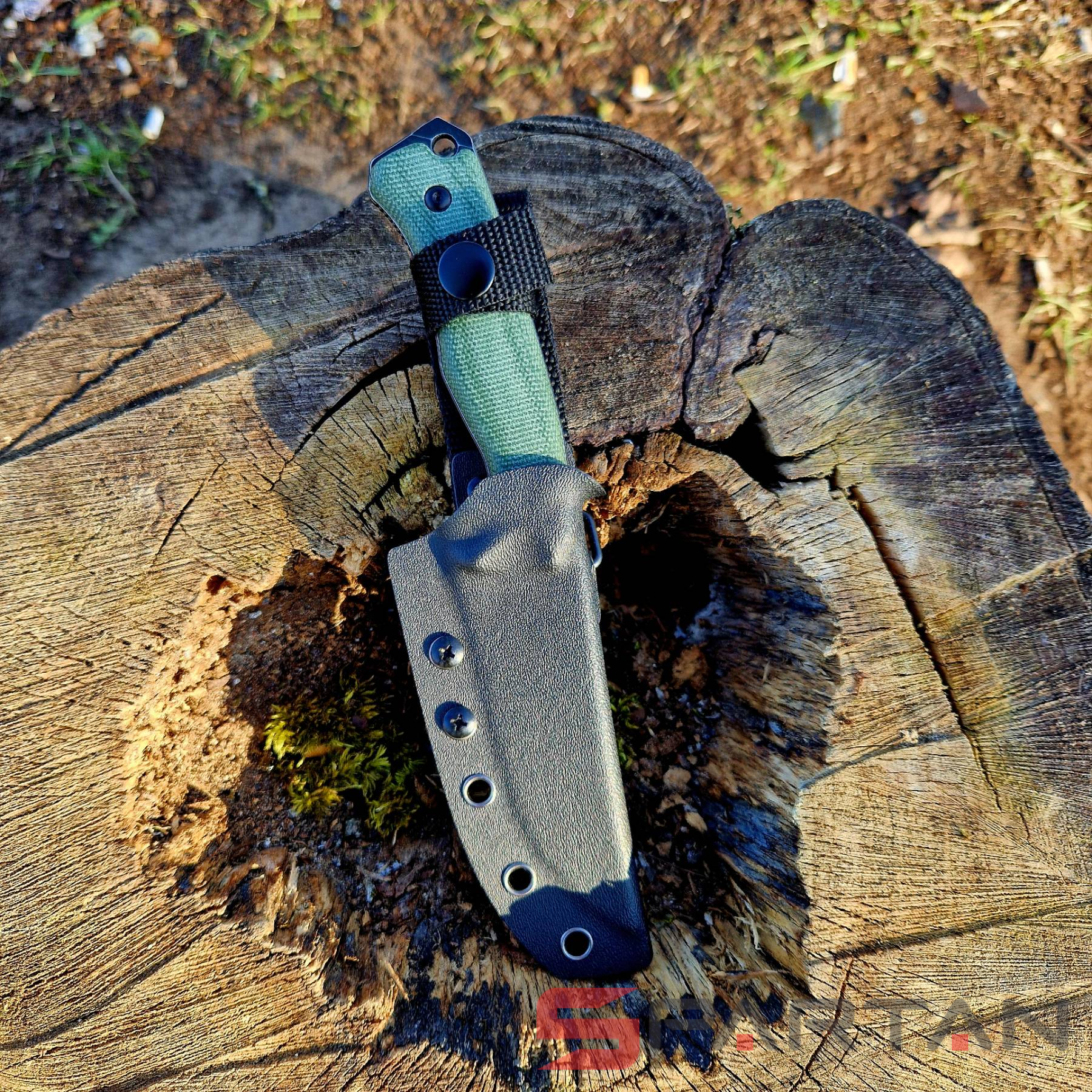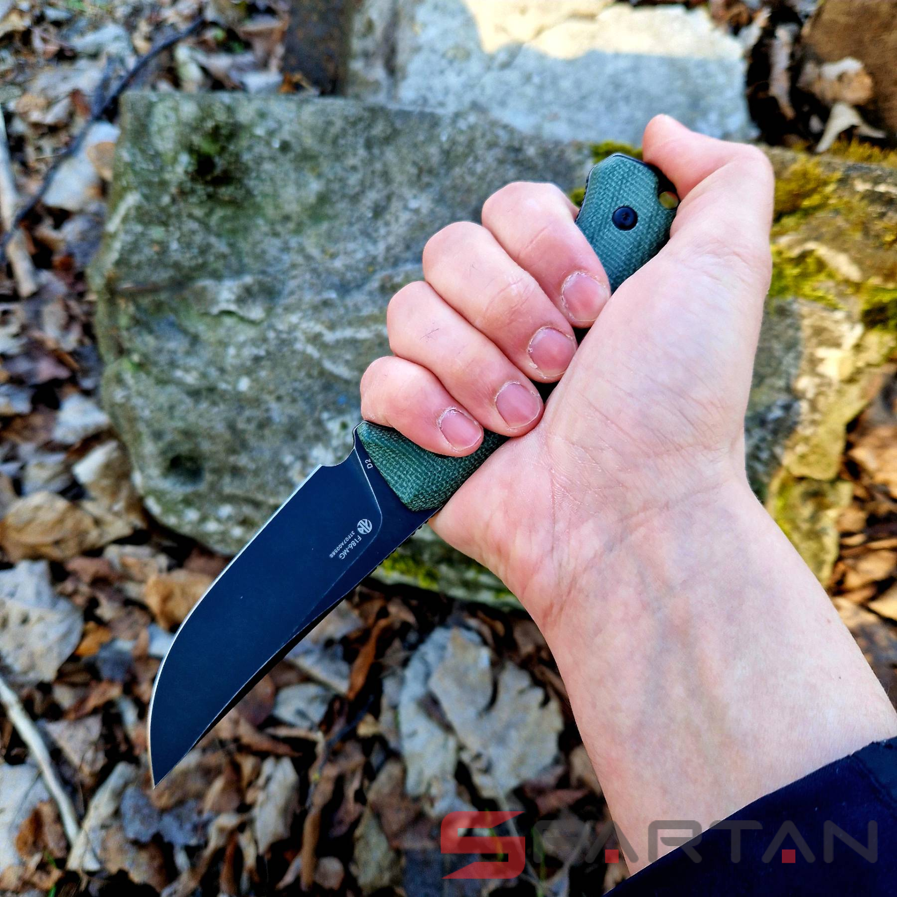 Современная интерпретация Пчака - традиционного ножа народов средней Азии. Широкий клинок с немного задранным кончиком, более узкая округлая рукоять, прекрасный баланс и превосходный рез. Конструкция цельнометаллическая (full tang), то есть клинок и хвостовик - единое целое. За основу взята американская инструментальная сталь D2 с защитной обработкой Black Stonewash. Накладки рукояти выполнены из зелёной микарты, в хвостовике предусмотрено темлячное отверстие. Нож уверенно фиксируется в ножнах, никакие дополнительные ремешки для фиксации не требуются (хотя они присутствуют). Для крепления на ремень (в вертикальном положении) предусмотрена петля из материала Cordura. Однозначно RUIKE F186-MG Green смело можно рекомендовать туристам, рыболовам, охотникам, путешественникам и любителям бушкрафта, как надёжный нож с прекрасным резом.
