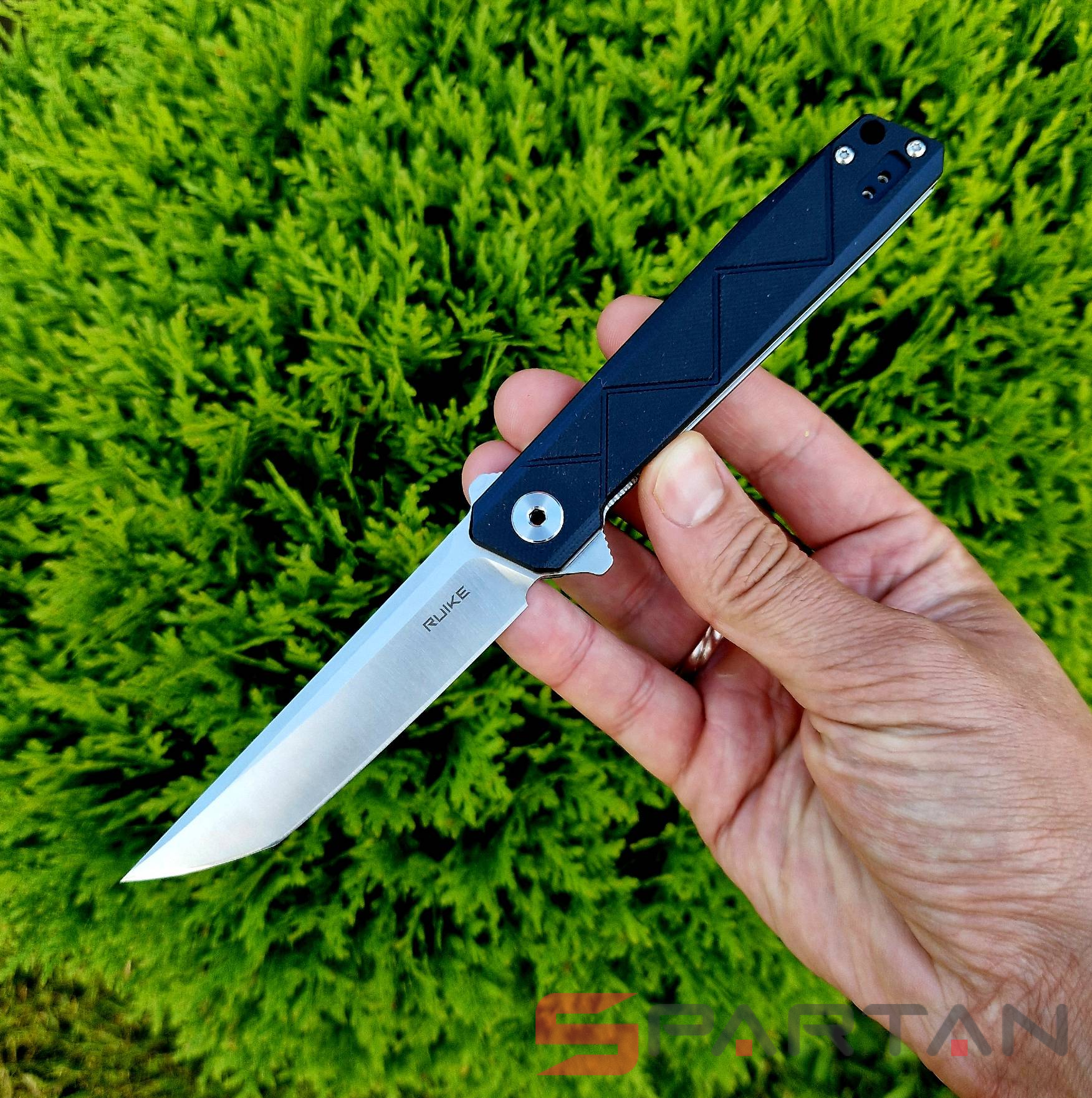 Стильный городской "тантоид" с утонченными формами, пушечной механикой и сравнительно небольшим весом. Нож запросто можно рекомендовать как мужчине, так и женщине. Благо флиппер на подшипниках и удобный замок Liner Lock не поставят в ступор даже совсем неопытного пользователя. Несмотря на такую "деловую" внешность RUIKE P127-B может показать "зубы" - рукоять заканчивается стальным стеклобоем, да и плавник флиппера в открытом виде превращается в серьёзную гарду, а уж хищная форма клинка так и провоцирует на укол. Клипса глубокой посадки делает RUIKE P127-B практически невидимым на кармане для окружающих. Несмотря на скромную стоимость нож очень качественно сделан, и имеет харизматичную внешность, чем сразу выделяется из линейки "одноклассников" от других производителей.
