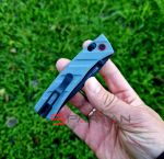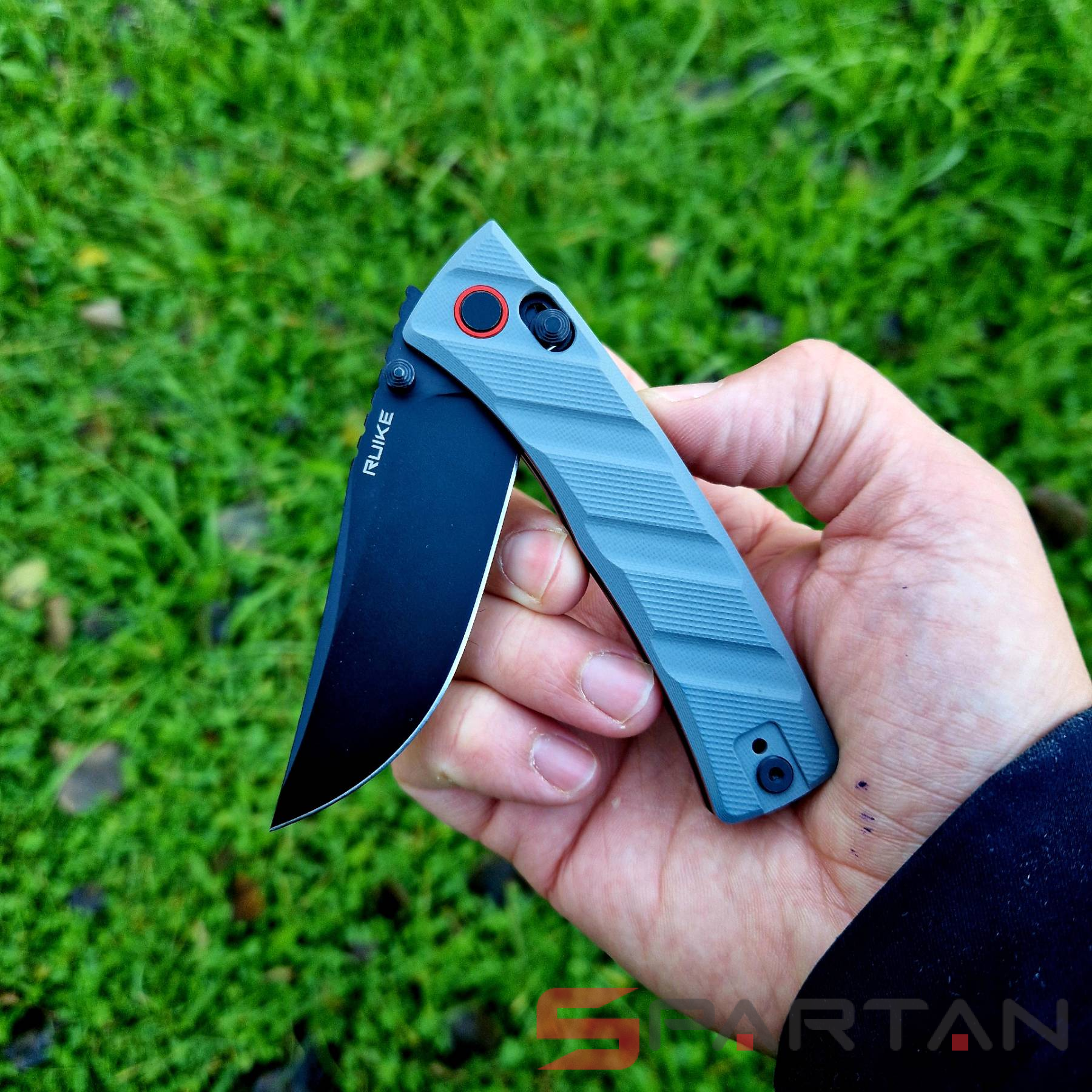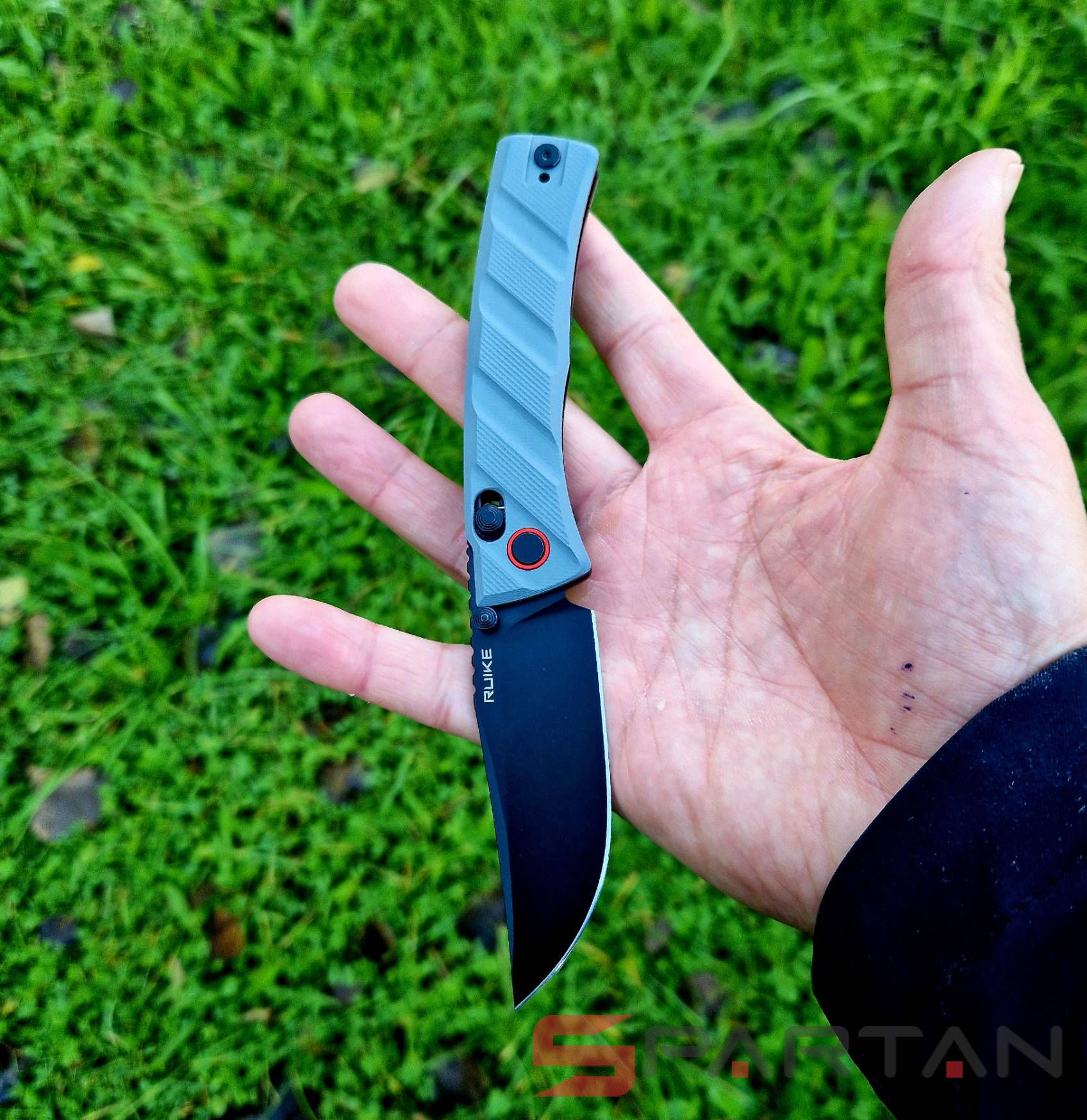 Особой похвалы заслуживает механика RUIKE P856-K. Благодаря подшипникам нож действительно просто летает. Такой сочный, чёткий и быстрый флип для ножей этой ценовой категории большая редкость. Рукоять открытого типа имеет стальную раму в основании и плашки из пластика G10 - очень удобна в использовании. Она надёжно и цепко удерживается даже мокрыми руками, к тому же даже при длительной работе ничего не наминает руку.