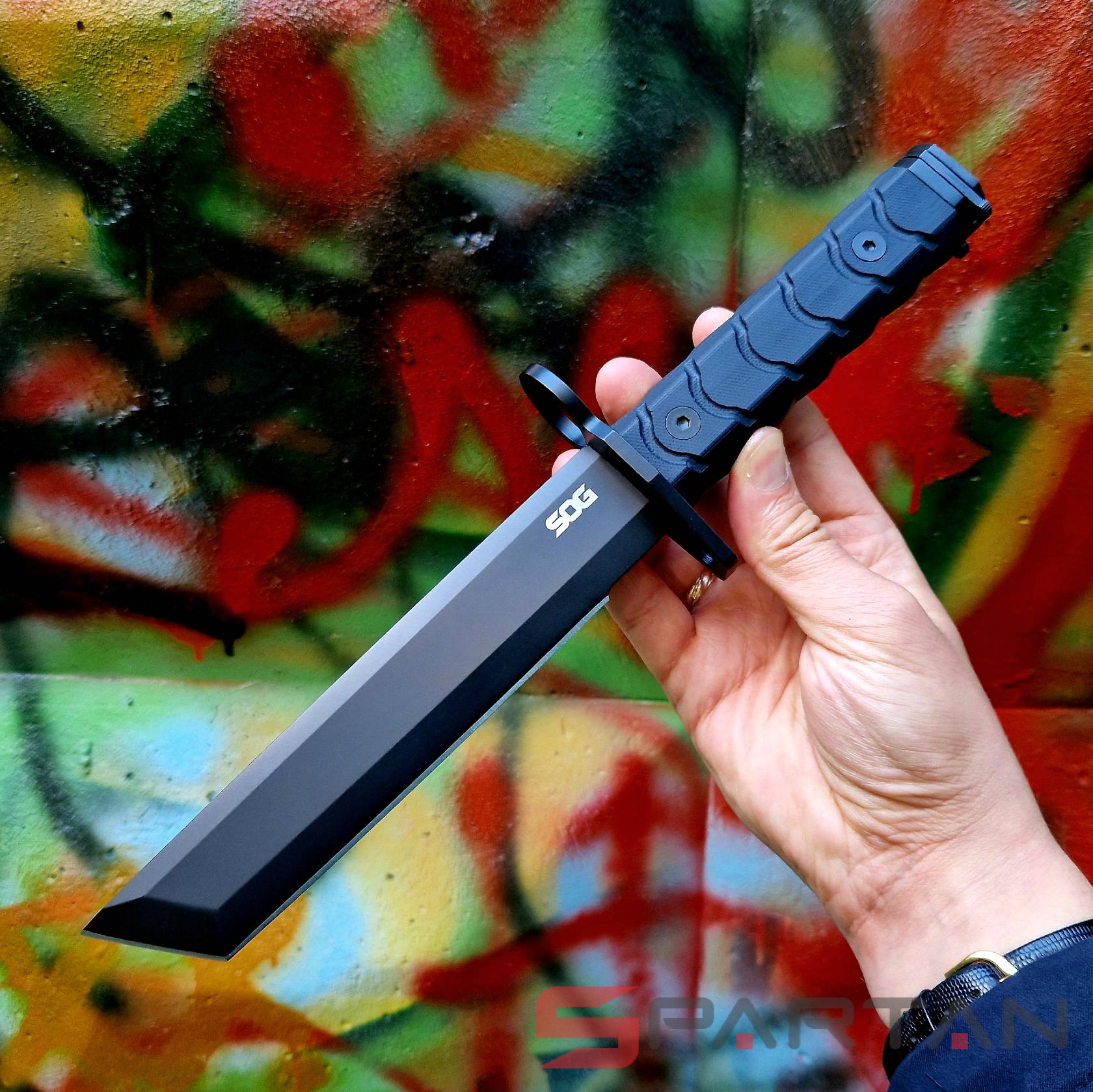 Могучий штык-нож со взрывным ВАУ-эффектом. Разработан ветеранами для ветеранов, действующих бойцов и просто тактических энтузиастов. Если вам требуется полевой нож с сумаcшедшим заделом прочности и надёжности, то это отличный вариант. Из-за большого веса в руках ощущается как монтировка, но приятно удивляет бритвенно острым клинком. 18-сантиметровый широченный клинок в форме танто изготовлен из японской стали AUS-8 и сверху имеет чёрное матовое PVD-покрытие. Округлая рукоять из рельефного G10 приятно ложится в ладонь и надёжно удерживается даже в перчатке или мокрой руке. Здоровенная стальная гарда надёжно обезопасит ваши пальцы. Нож имеет интегрированное крепление на ствол оружия совместимое с AR-платформами. В комплект входят добротные ножны из кайдекса с ремешком для дополнительной фиксации и подвесом на ремень. Этот могучий нож обязательно пригодится в хозяйстве каждого мужчины: на рыбалке, на охоте, в походе.