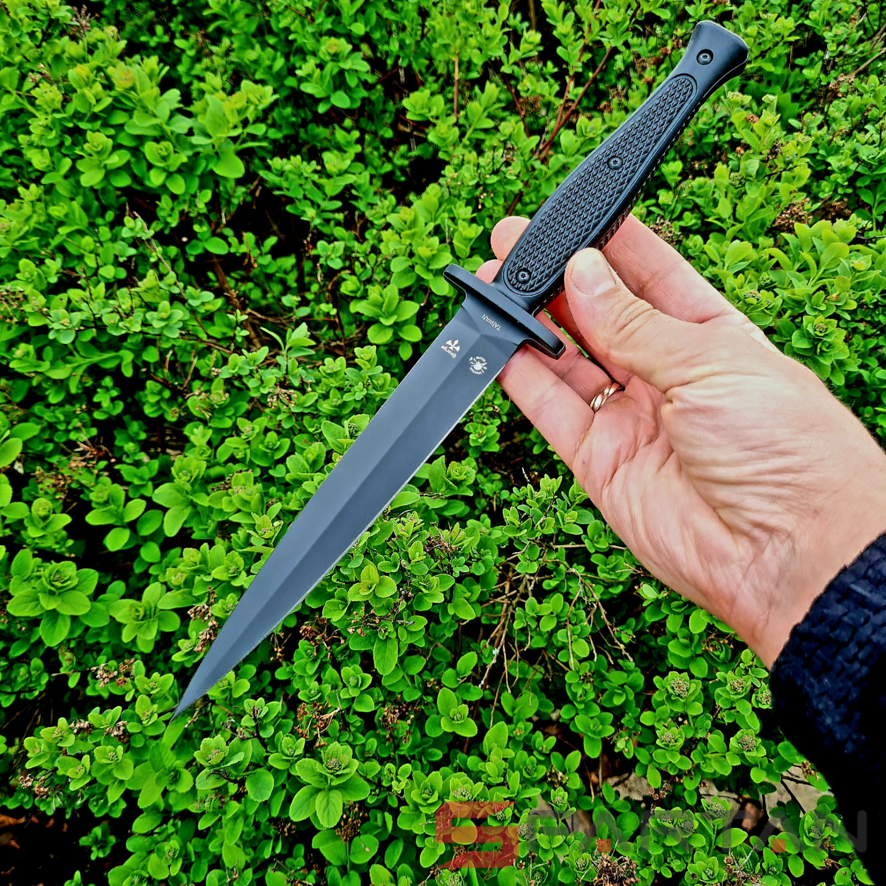 Кинжал имеет конструкцию full tang, то есть изготовлен из цельнометаллического куска стали толщиной 5 mm. Ножи такой конструкции небезосновательно считаются самыми прочными и долговечными. Клинок имеет классическую кинжальную геометрию и разумеется как и полагается кинжалу клинок обоюдоострый.