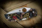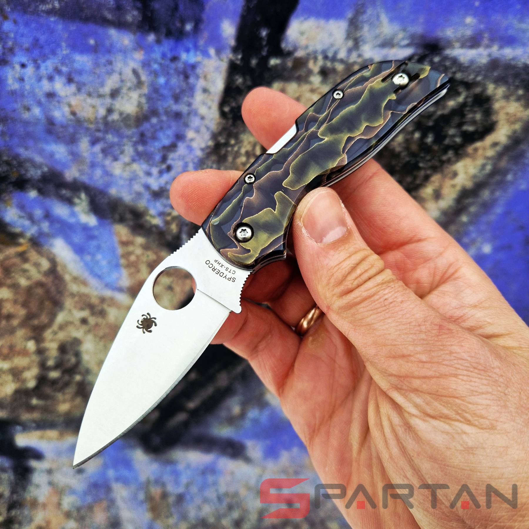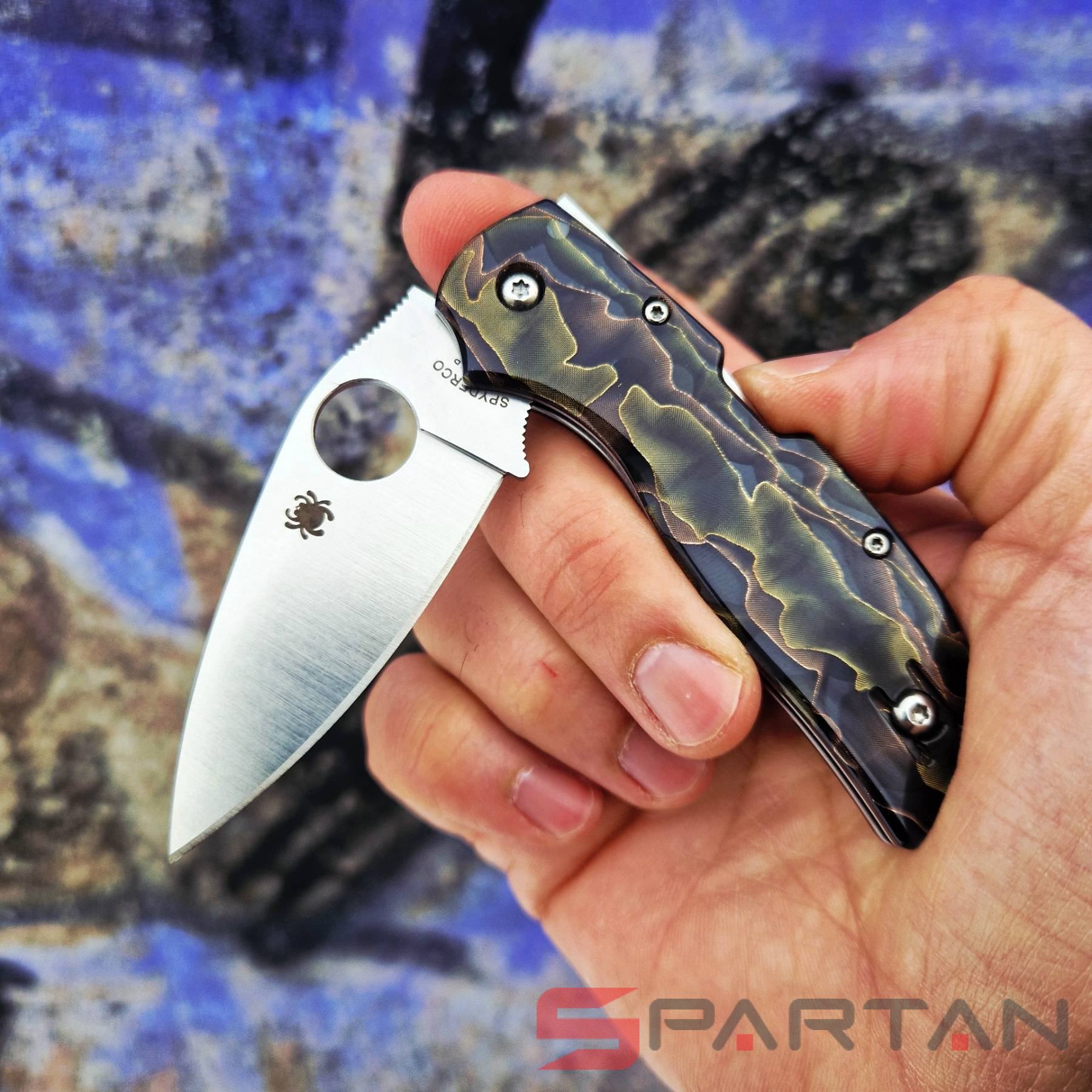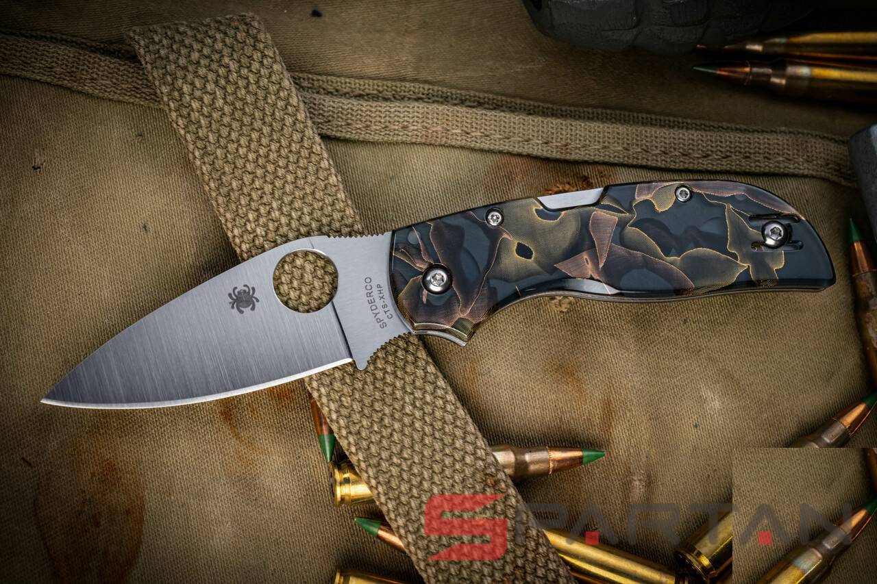 Главная особенность Spyderco Chaparral это конечно накладки из композитного материала Raffir Noble. Это прозрачный полимер с инкрустацией латунной сетки, создающей эффект глубины и объёма. Рукоять играет на свету и выглядит как дизайнерский аксессуар, оставаясь при этом прочной и устойчивой к влаге. Каждый нож имеет индивидуальный рисунок - двух абсолютно одинаковых экземпляров не существует.