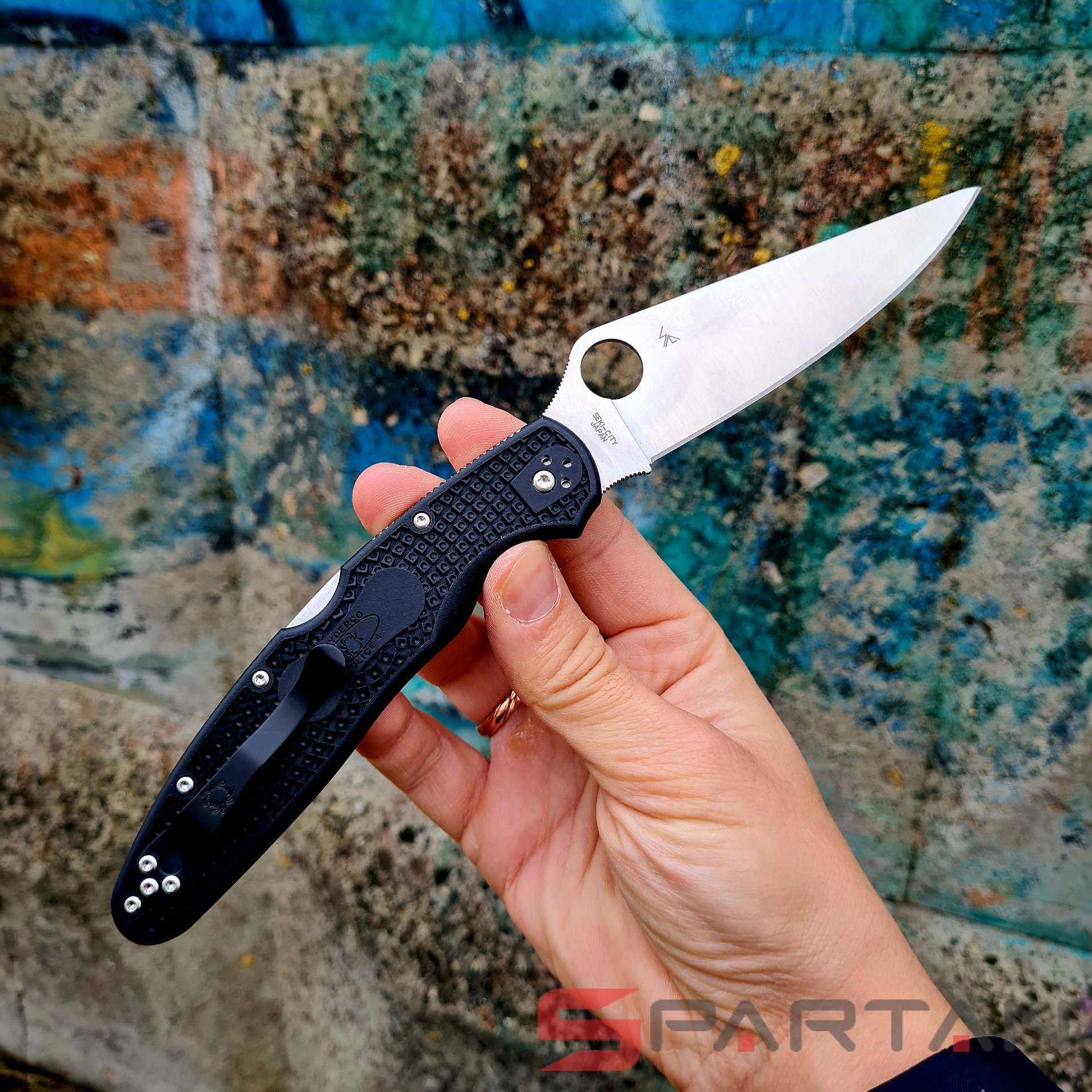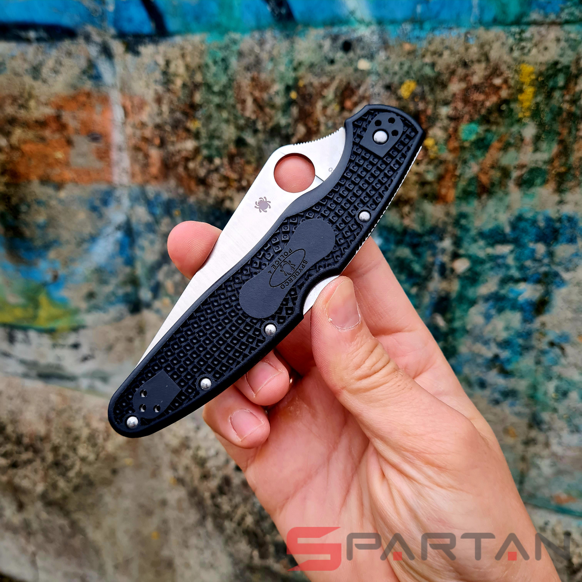 Огромный, но очень лёгкий резак, с японской сталью VG-10, надёжным замком Back Lock и рукояткой из термопластика FRN. Шутка ли, в разложенном состоянии длина Police 4 Lightweight - 25 см! Но при этом нож весит смешные 120 граммов, и очень удобен при работе самыми разными хватами. Нож ложится в руку как влитой, накладки из термопластика FRN очень цепкие, а на обухе и снизу перед началом режущей кромки, предусмотрены специальные насечки для упоров пальцами. Естественно режет Police 4 - БЕЗУМНО КРУТО! Колюще-проникающие способности также на высоте. Эта модель крупнее, чем легендарная Military, но значительно дешевле, и с куда более надёжным замком.