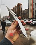 Живая классика, Mercedes Гелендваген в мире ножей ;). Шутка ли, модель производится с 1984 года! Нож жутко харизматичный и известный по многим кинофильмам. Изначально создавался для сотрудников полиции, отсюда и название. Плоский, лёгкий, с узким и длинным клинком нож отлично подходит для скрытого ношения. При этом демонстрируя сумасшедший агрессивный рез, и превосходные колюще-проникающие способности. Клипса переставляется на любую из четырех сторон стальной рукояти. На клинке японская сталь VG-10, обладающая высокой устойчивостью к коррозии, и способностью удерживать "бритвенную" заточку очень длительное время. Всё это "приправлено" надёжным и проверенным временем замком Back Lock. Настоящий ножеман просто обязан иметь в своей коллекции эту знаковую модель...