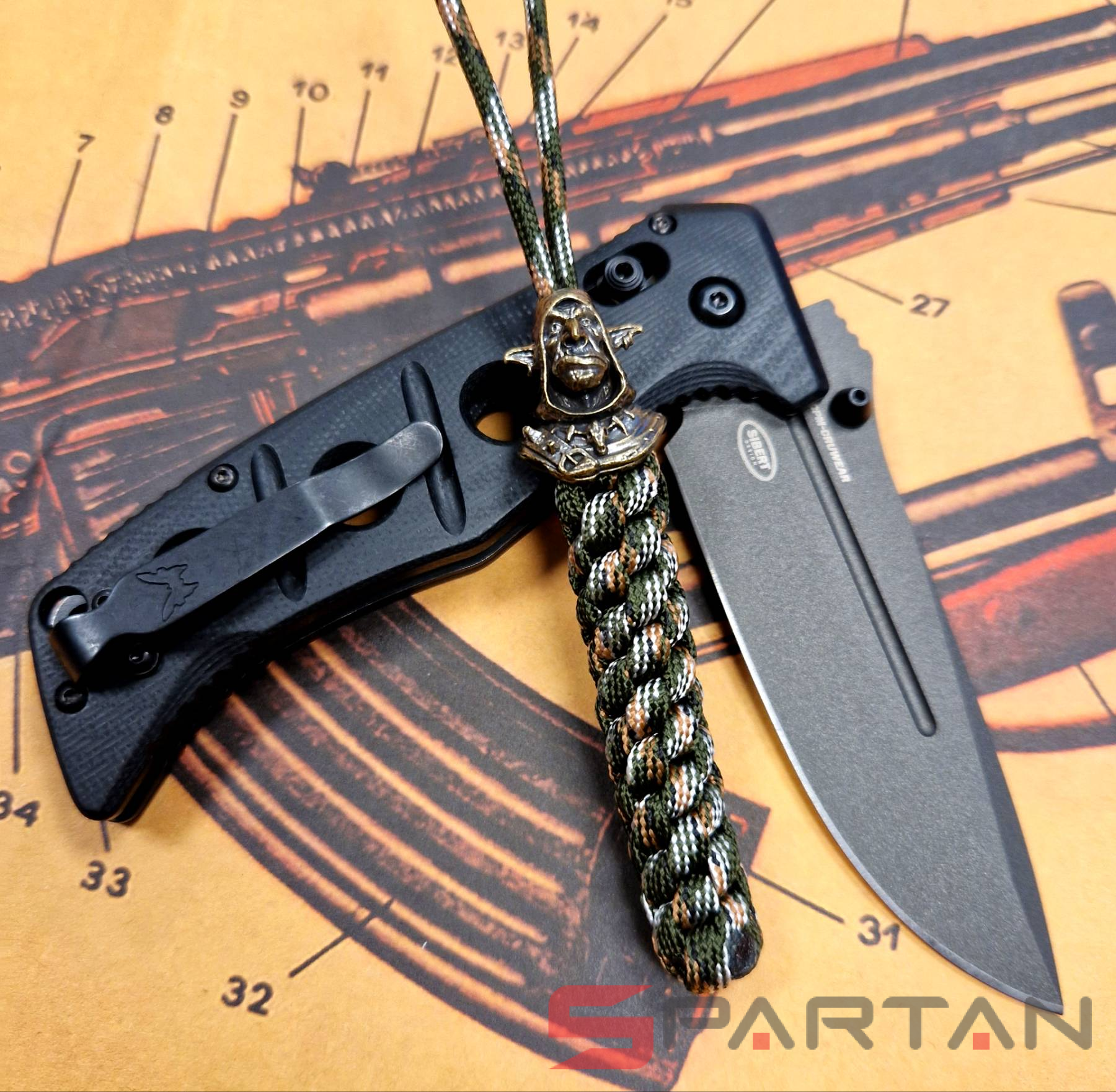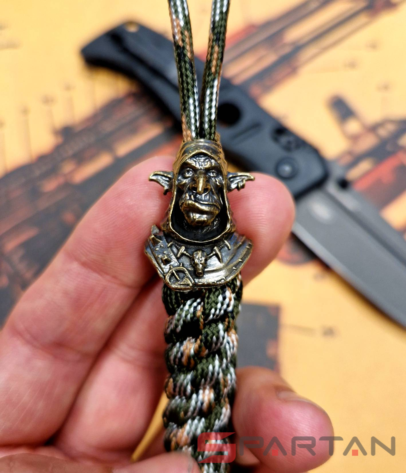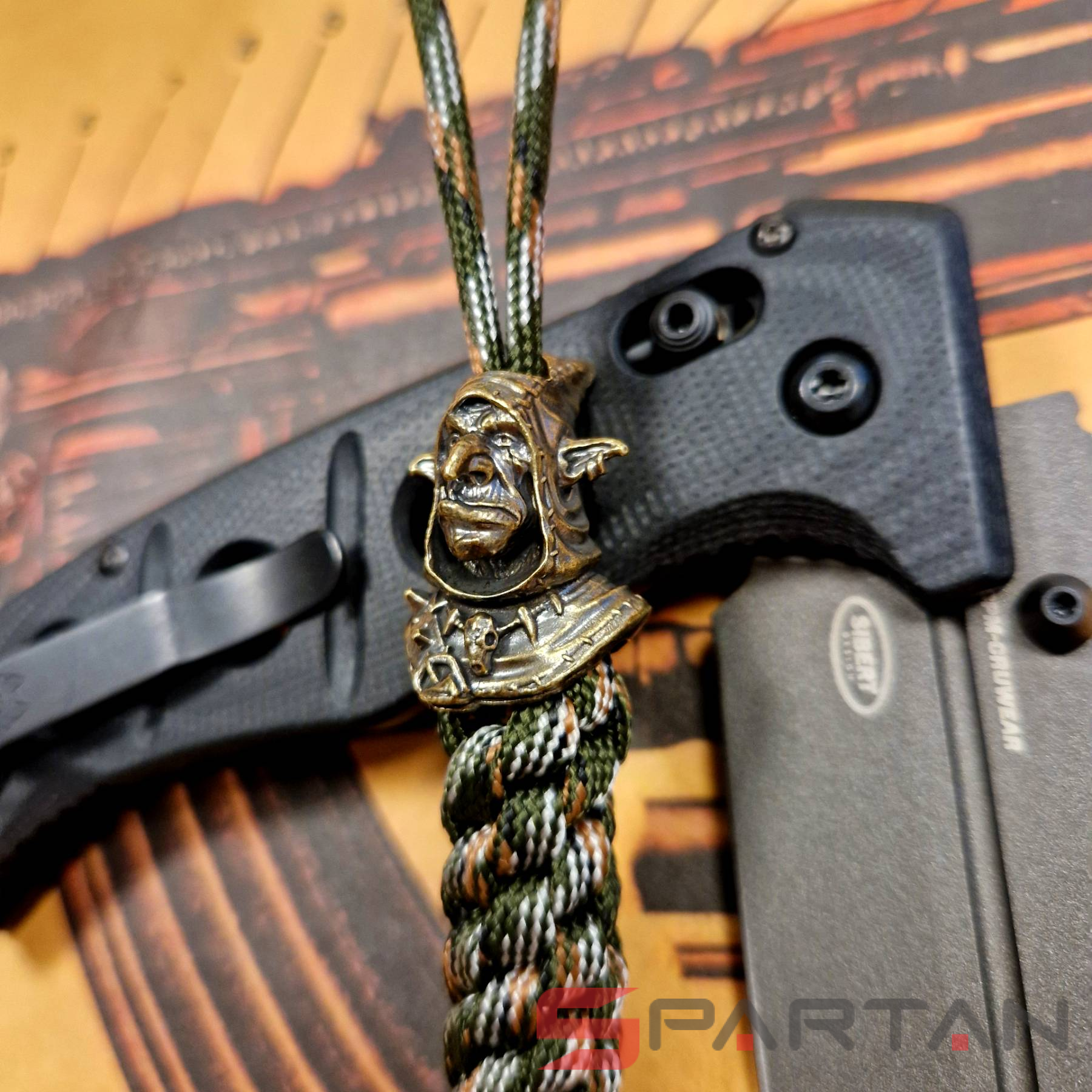 Стильный и оригинальный темляк из паракорда. Бусина из латуни в виде головы Гоблина. Предназначен для подвеса на нож, для более удобного и быстрого его извлечения из кармана или ножен. Кроме того, увеличивает надёжность удержания ножа в руке. Стильный аксессуар также частенько используют в качестве брелка для ключей, сумки, фонаря. Полностью ручная работа, существует в единственном экземпляре. Модная тема среди любителей EDC-ножеманов.