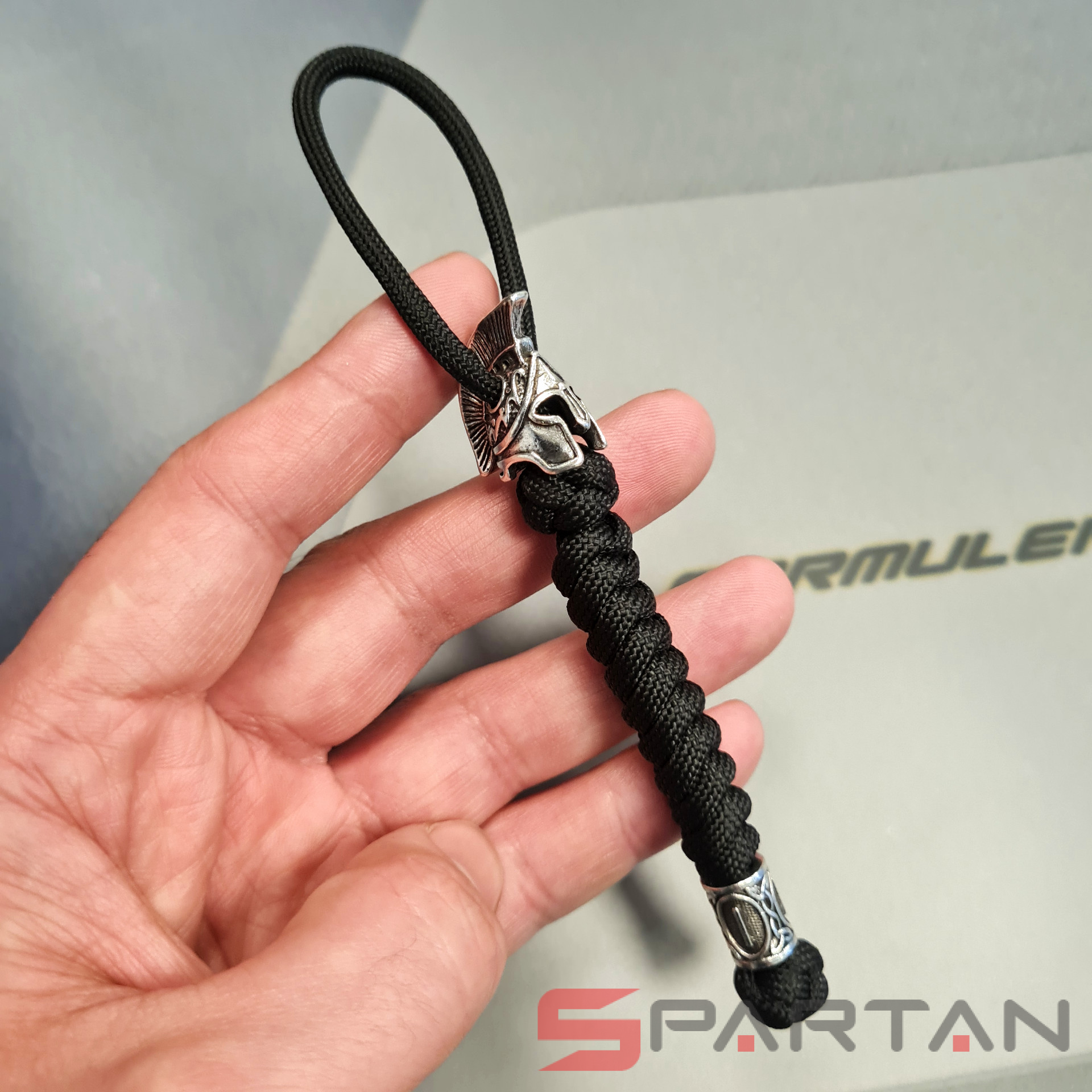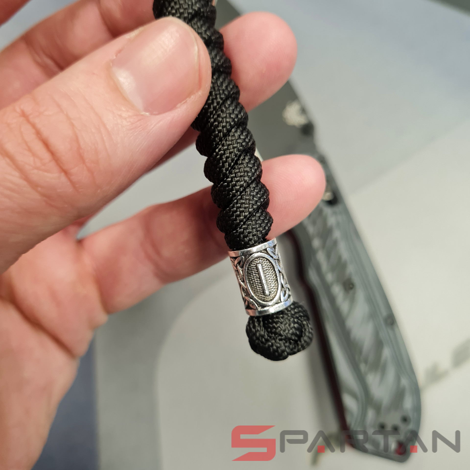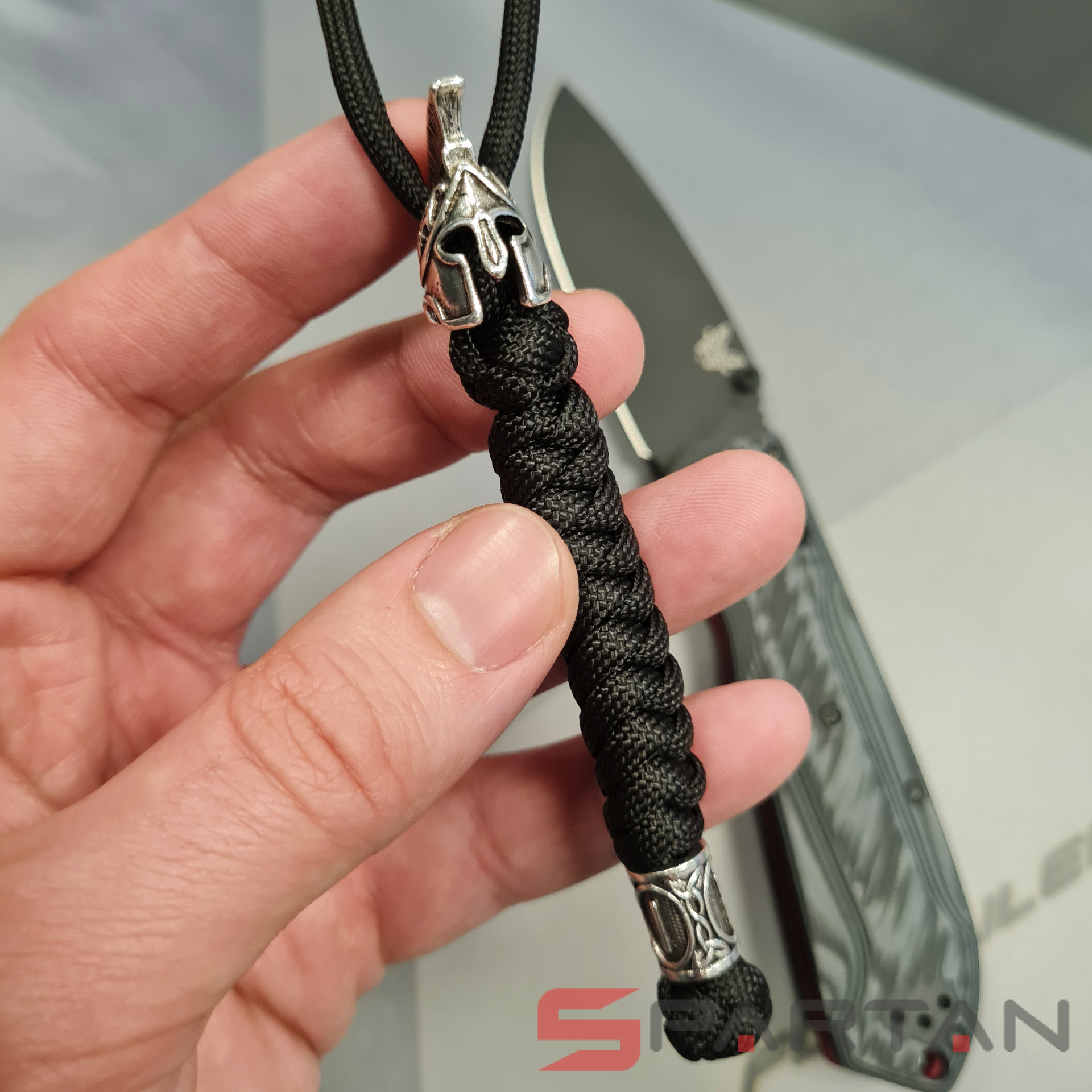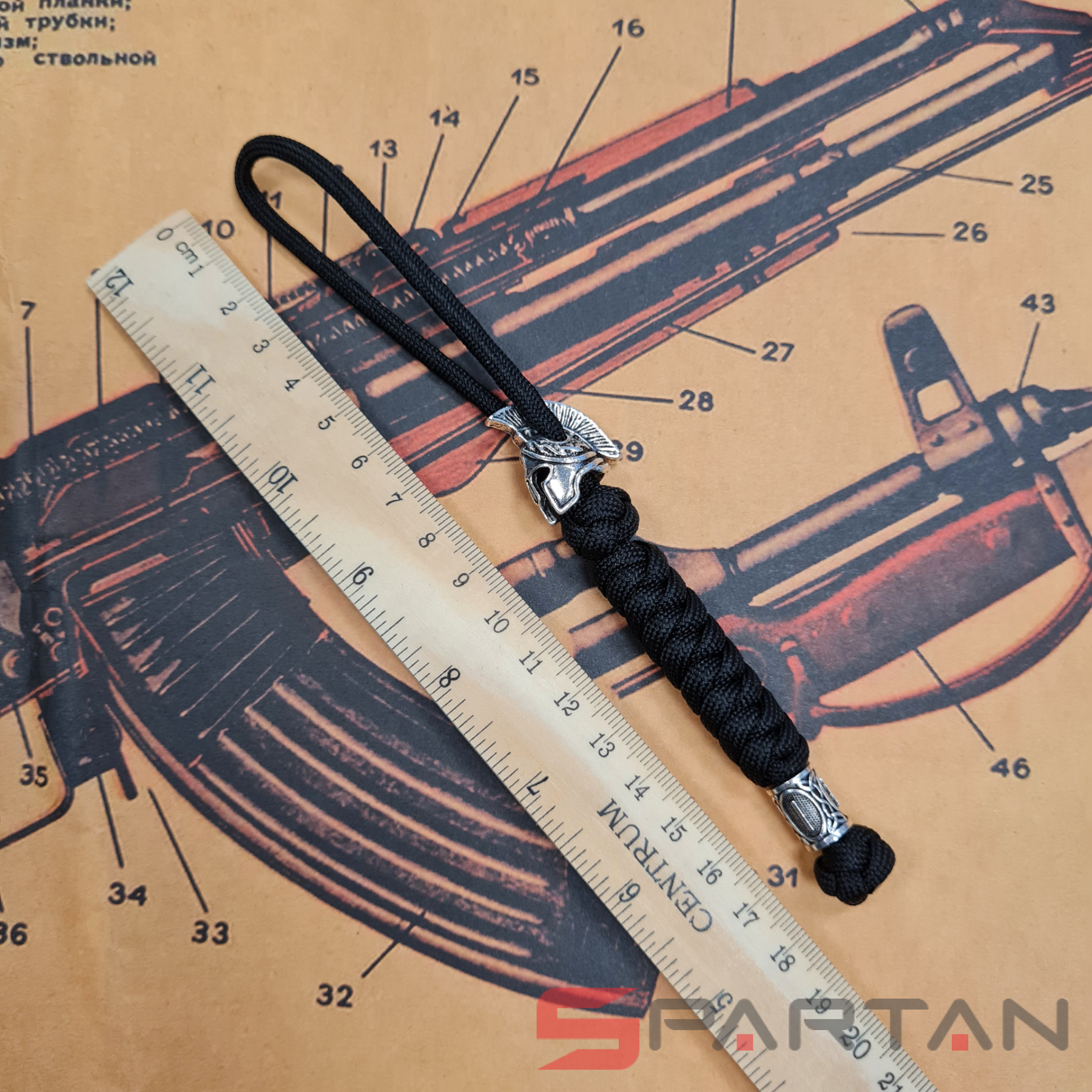 Стильный и оригинальный темляк из паракорда. Бусины из латуни в виде боевого шлема спартанцев и руны Иса, которая указывает на то, что впереди вас ждет благоприятный период. Предназначен для подвеса на нож, для более удобного и быстрого его извлечения из кармана или ножен. Кроме того, увеличивает надёжность удержания ножа в руке. Стильный аксессуар также частенько используют в качестве брелка для ключей, сумки, фонаря. Полностью ручная работа, существует в единственном экземпляре. Модная тема среди любителей EDC-ножеманов.