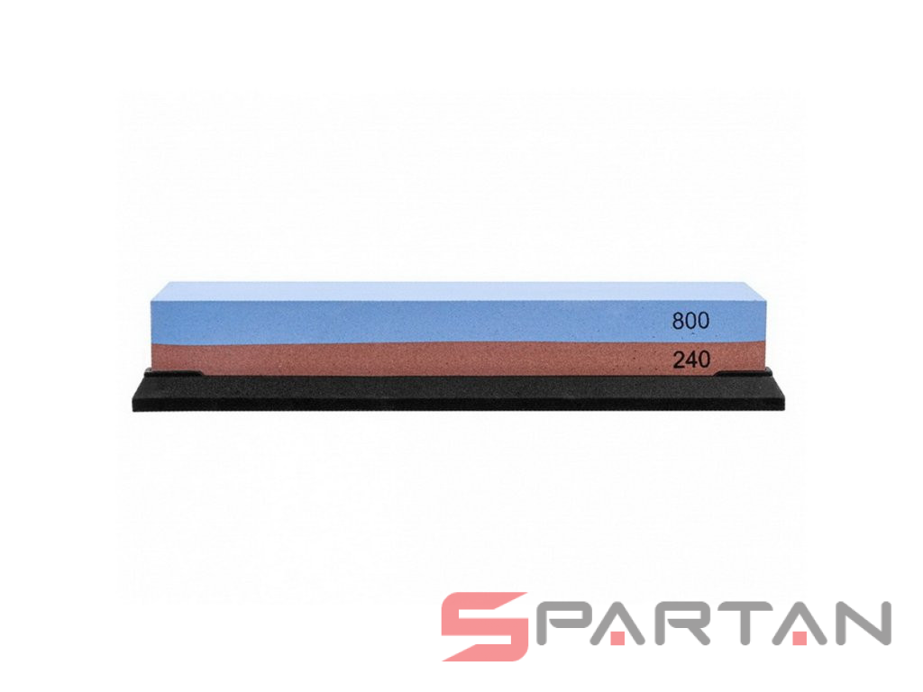 Настольный водный точильный камень изготовленный из корунда, имеющий двойную зернистость: 240 и 800 грит. С его помощью можно восстановить и сгладить кромку клинка, а также придать надлежащую остроту. В комплект входит резиновая подставка, которая предотвращает скольжение камня во время заточки. Перед началом использования камень необходимо замочить в воде на 10-15 минут (пока из него не перестанут выходить пузырьки воздуха).