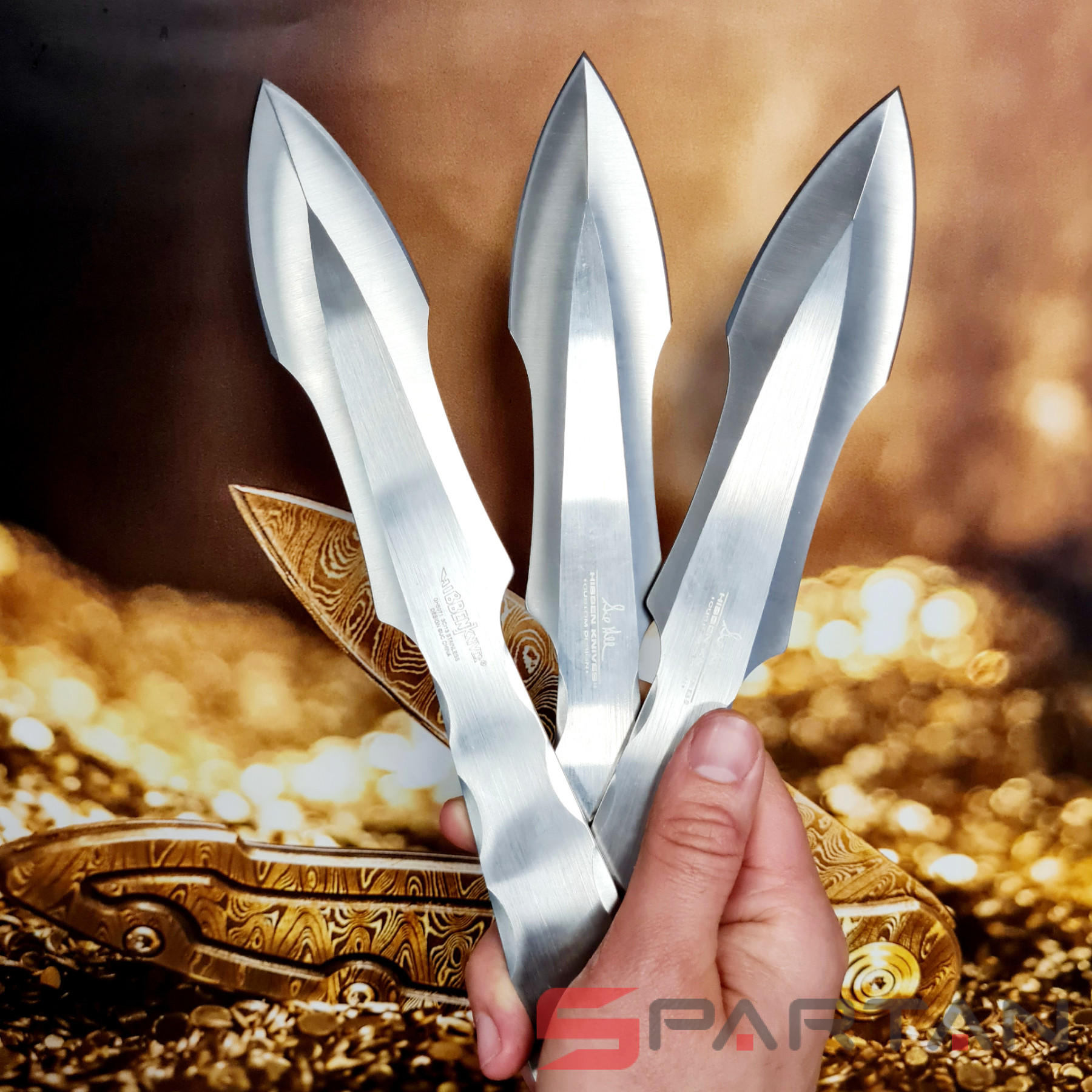 Набор могучих метательных ножей созданных компанией United Cutlery совместно с именитым американским ножеделом - Гилом Хиббеном (Gil Hibben), опыт которого составляет более 70 лет (!). Каждый нож цельнометаллический, изготовлен из куска стали 3Cr13, форма клинка подобрана идеальная для метания. Ножи отлично сбалансированы, имеют специальные врезки для лучшего удержания при замахе. Как и полагается метательному ножу - Gen III не заточены. Ножи очень крупные и достаточно тяжёлые (237 граммов каждый). Гил Хиббен уверяет, что этот набор отлично подойдет как для профессионалов, так и просто любителей пометать ножи. В набор входит 3 ножа и нейлоновые ножны с подвесом на поясной ремень.