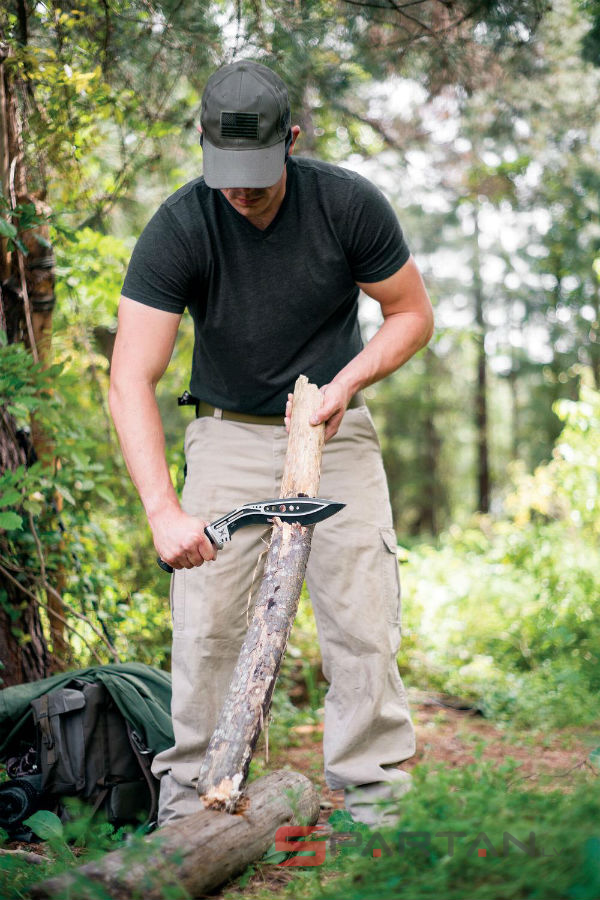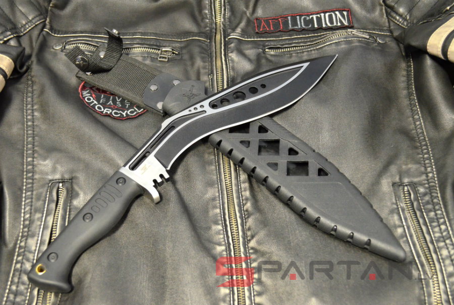 Этот злой тактический кукри, одним своим внешним видом внушает ужас противнику. Благодаря относительно невысокой стоимости, United Cutlery M48 Tactical KUKRI смело можно рекомендовать как походный заменитель тесака и топора. Им запросто можно нарубить веток для костра, прорубиться сквозь заросли, заострить колышки для навеса/палатки, ну и разумеется отбиться от врагов ;). Собственно именно так производитель его и позиционирует: Perfect in Combat or Camping. В комплект входят ножны из TPR-пластика, с подвесом на пояс. На рукоятке имеется ярковыраженная гарда, так что во время разящих ударов, можно быть спокойным за собственные пальцы. Кукри позволяет наносить как режущие, так и рубящие, колющие удары.