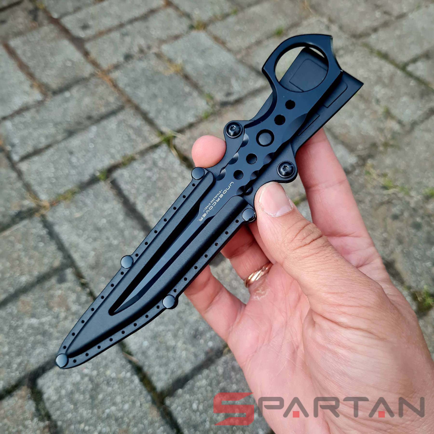 Нож скрытого ношения с длинным узким клинком создан для тех кто предпочитает быть готовым к любой ситуации и чувствовать себя при этом максимально уверенно. Эта модель имеет свой стальной характер и агрессивную харизму. В окончании рукояти есть кольцо, которое обеспечивает жесткую фиксацию ножа - его невозможно выбить из руки. Stinger II имеет цельнометаллическую конструкцию с выраженными упорами и подпальцевыми выемками, так что удержание ножа в руке действительно очень надёжное. Нож целиком окрашен в чёрный цвет что делает его ещё более незаметным и "злым". Ножны выполнены из нейлона, обладают повышенными прочностными характеристиками и адаптированы для размещения не только на кармане (клипса), но и на высоких ботинках/сапогах или в произвольном месте на снаряжении. В целом у United Cutlery получился аналог Benchmade SOCP, c более простыми ножнами, но почти в 3 раза дешевле...