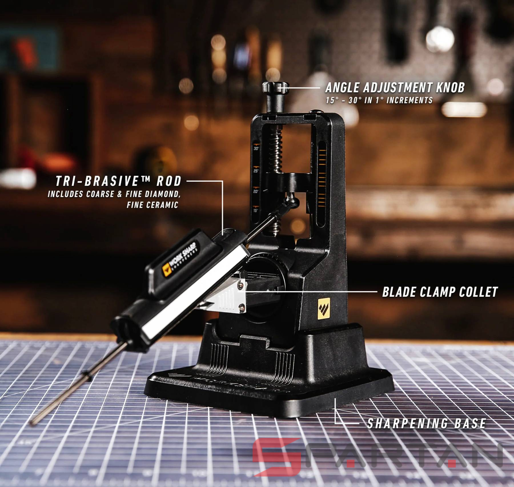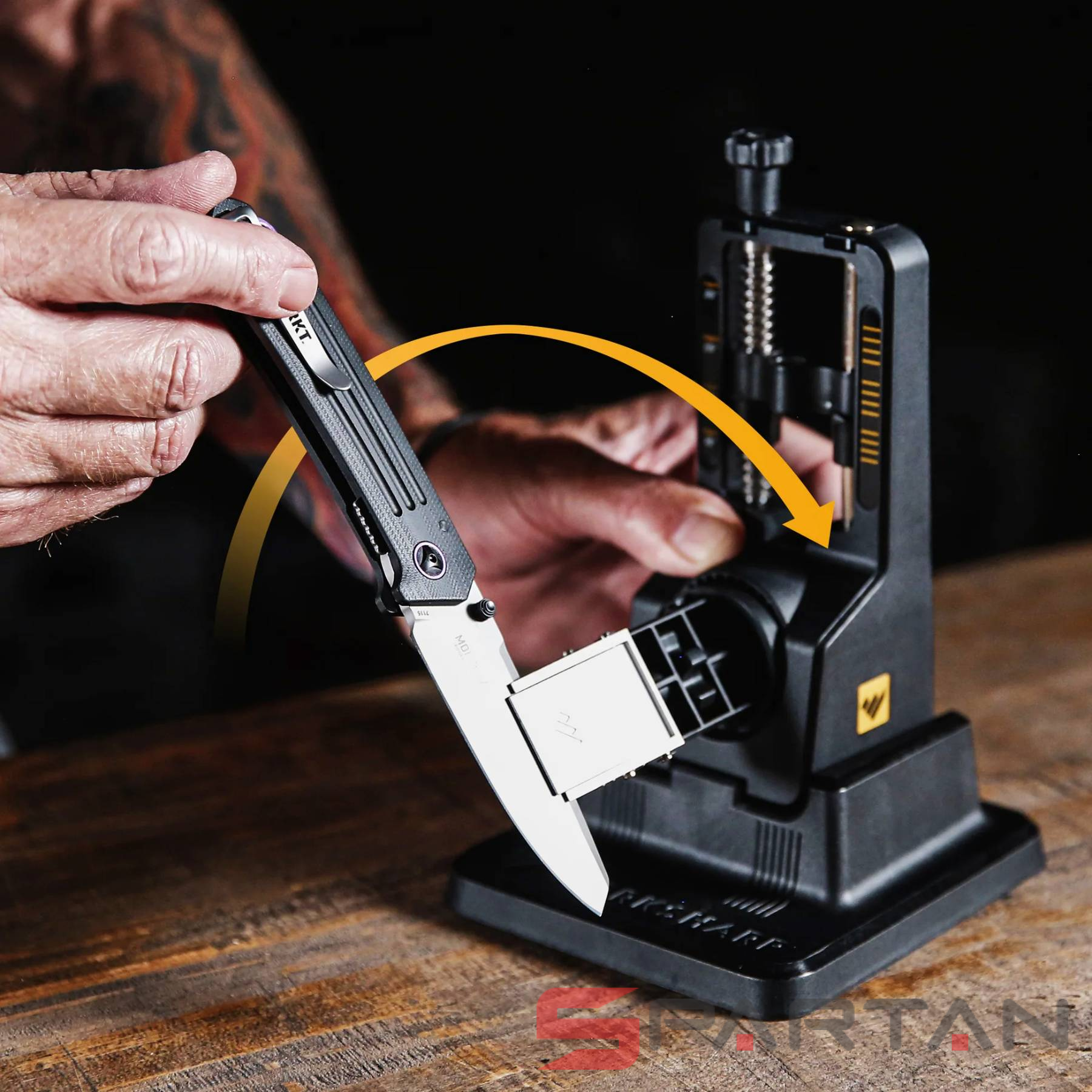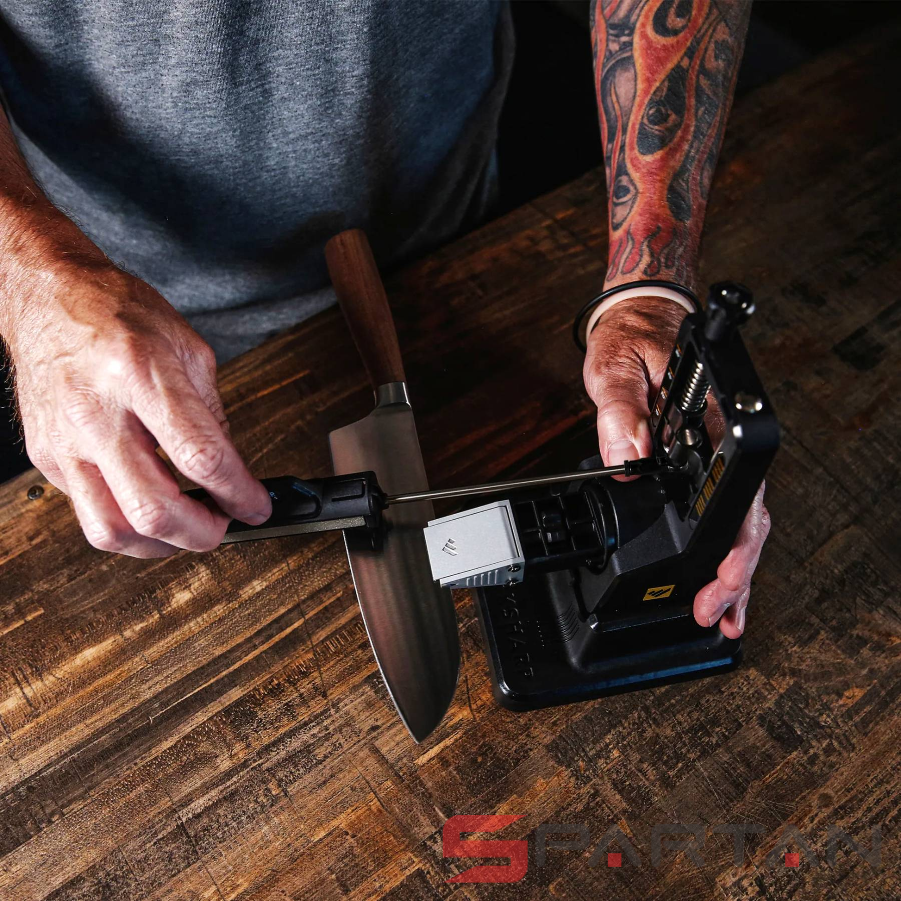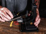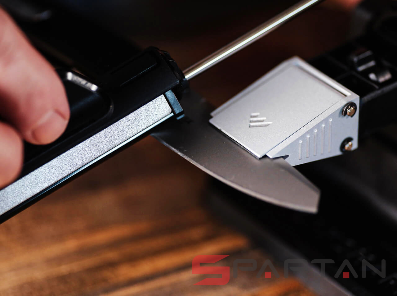 Данная американская точильная система по праву заслужила свою популярность: она достаточно проста в использовании, неприхотлива, компактна и совсем недорогая. С её помощью можно затачивать ножи самых разных типов (карманные складни, небольшие охотничьи, туристические, кухонные). Присутствует поворотный держатель клинка, возможность быстрого и точного выбора угла заточки (от 15 до 30 градусов), штанга с тремя встроенными камнями (320 и 600 grit алмазные, Fine керамический). Каждый из камней выполняет свою функцию, от экстра-грубой заточки до шлифования режущей кромки. Даже совсем неопытные пользователи смогут освоить данный станок очень быстро и добиваться приличных результатов в заточке - и это несмотря на столь скромную стоимость.