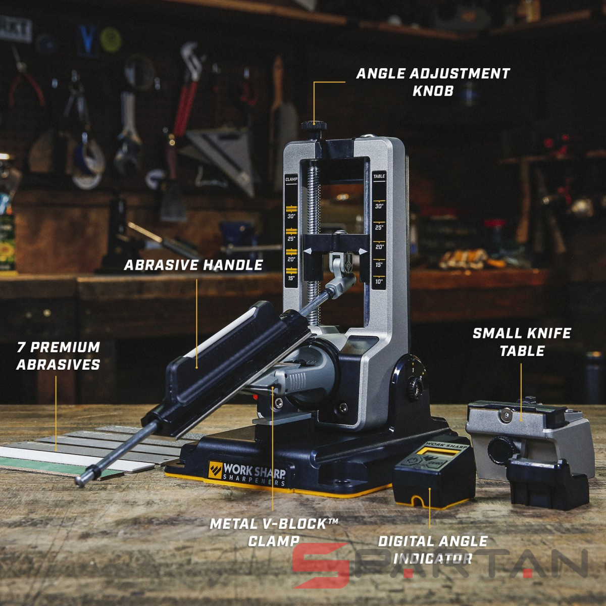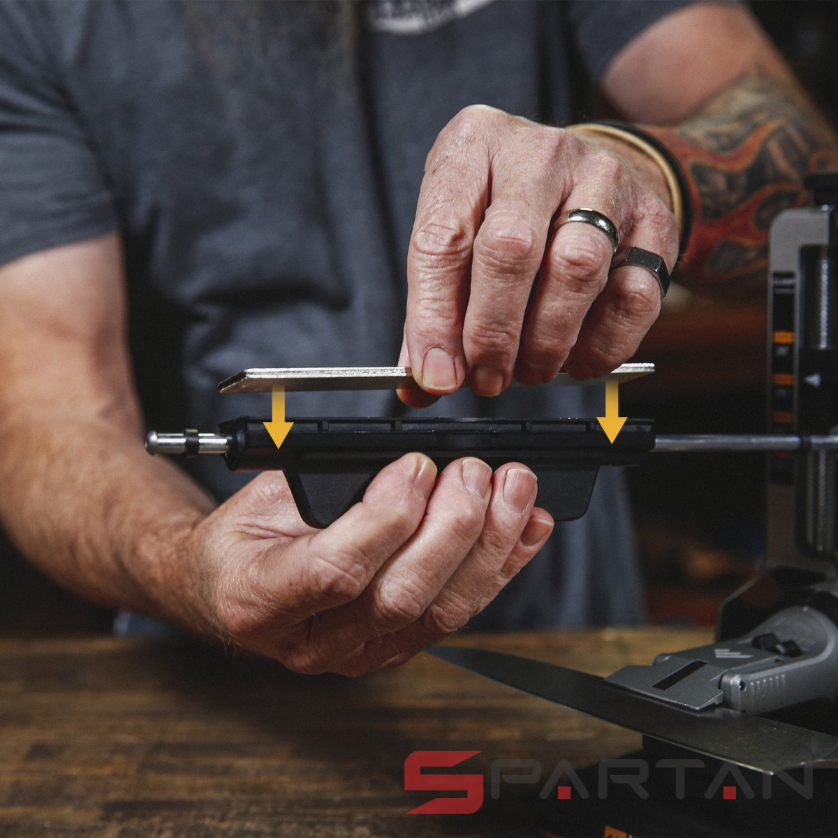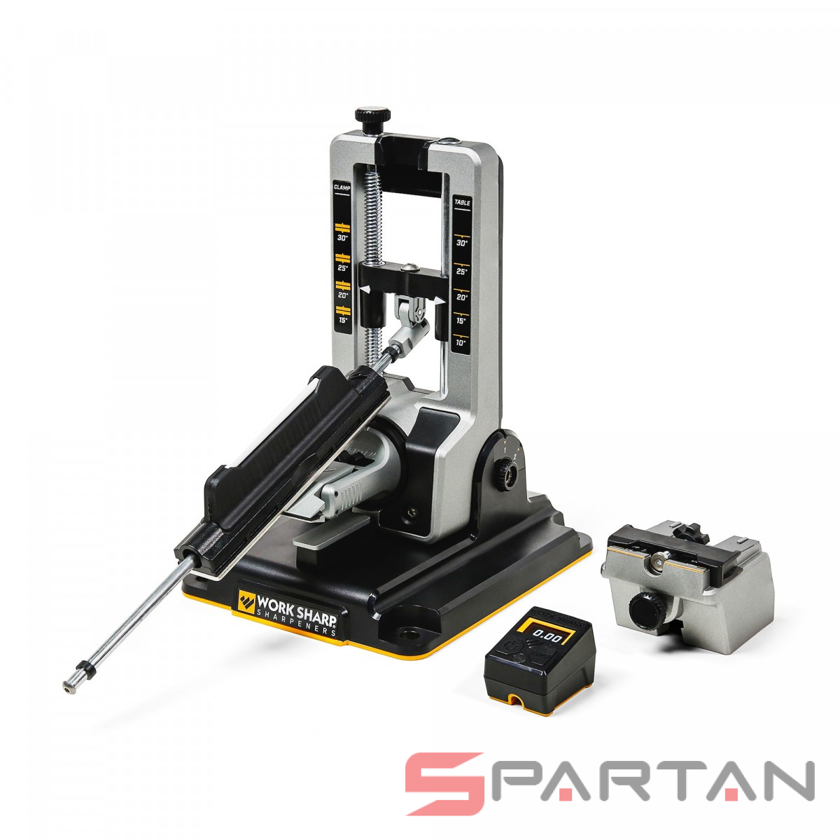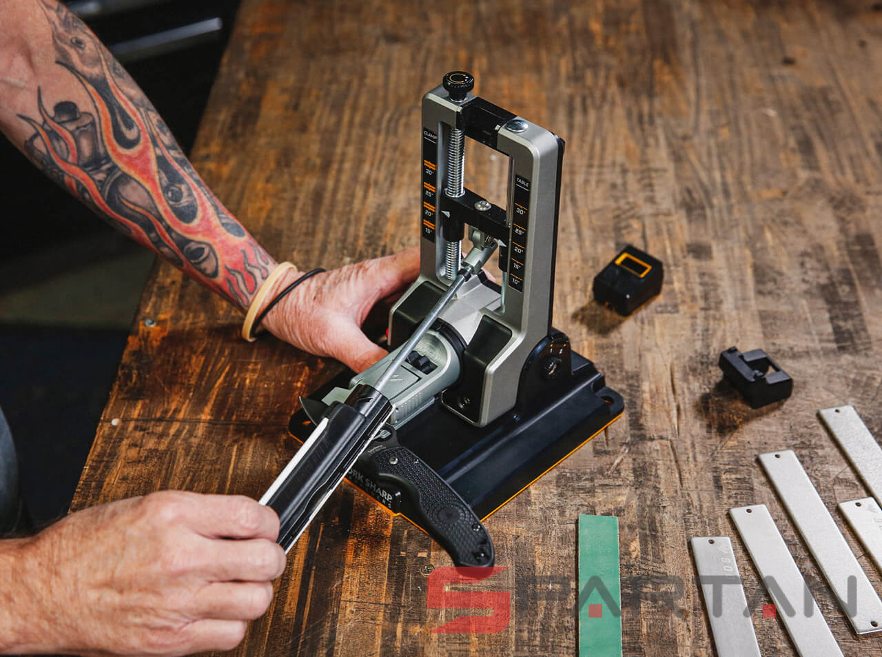 Флагманская модель точильной системы от американского производителя. Система очень проста и удобна в использовании, с её помощью можно действительно качественно затачивать самые разнообразные ножи: от карманных edc-ножичков до могучих "охотников", кухонников и утилитарных "туристов". Комплектный набор алмазных камней разнообразен и включаёт в себя даже такую "экзотику" как кожаный ремень для полировки клинка в зеркало. Поворотная система крепления ножа, электронный угломер, возможность выбора угла в пределах от 15 до 30 градусов, керамический мусат для серейтерных клинков и масса других приятностей. Определённо система способна подвинуть с пьедестала легендарную, но уж очень древнюю Apex Edge Pro и побороться за звание "лучшей в мире". Кстати этот титул она уже получила в этом году на ножевой выставке Blade Show 2023.