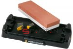Водные точильные камни отличаются от прочих тем, что перед использованием их необходимо замачивать в воде на некоторое время (от пяти до двадцати минут, в зависимости от твердости камня). Зачем это делается? При работе с сухим камнем его поры довольно быстро забиваются отработанным металлом, точнее, металлическим порошком. В результате поверхность камня становится гладкой и теряет свои абразивные свойства. На поверхности же мокрого камня в процессе заточки образуется своеобразная суспензия из каменной крошки и металлического порошка. Ее ни в коем случае не следует стирать, так как именно она обеспечивает высокое качество заточки лезвия.