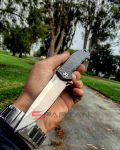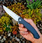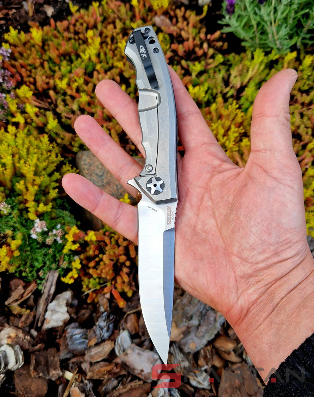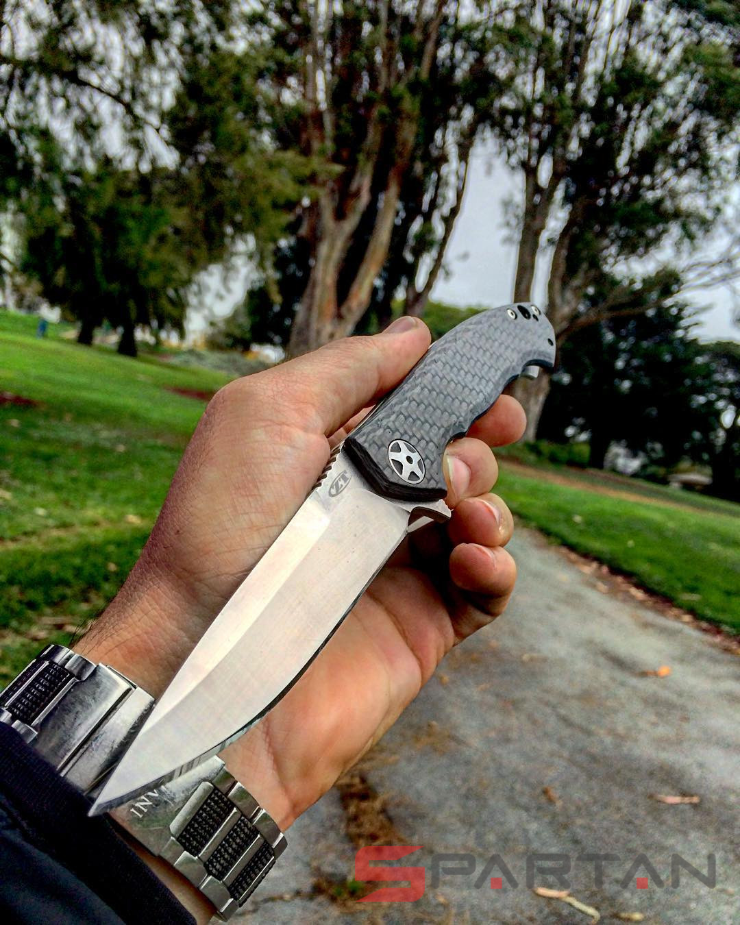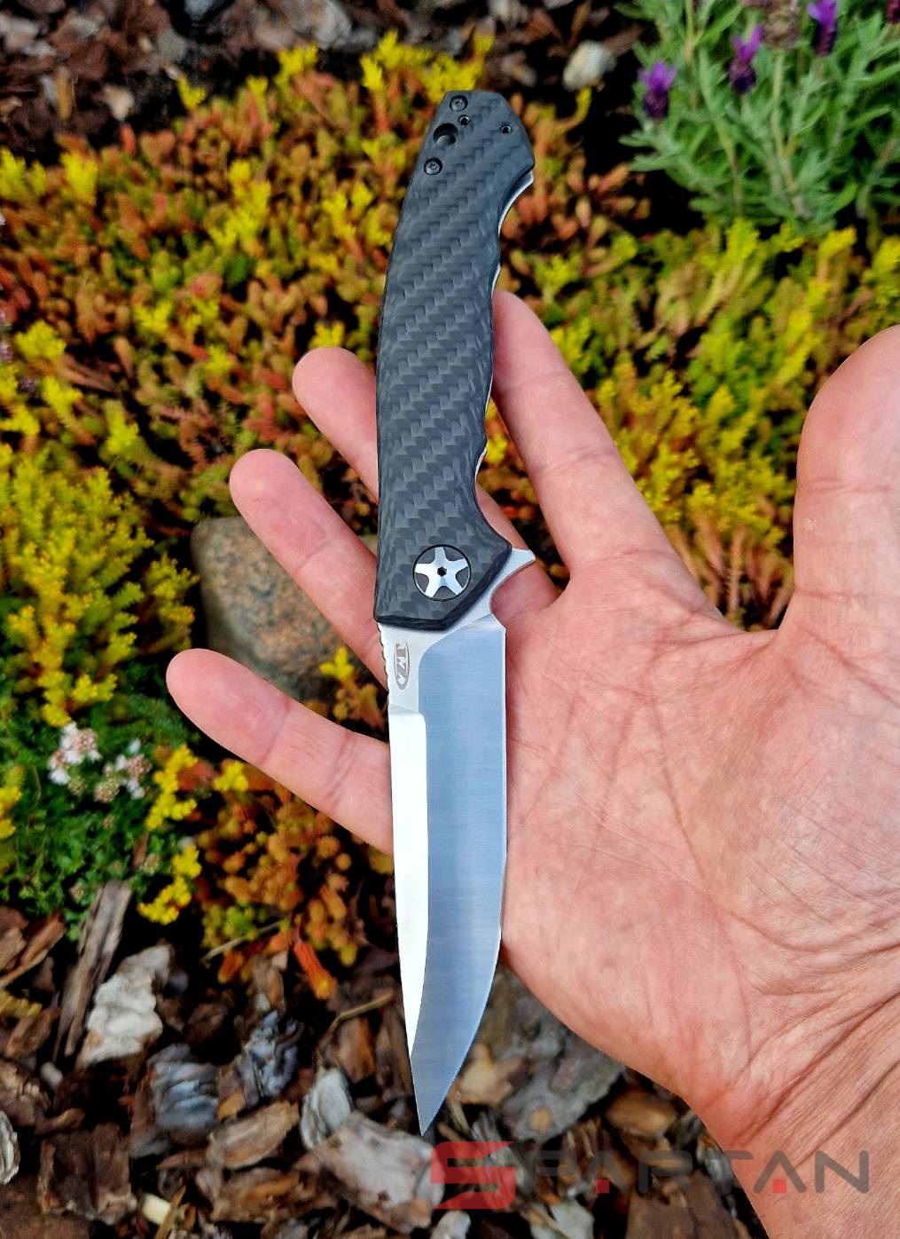 Элитный полноразмерный EDC-нож разработанный для Zero Tolerance известным ножевым мастером из Беларуси - Дмитрием Синькевичем. Его изделия уже давно стали культовыми, и многие американские производители считают за честь работать с ним. При достаточно крупных размерах ZT 0452CF на удивление лёгкий (122 g). Длинная узкая рукоять с одной стороны выполнена из карбона, а с другой из титана. Клинок в форме Drop Point с высокими прямыми спусками, изготовлен из отличной американской стали S35VN. Открывается нож при помощи флиппера, механика на основе системы KVT (подшипники) обеспечивает идеальный флип. Вся эта "красота" приправлена основательным замком Frame Lock и неожиданно компактной клипсой глубокой посадки.